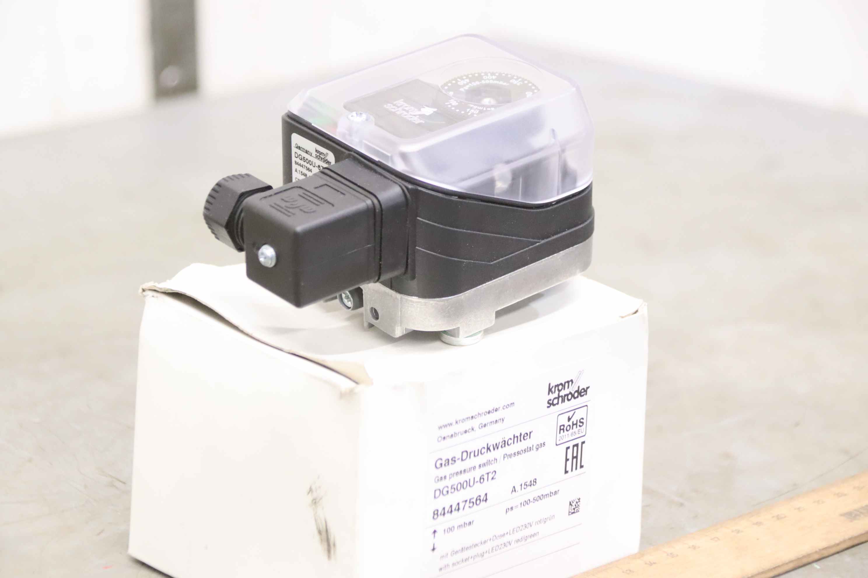 Pressure switch, pressure switch, pressure limiter, gas pressure switch, gas pressure switch, gas pressure switch-Manufacturer: Kromschröder, gas pressure switch orig-Type: DG500U-6T2 84447564-Control range: 100-500 mbar-Pmax.: 600 mbar-Dimensions cardboard: 120/100/H85 mm-Weight: 0.4 kg