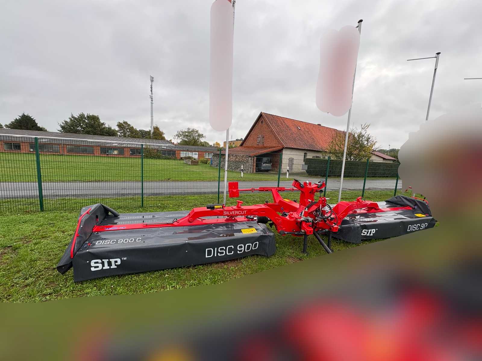 Double mower combination in mint condition with 9.00 m working width • Manufacturer: SIP Strojna Industrija d.d., Slovenia • Type: FRAME SC DISC 900 C (N) • Serial number: SN50583 • Net weight: approx. 1 148 kg • Made in Slovenia • PTO: 4-speed (540 / 540E / 1000 / 1000E) • Drive via drive shafts, hydraulic folding and relief system • Robust frame construction, maintenance-friendly design • Disc mower with speed blade change system • Hydraulic system tight and fully functional, no leaks • Tarpaulins, drive shafts, spring mechanisms and protective covers in very good condition • Minimal flash rust on the mower discs due to service life – technically flawless • Transport width under 3 m, ideal for road travel Auction-ID: 03Q-JPL-2