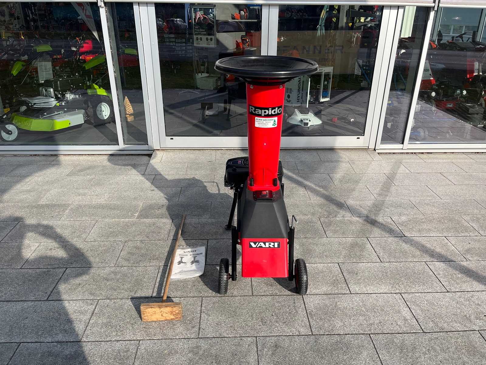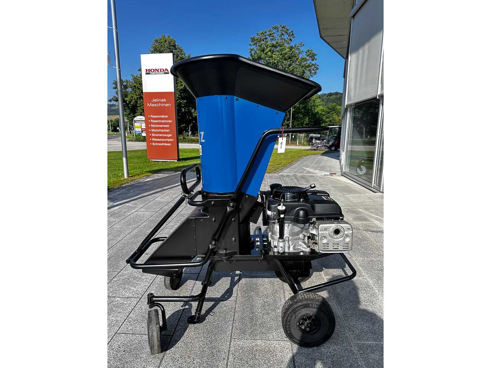 Professional shredder with petrol engine, max. branch diameter 8cm 11 hp Honda engine, Cone head cutting system with 2 cutting blades and a counter blade, max. branch diameter 8 cm, Double V-belt drive, Duo Feed Hopper, chassis with steerable front wheels and handle, Auction-ID: A1-44779-1
