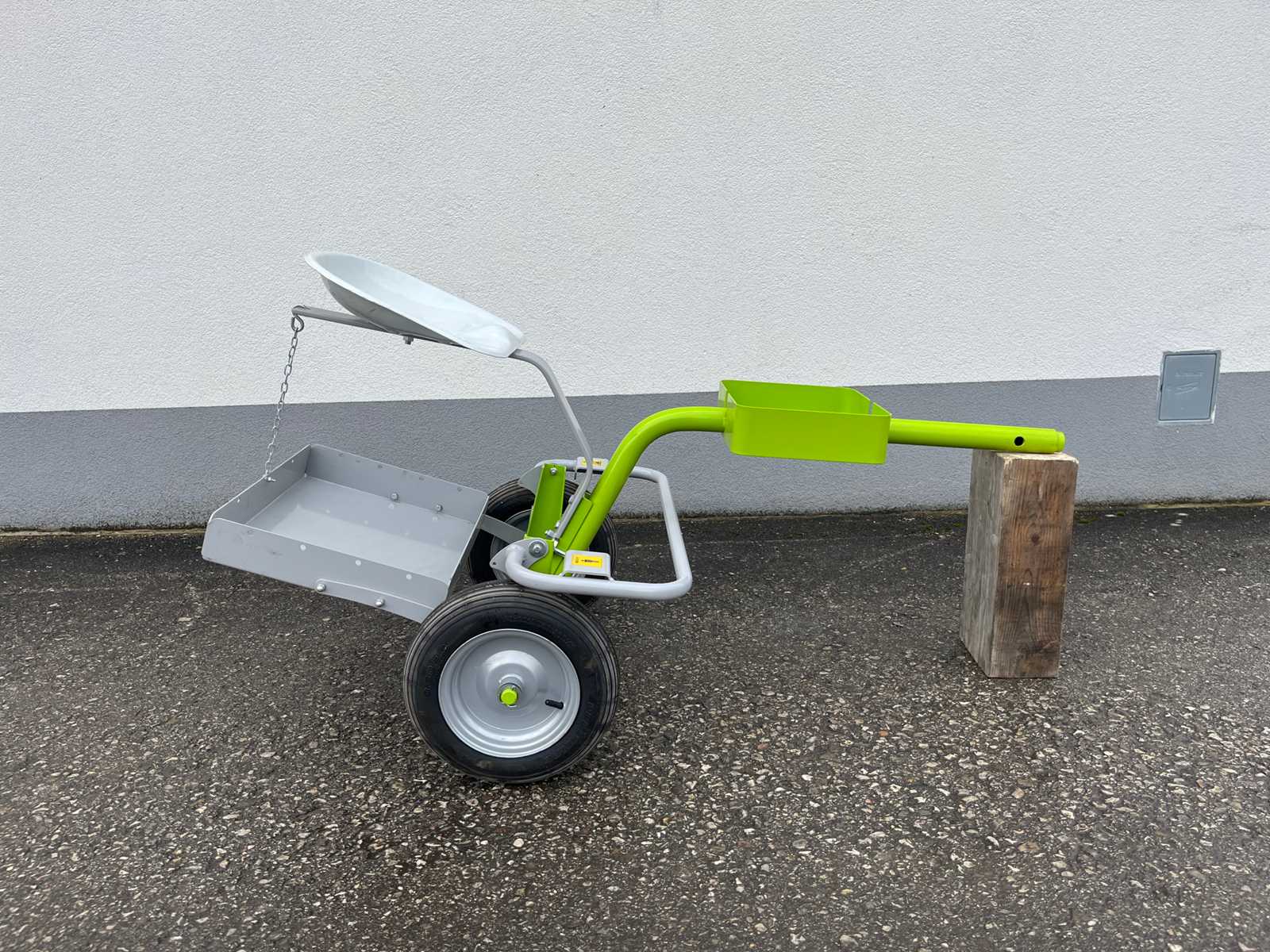 For models G55, G85d, G107d, G108 and G110 Art. 9F4712 towbar required. Required for G131BC Art. 9F4712 towbar. The seating car is connected behind the two-wheel tractor. The assembly can be done in no time at all with a cotter pin and a pin. It is equipped with brakes. Auction-ID: A1-44779-10