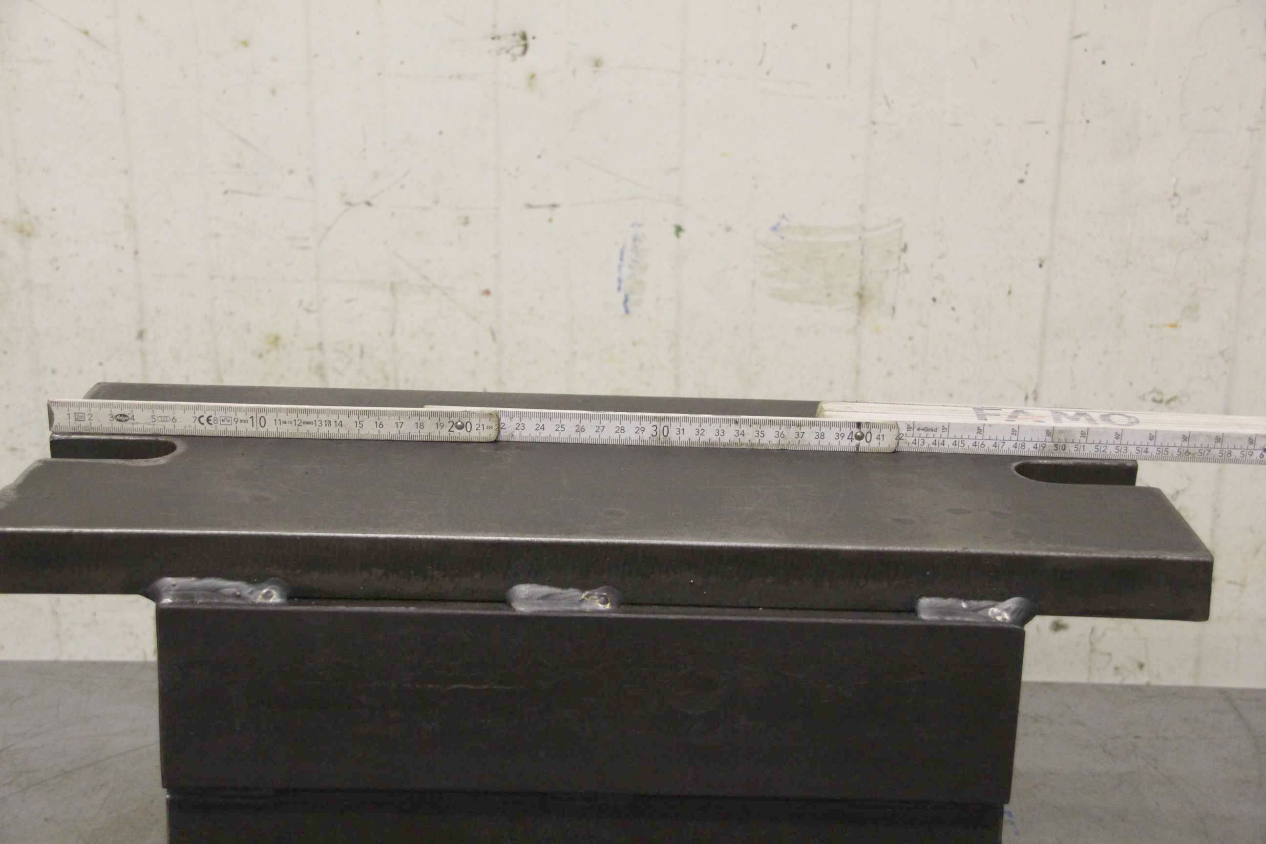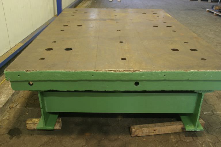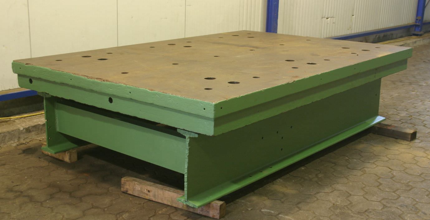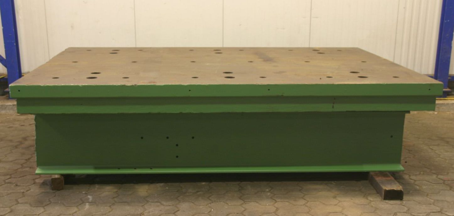 T-slot plate, clamping plate with T slots, plate field, welding table, welding table -Intermediate plate for: hydraulic press, eccentric press, milling machine -Dimensions: 1100/650/H100 mm -Plate: solid -Bore: 8x -T-slot: 28 mm -Weight: 536 kg