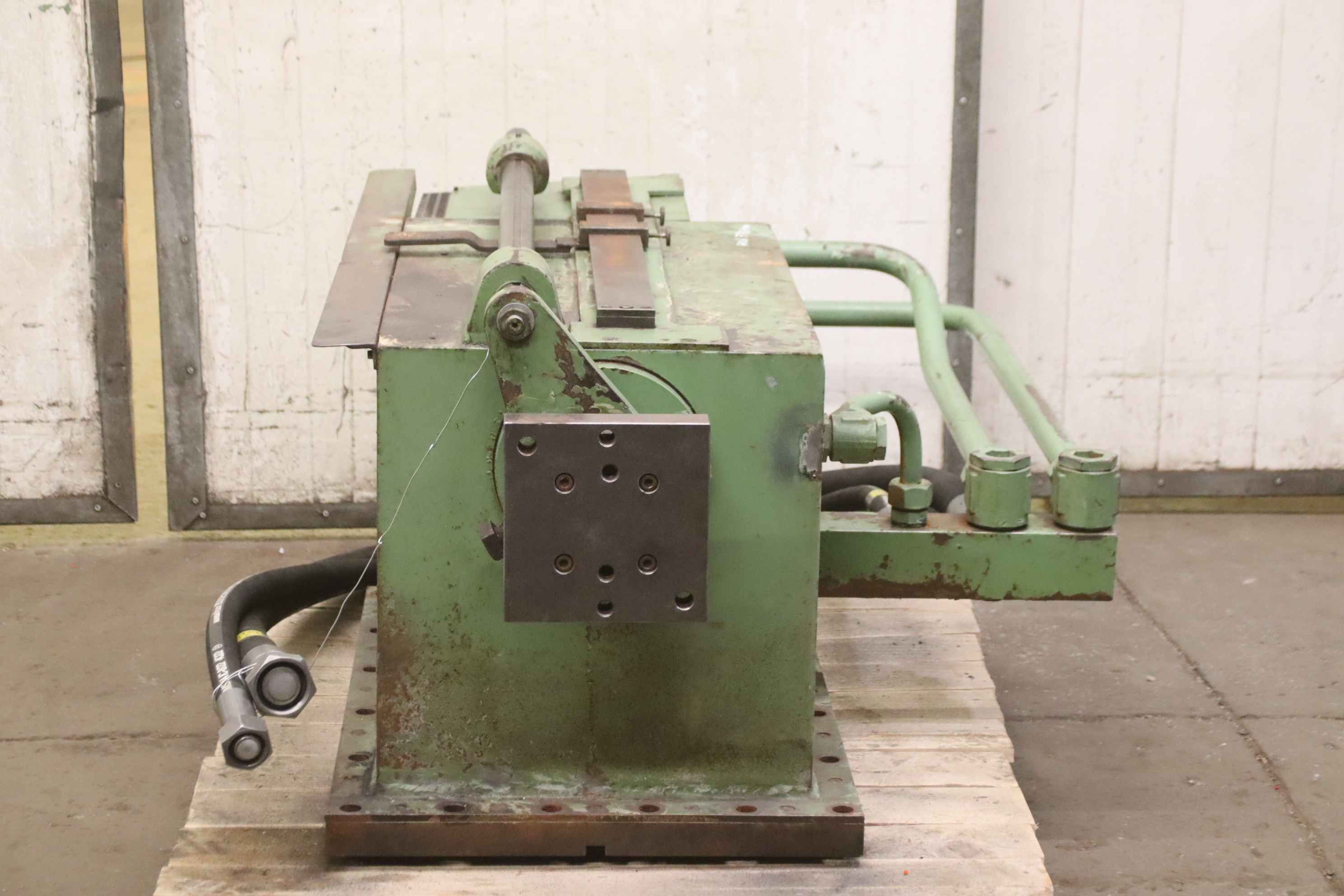 pressure:100 tthroat:450 mmstroke:170 mmdistance table/ram, max. stroke up, adjustment up:450 mmtable surface area:3220 x 800 mmtable height over floor:850 mmram surface:3220 x 800 mmspeed down:50 mm/sspeed up:150 mm/sworking speed:7 mm/soil volume:600 lpower requirement:20,0 kWweight:16,0 tdimensions (WxDxH):3,7 x 2,5 x 2,6 m