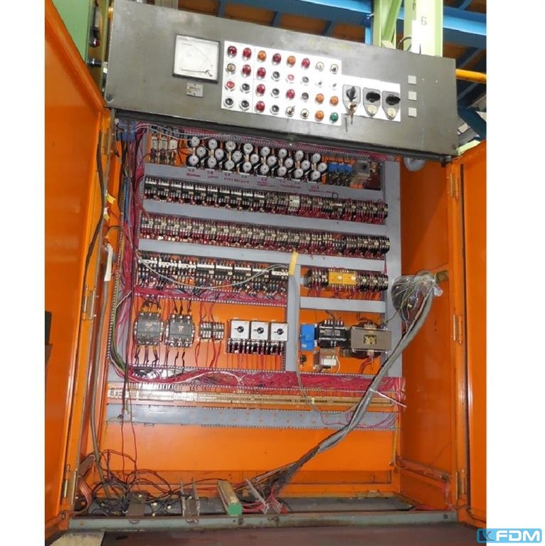 pressure:500 tstroke:40 - 160 mmno. of strokes:32 / 48 /mindistance between columns:1620 mmdistance table/ram, max. stroke up, adjustment up:660 mmtable surface area:1600 x 1300 mmtable height over floor:750 mmcolumn travel -side:400 x 430 mmram surface:1400 x 1200 mmram adjustment:120 mmpressure of drawing cushion in table:60 tstroke of drawing cushion in table:100 mmdrawing cushion surface in table:1300 x 810 mmmaterial width of feeder:1000 mmmaterial thickness of feeder:- 6,0 mmfeed length:350 mmheight beneath floor:0,3 mpower requirement:44,0 / 66,0 kWweight:56,0 tDimensions (WxDxH):3,55 x 2,55 x 5,1/5,8 mheight beneath floor without drawing cushion:0,3 mheight beneath floor with drawing cushion:1,0 mclutch-/ brake combination:pneumatic; Desch overload protection in ram:mechanical ram counterbalance:pneumatic ram adjustment:motoric drawing cushion in table:pneumatic Mechanical pincer ...