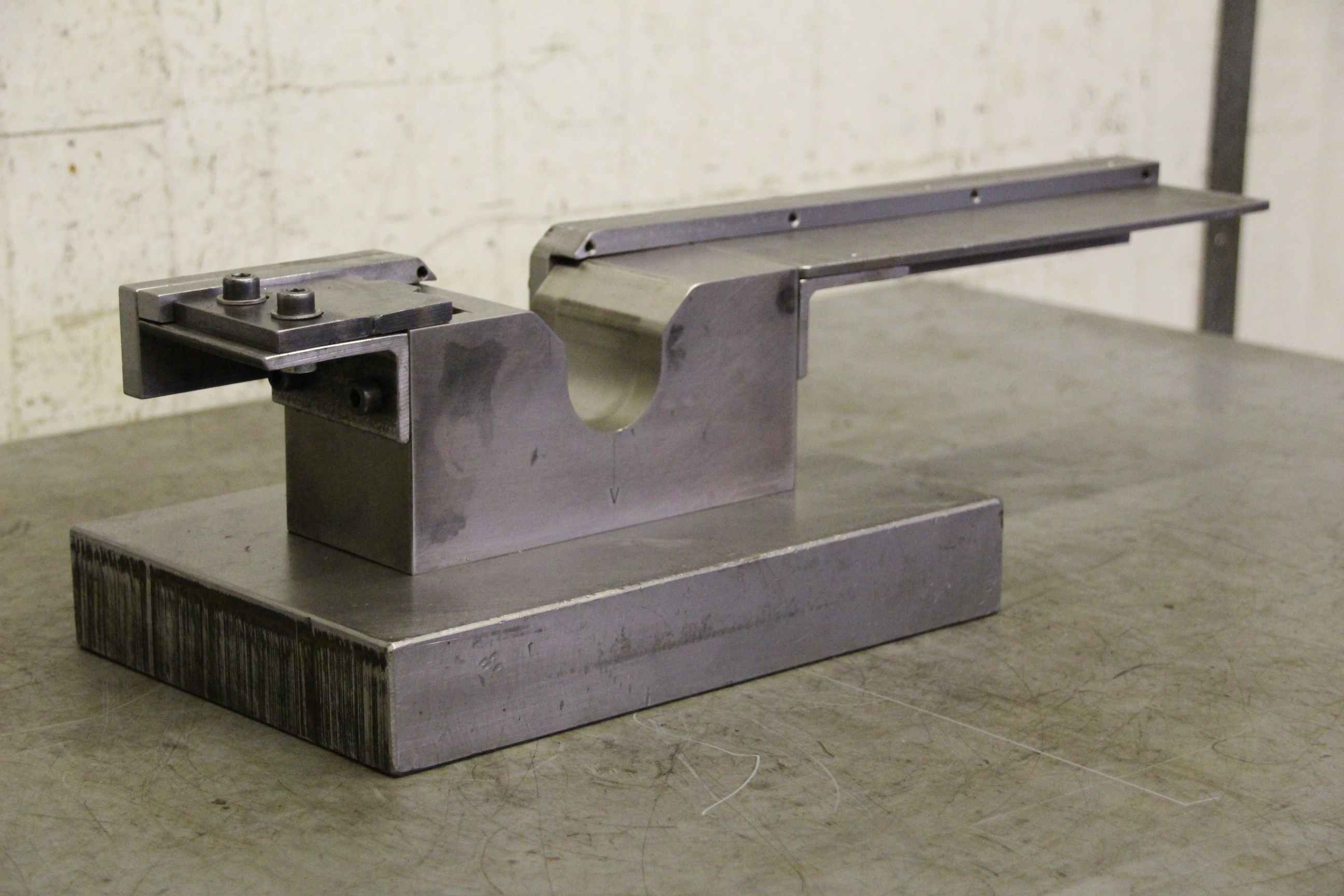 Bending tool, die, lower tool, die tool, folding tool, press tool, forming tool -Die tool: Forming tool / Press tool -Profile: Ø 45 mm -Dimensions: 535/195/H140 mm -Weight: 35 kg