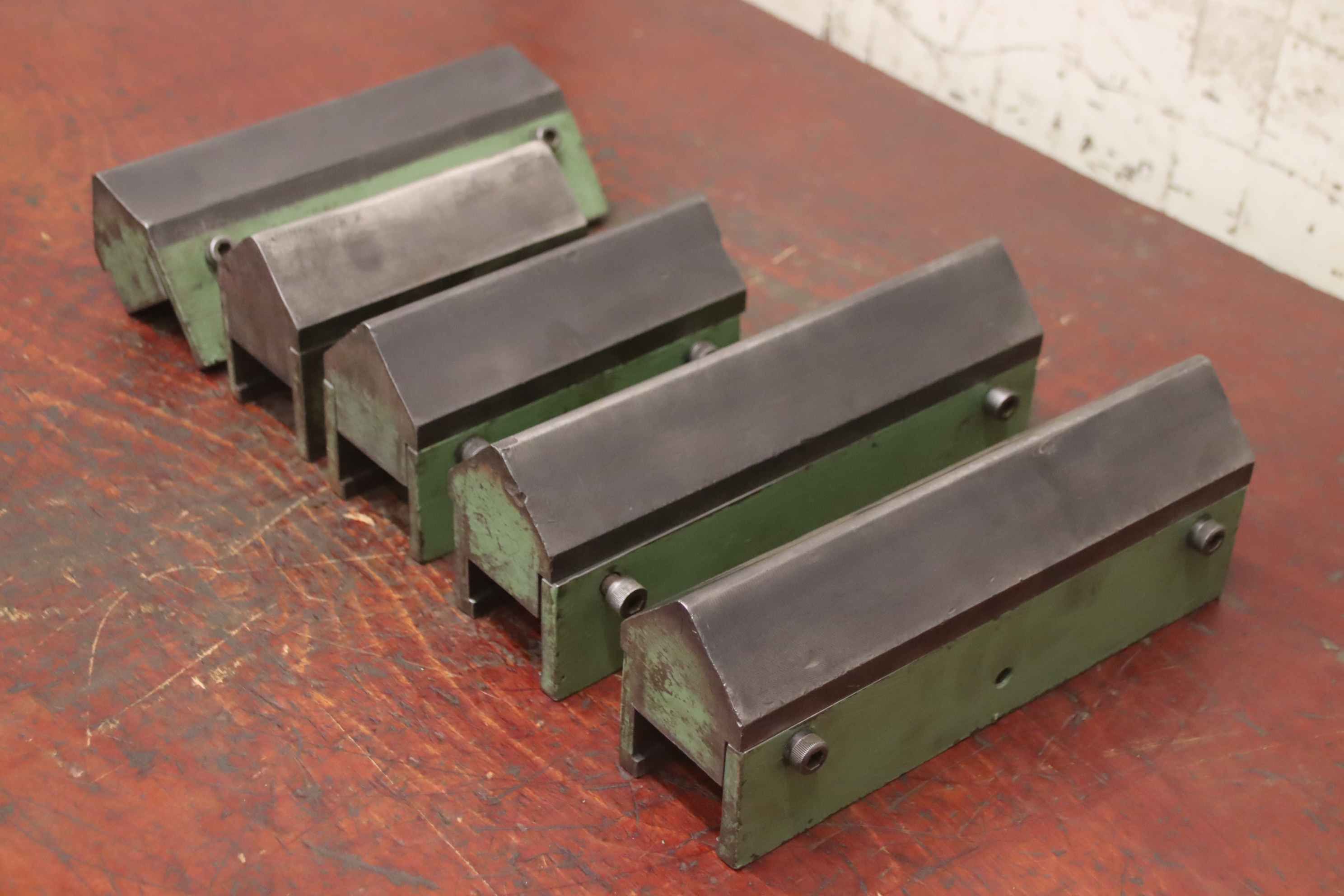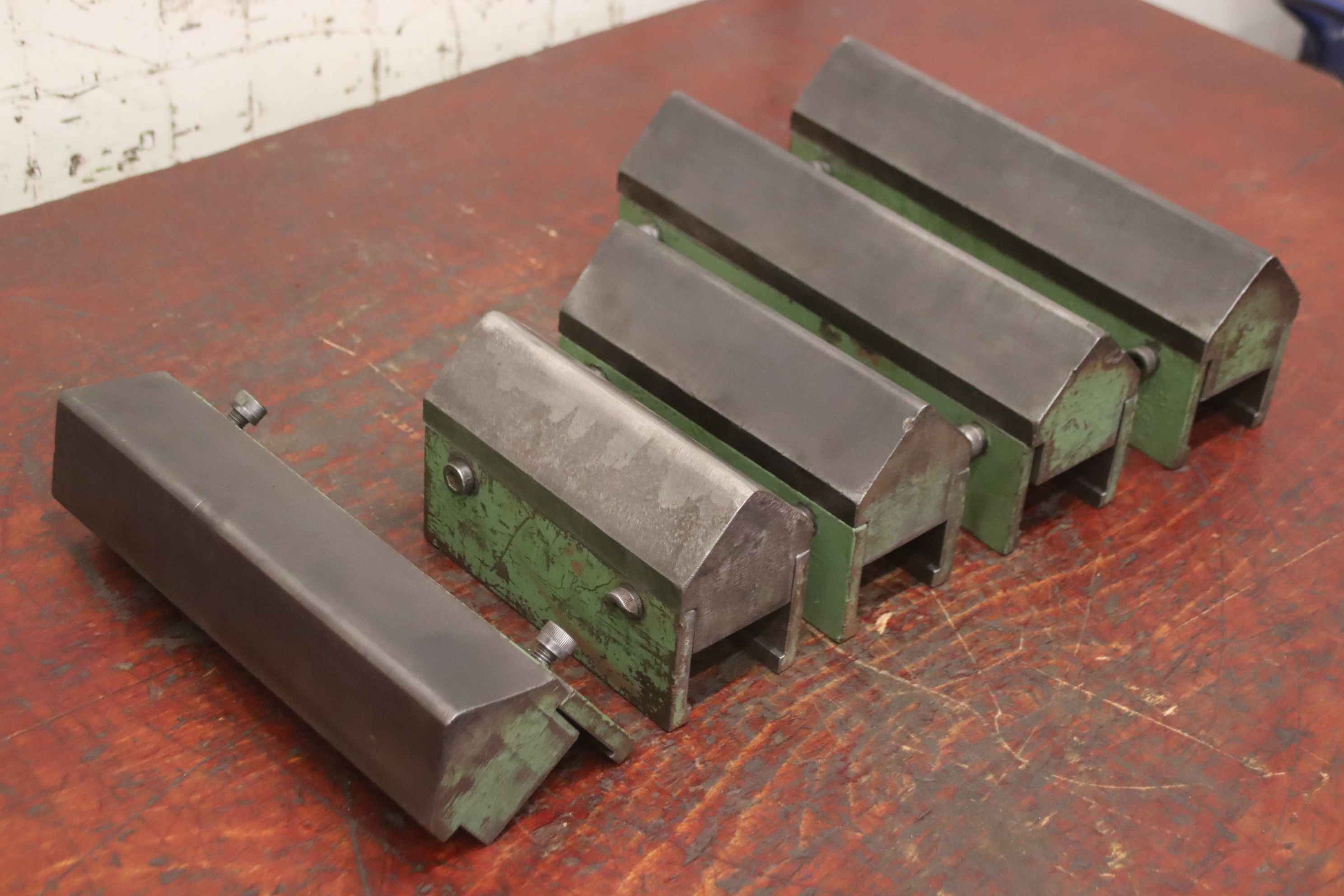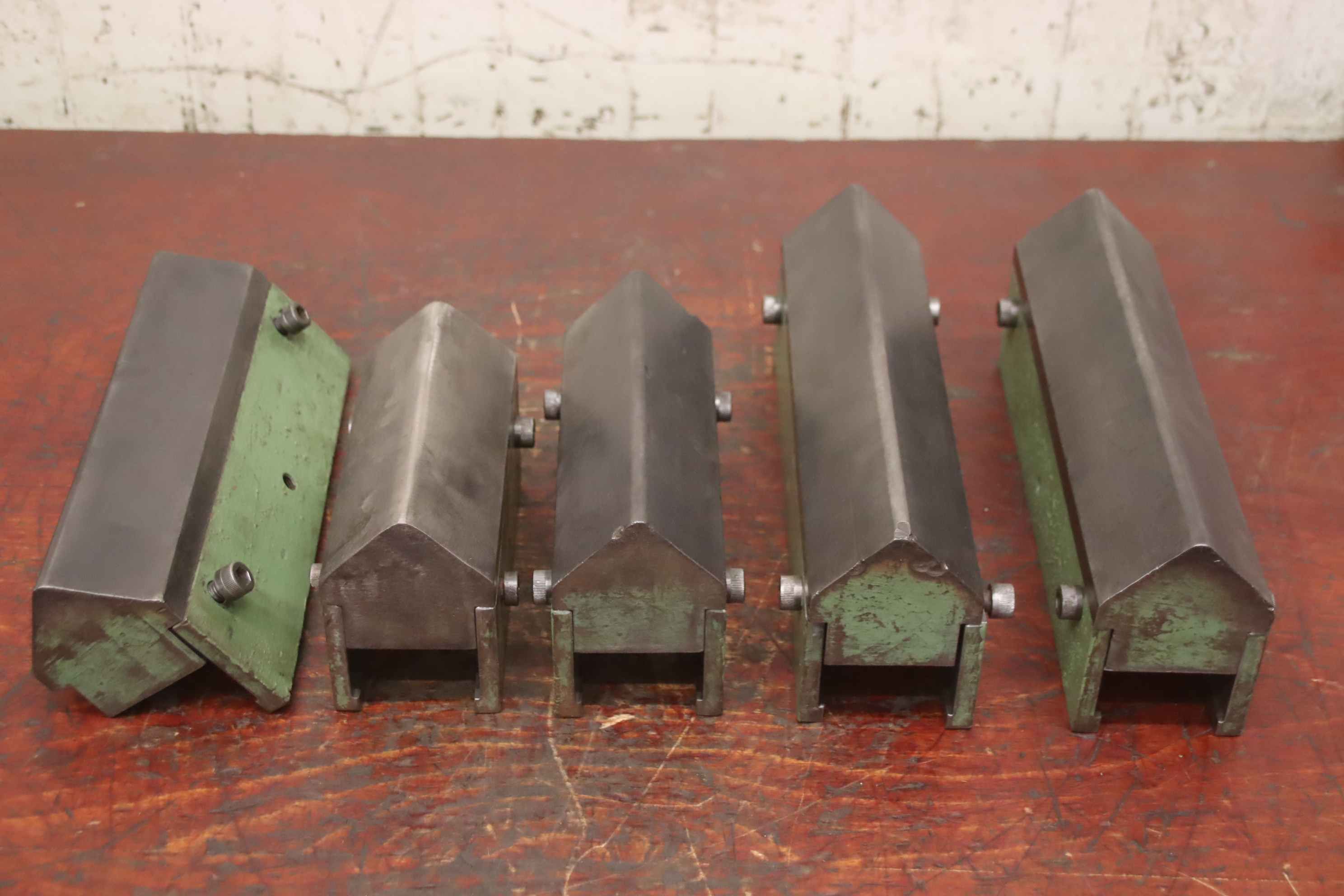 Pressing tool, sheet metal former, forming tool, bending tool, folding tool, bending tool, die, die-casting tool -Bending tool: Pressing tool for press brake / press, 5 pieces -Length: 2x 300 mm / 1x 275/200/175 mm each -Groove width: 58/52 mm -Angle: 90° Dimensions: see photos / technical drawing -Price/Fee: complete -Transport dimensions: 450/300/H115 mm -Weight: 48.3 kg