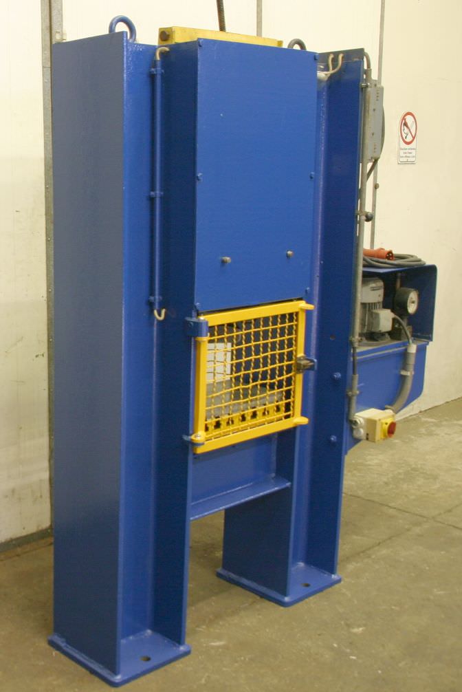 pressure:25 tthroat:400 mmstroke:1000 mmdistance table/ram, max. stroke up, adjustment up:1100 mmtable surface area:620 x 620 mmHole in the table:80 mmtable height over floor:650 mmram surface:110 mmspeed down:300 mm/sspeed up:500 mm/sworking speed:14 - 85 mm/soil volume:400 lpower requirement:6,0 kWweight:3,8 tdimensions (WxDxH):1,5 x 2,1 x 3,9 mGerman Safety: permitted for manual loading:UVV 11.064 - VBG 7n5.2