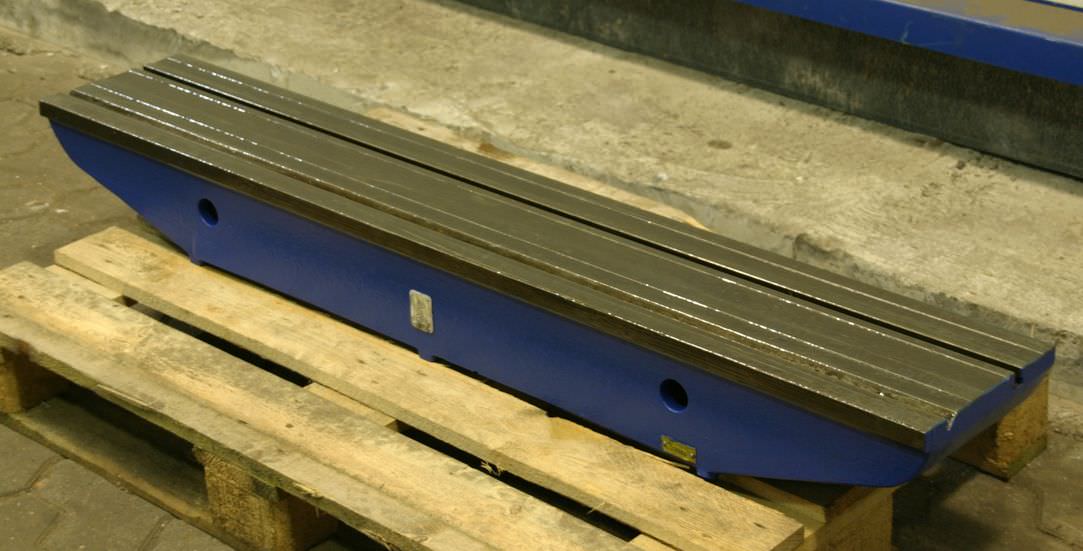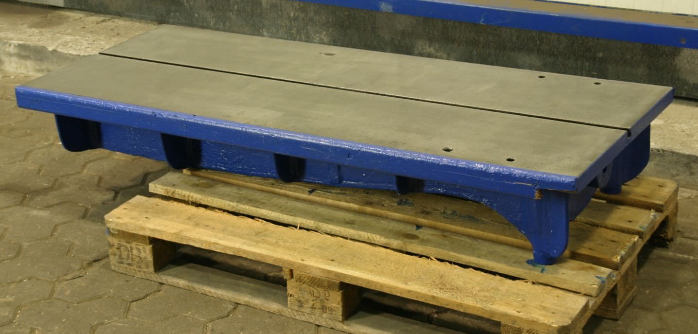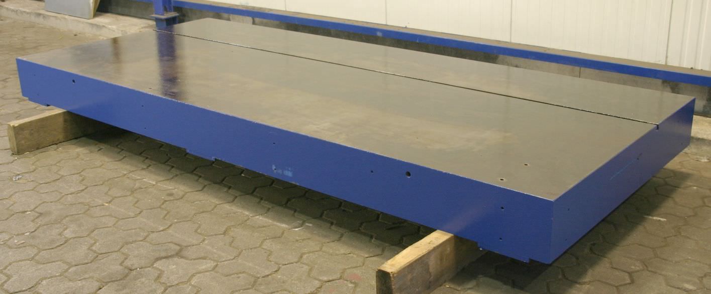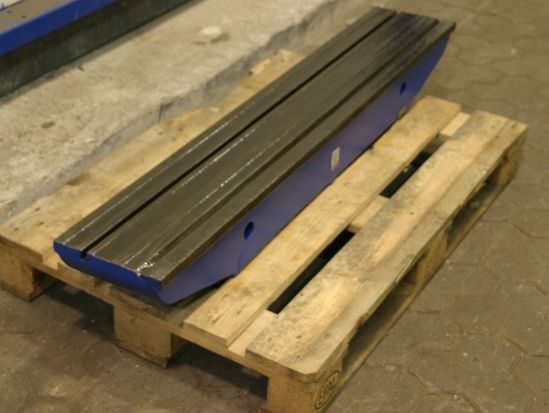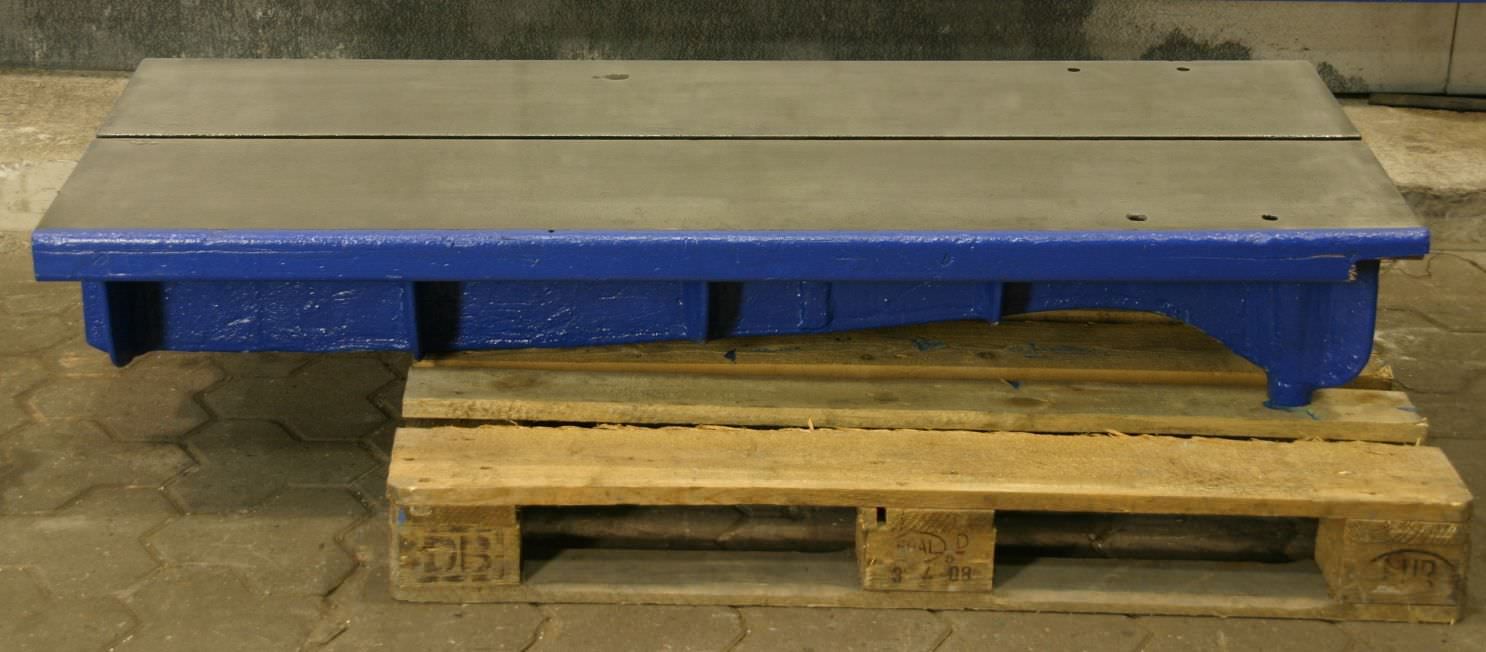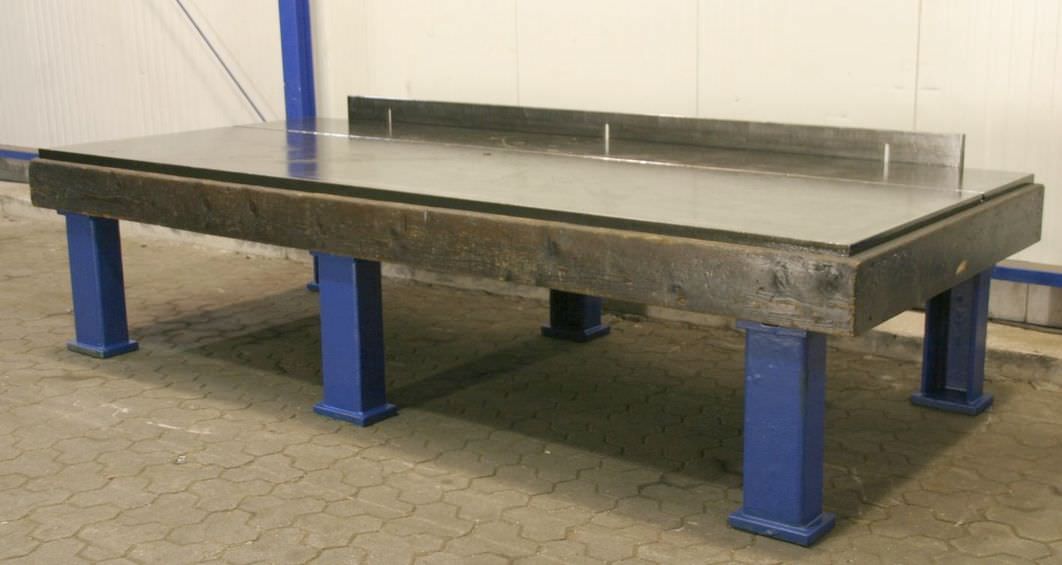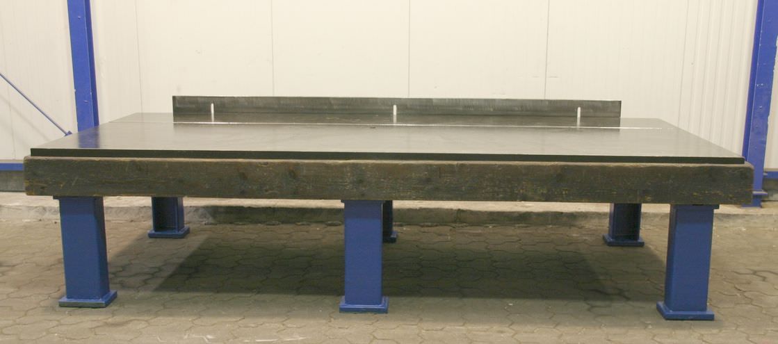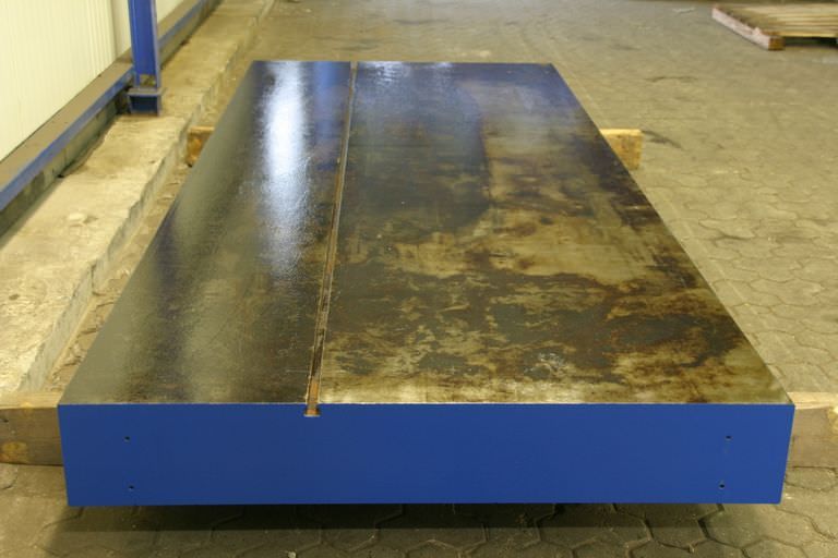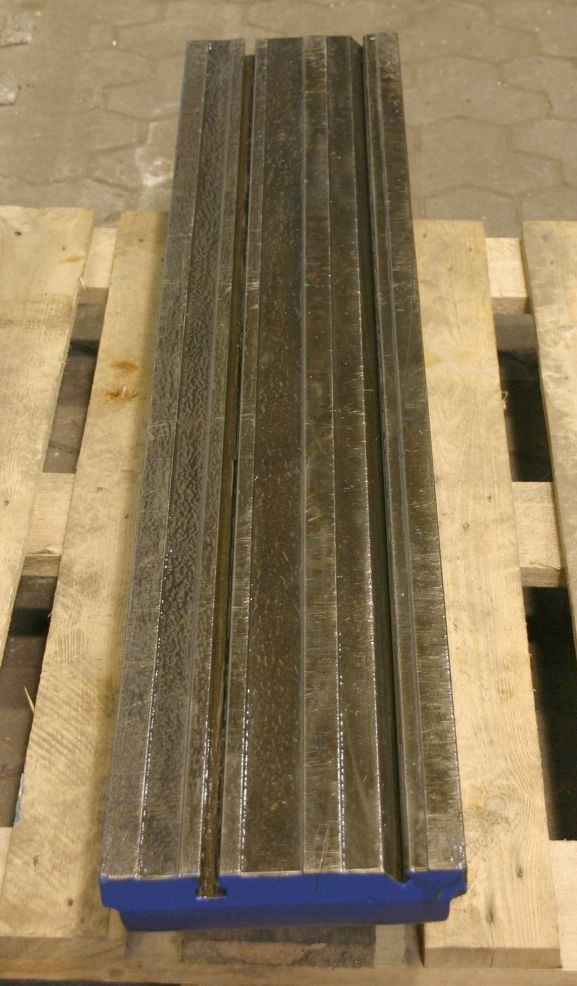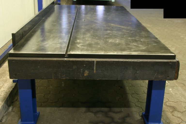 T-slot plate, clamping plate with T-slots, plate field, welding table, welding table-Dimensions: 1500/3510/H950 mm-Plate thickness: 20 mm-Plate is: with supporting ribs-1x T slot: 18 mm-with: detachable stop-Weight: 2600 kg