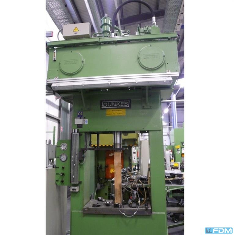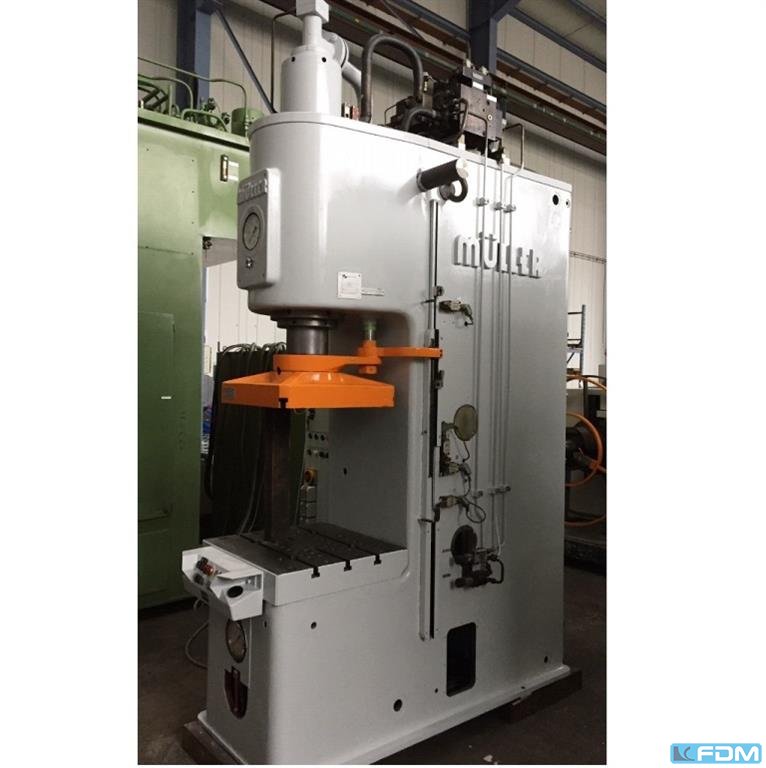 Pressure:63 tdistance between columns:1000 mmstroke:300 mmDistance table/ram, max. stroke up, adjustment up:850 mmtable surface area:980 x 500 mmtable height above floor:850 mmram surface:130 mmspeed down:400 mm/sspeed up:461 mm/sworking speed:14 - 97 mm/spower requirement:15,0 kWWeight:5,0 tDimensions (WxDxH):2,0 x 1,6 x 3,9 mdepth stop:mechanical foundation pit:not necessary