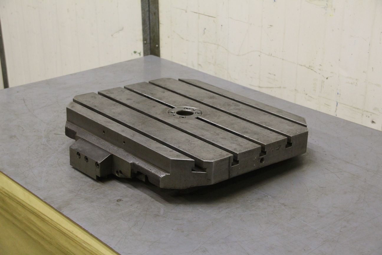 Clamping plate with T-slots and cross table, plate field, welding table, welding table, plate boring machine, T-slot plate, pallet changer -T-slot plate comes from: a Hüller Hille milling machine type nb-h 70 -Width: 475 mm -Length: 500 mm -Height: 68 mm -Plate: is solid -Groove width: 12 mm -Dimensions: 500/475/H68 mm -Weight: 90 kg