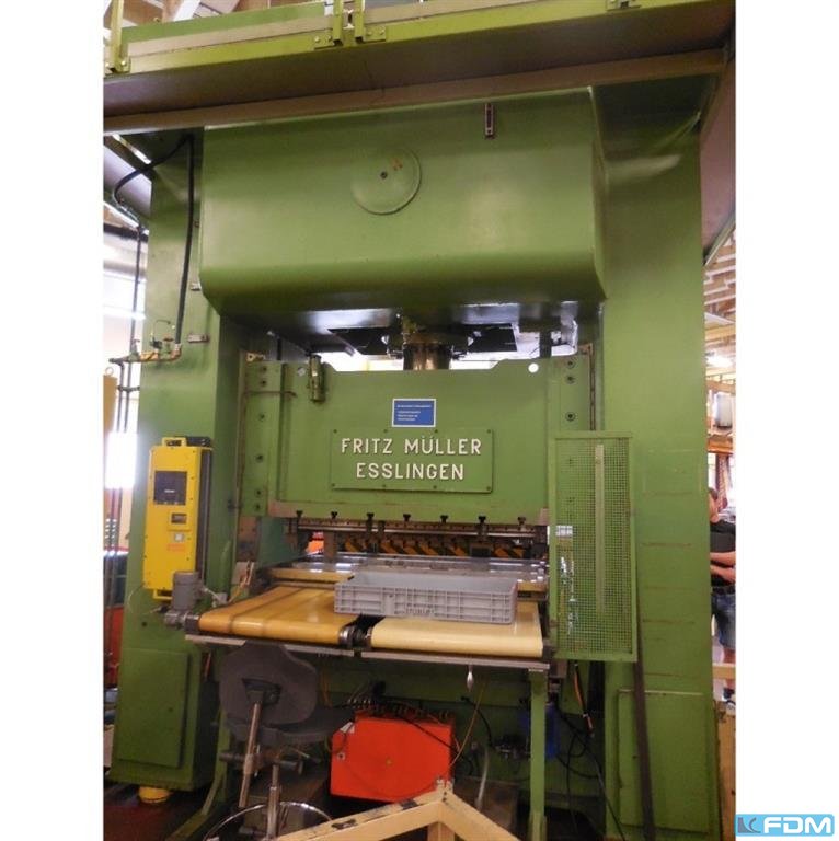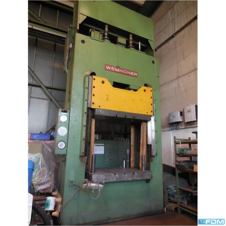 Pressing force: 1600kN, installation height: 750mm, max. ram stroke: 500mm, clamping surface X/Y: 700mm/600mm, column passage: 800mm, lateral column opening: approx. 450mm. Distance between clamping plate and floor: 680mm, ram bore diameter H7: 60mm, rapid traverse down/up: 500/400mm/s, max. working speed: 35mm/s. Dimensions X/Y/Z: 2000mm/1500mm/3600mm, weight: approx. 16000kg, control: Panelware. Documentation available. An on-site inspection is possible.