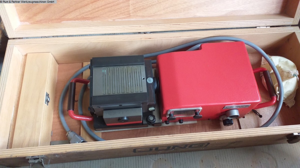 dimensions of the machine ca.: 380 x 200 x 134 mmweight of the machine ca.: 24 kgpower requirement: - kWbaseplate-clamping range: 110 x 70 mmworkpiece sizes: max. 56 x 70 x 25 mmprofile depth: max. 15 mmangular adjustment: 0-2 °Condition: unused: Electrik 24 Volt: Unused unit in a wooden box. Clamping: permanent-magnetic, to use on a table of a grinding machine for grinding pieces with angle. Detailed describtion see attached PDF. doc.Machine dealer with own stock of 1600 m².The data for this ad was created with ModulMWS - the software solution of LogoTech oHG.