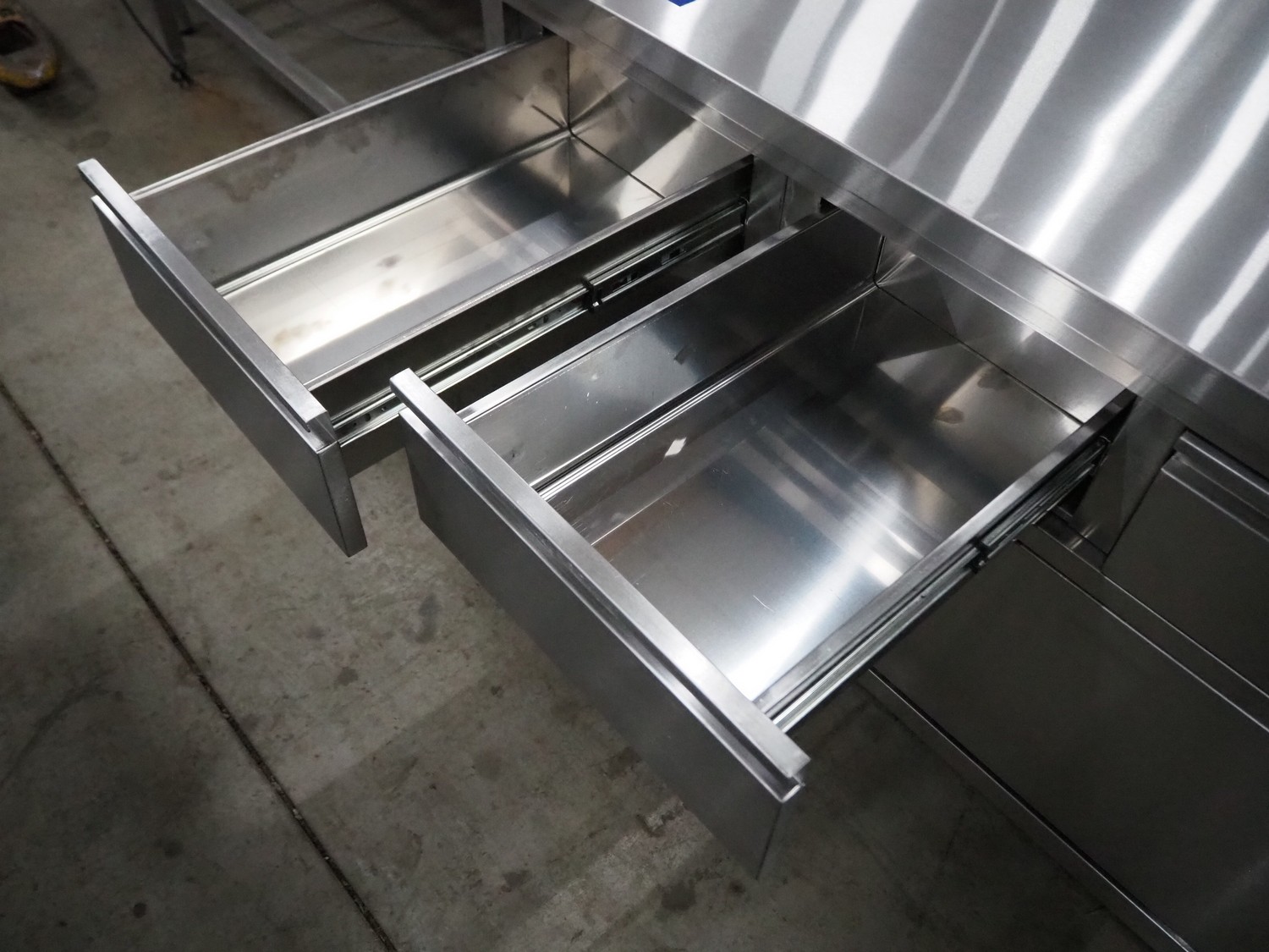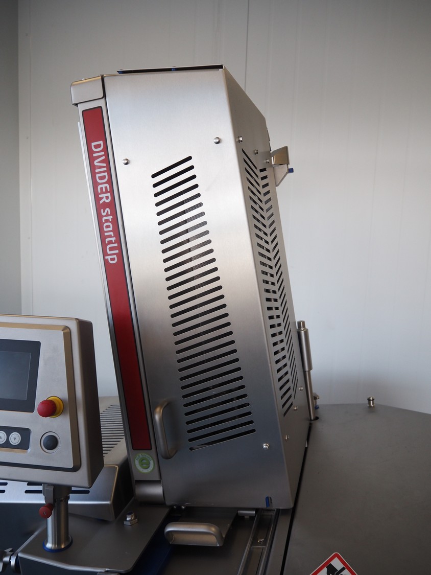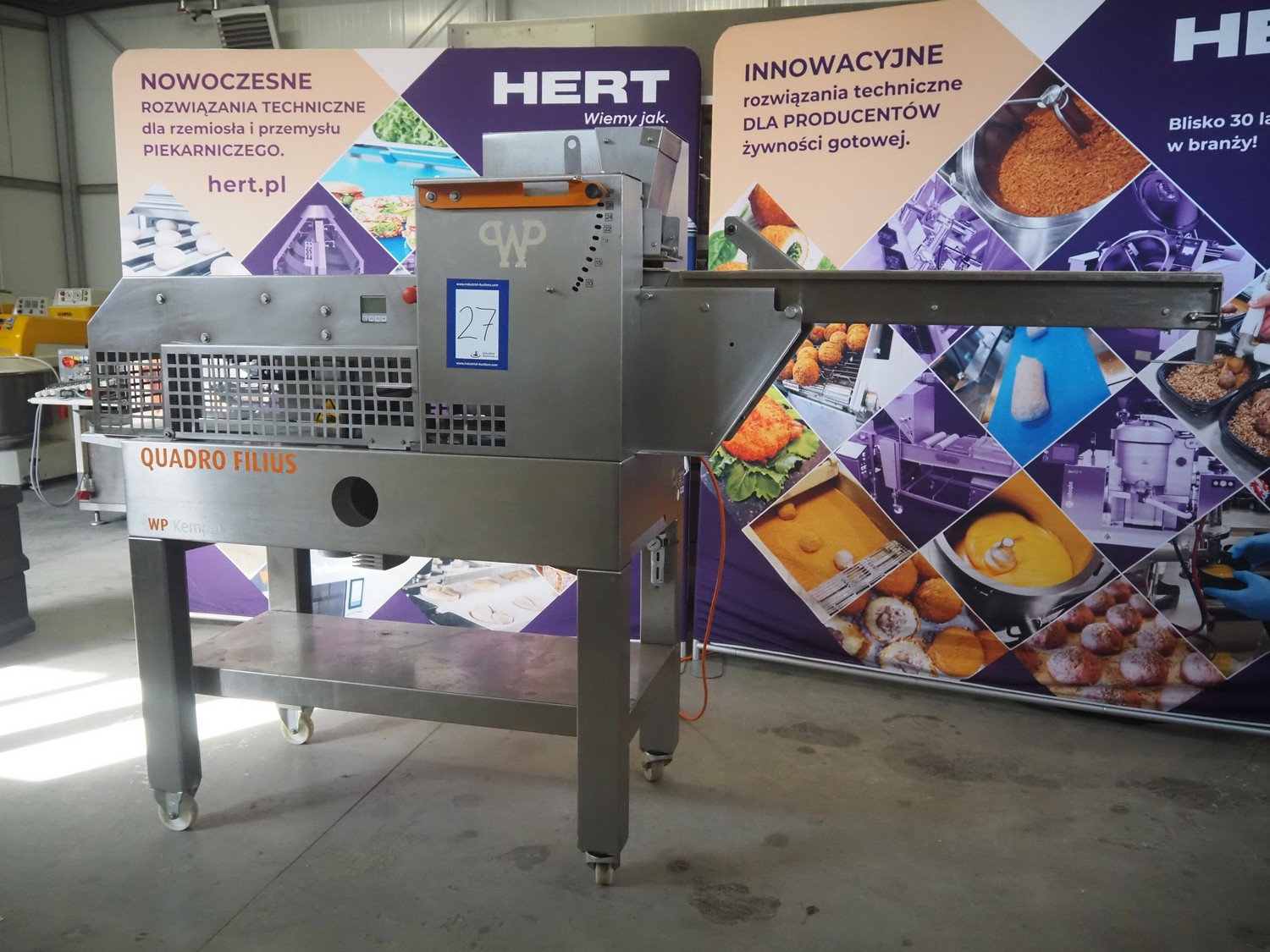 Делитель теста Emil Kemper GmbH, тип: Quadro Filius, номер машины: E-0001360, год производства: 2012, 230 В, 1 Ph, 50 Гц, пластиковый лент, ширина ленты: 130 мм, 300 мм, зазор: 130 мм x 90 мм, размеры воронки: 190 мм x 150 мм x 240 мм, ширина щётки: 190 мм, ширина ножа: 300 мм, пластиковые ролики, ширина валика: 135 мм, общие размеры: 2700 мм x 700 мм x 1800 мм.