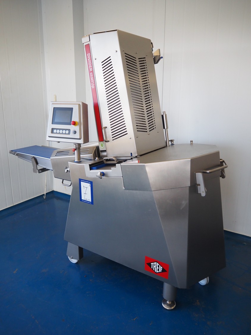 Вертикальный слайсер Treif Maschinenbau GmbH, модель: K207 / DIVIDER старт, номер машины: 750002.250100.146695, год постройки: 2021, 380-480 В, 3 Ph, 50/60 Гц, 16 А, 2,8 кВт, вес: 560 кг, просвет: 280 мм x 180 мм, пластиковый ремень, ширина ленты: 360 мм, общие размеры: 2300 мм x 1100 мм x 2000 мм.