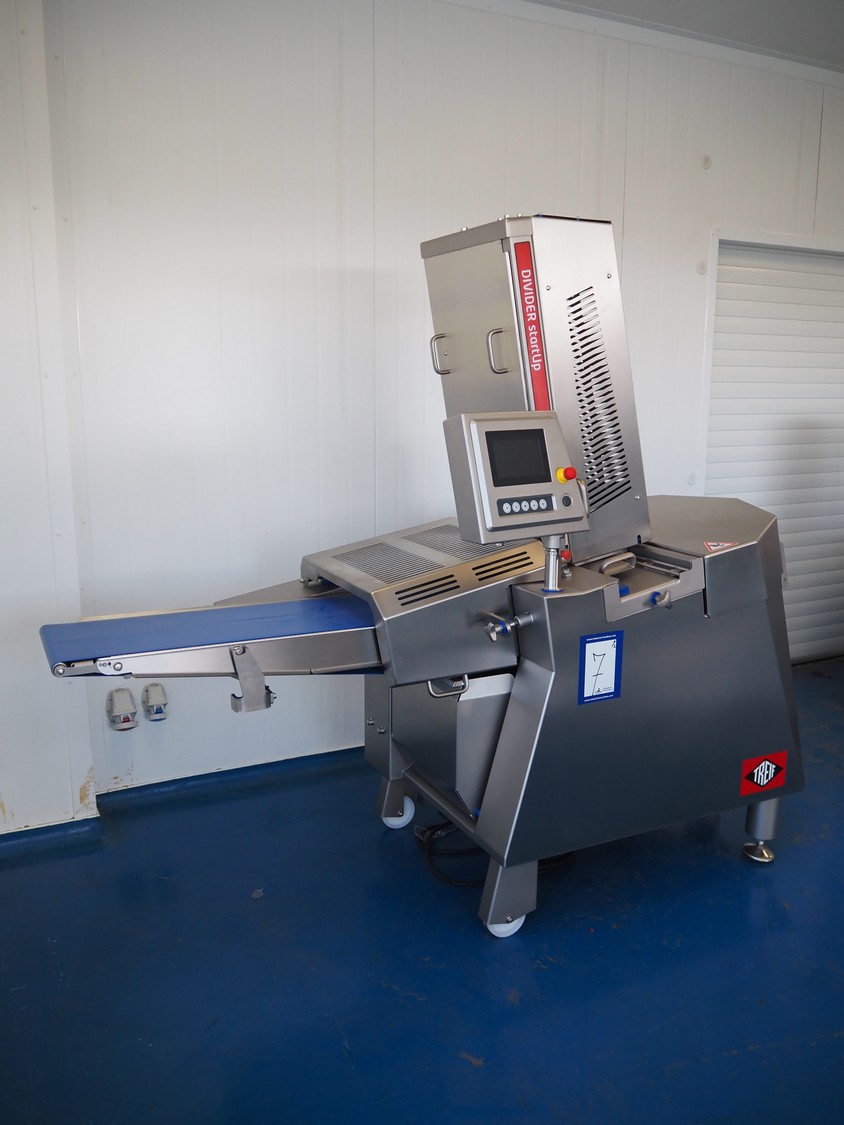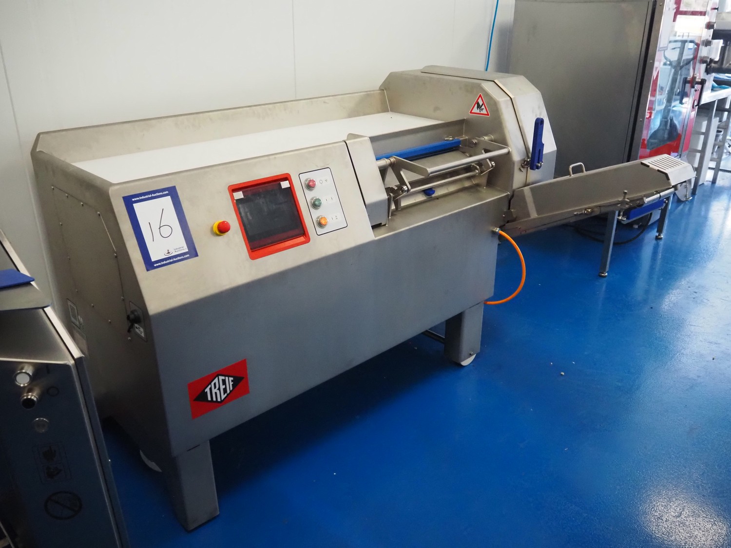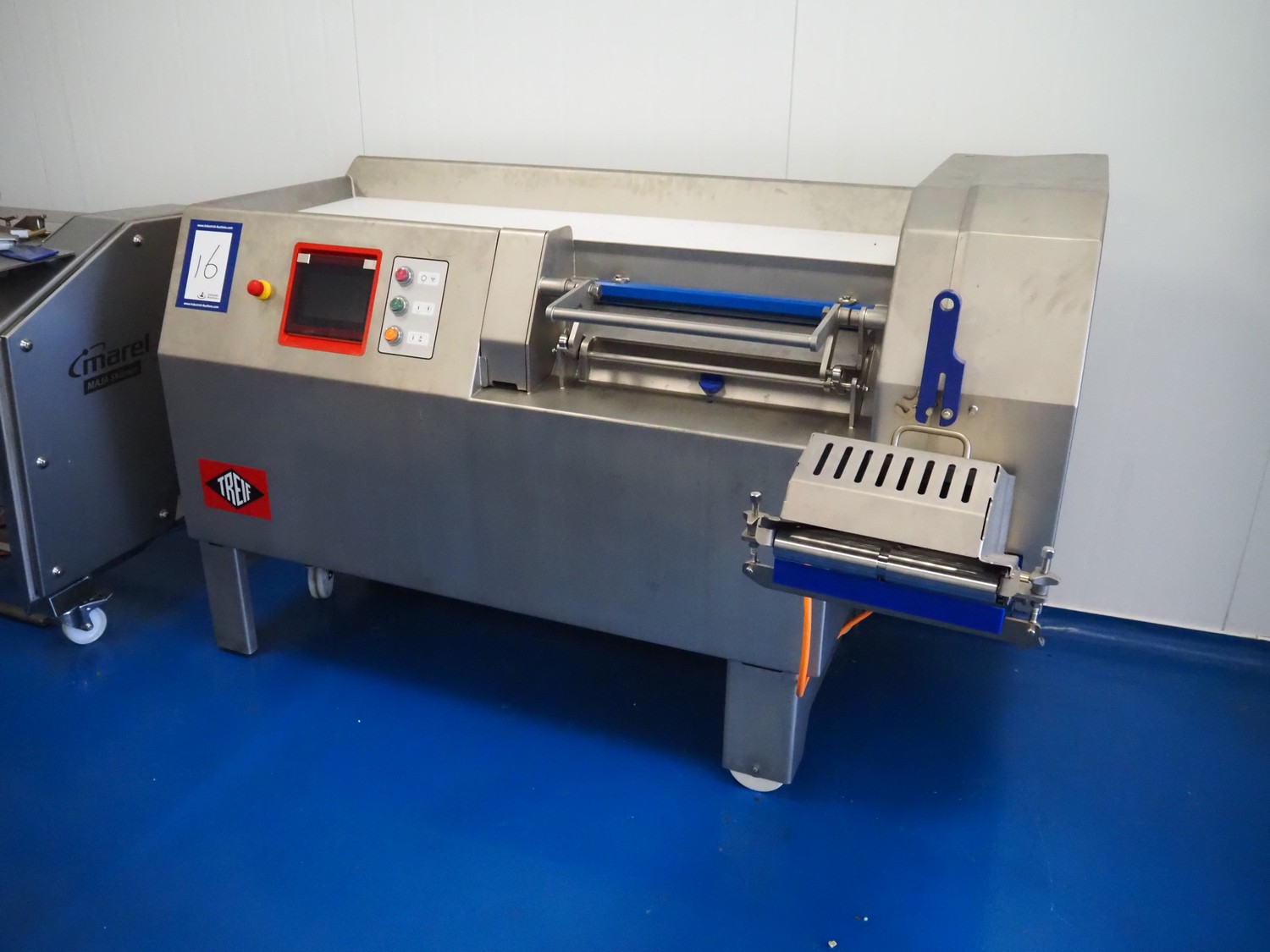 Treif Maschinenbau GmbH dicer, модель: Argon+, номер машины: 755002.261270.153796, год постройки: 2024, 380-480 В, 3 Ph, 50/60 Гц, 16 А, 2,0 кВт, вес: 435 кг, габариты камеры: 95 мм x 95 мм, ширина выхода ленты: 250 мм, общие размеры: 1880 мм x 1420 мм x 1200 мм. Неполный, отсутствует пластиковый выходной лент.