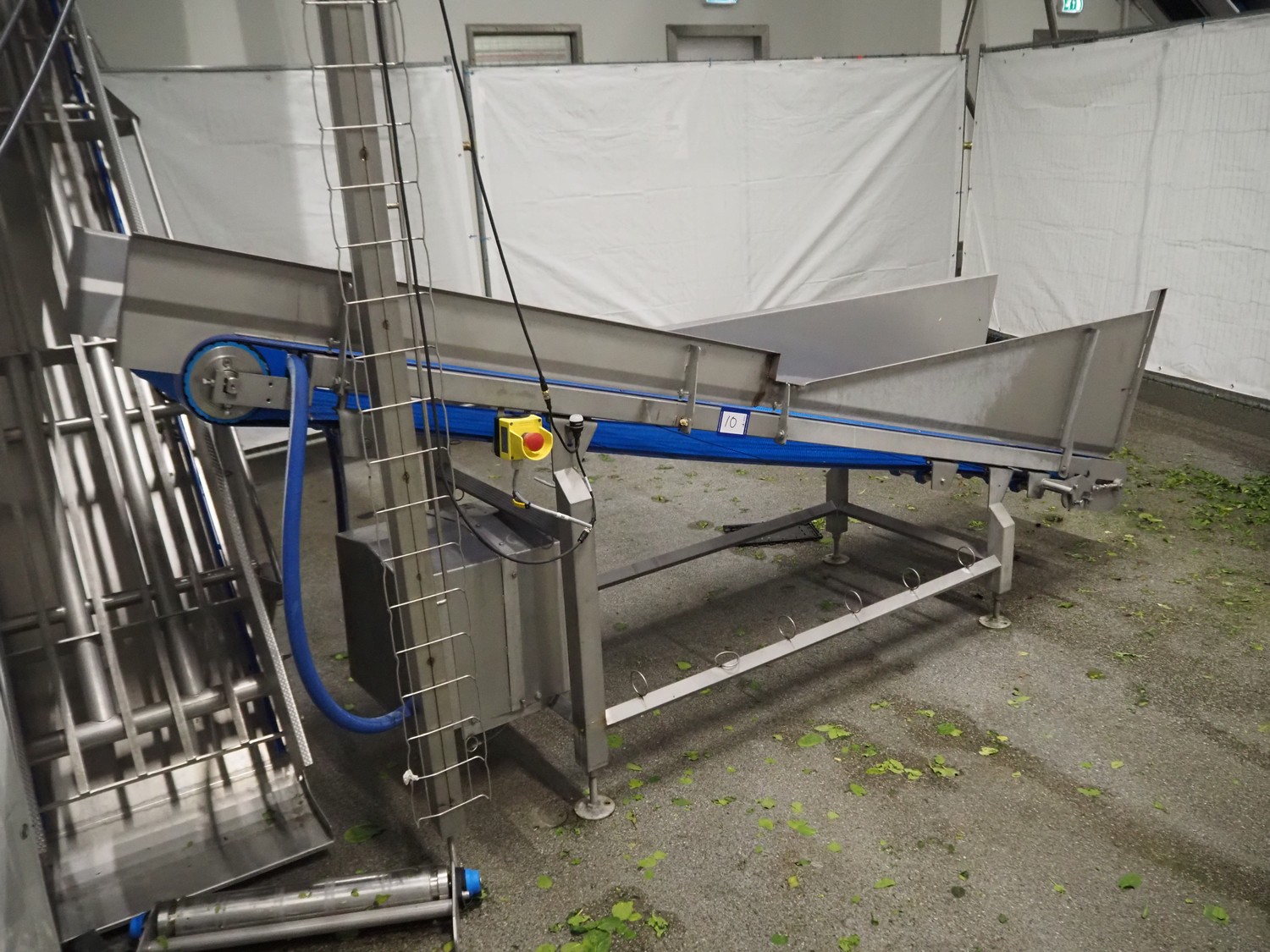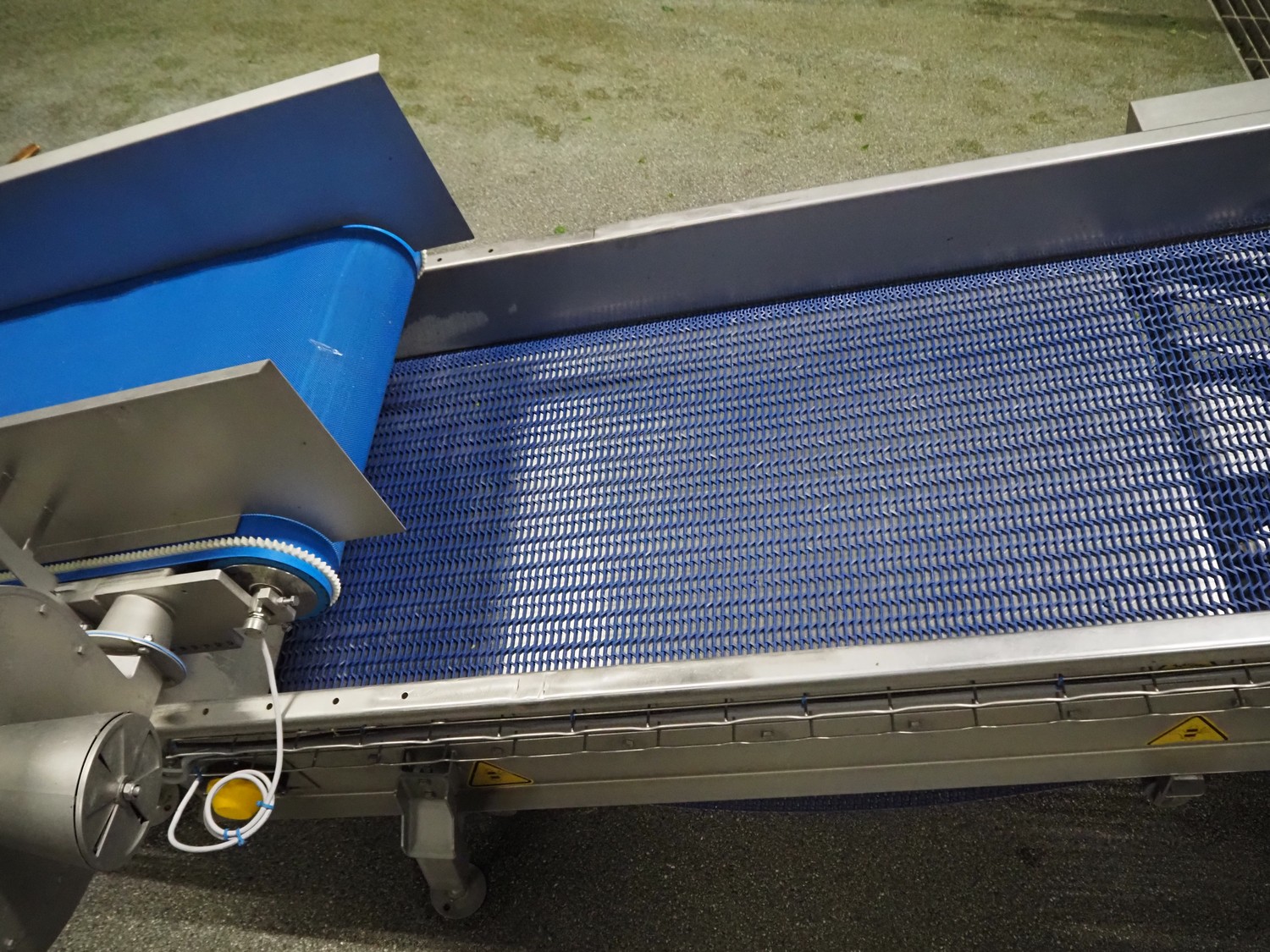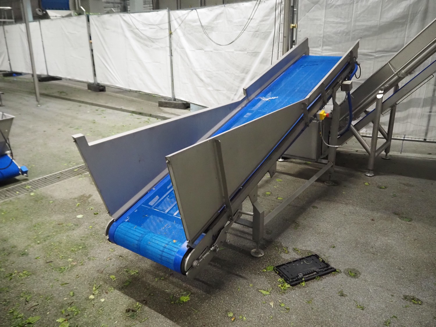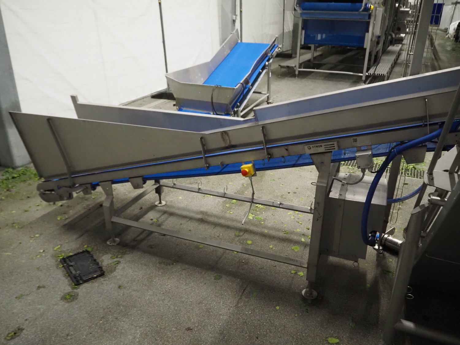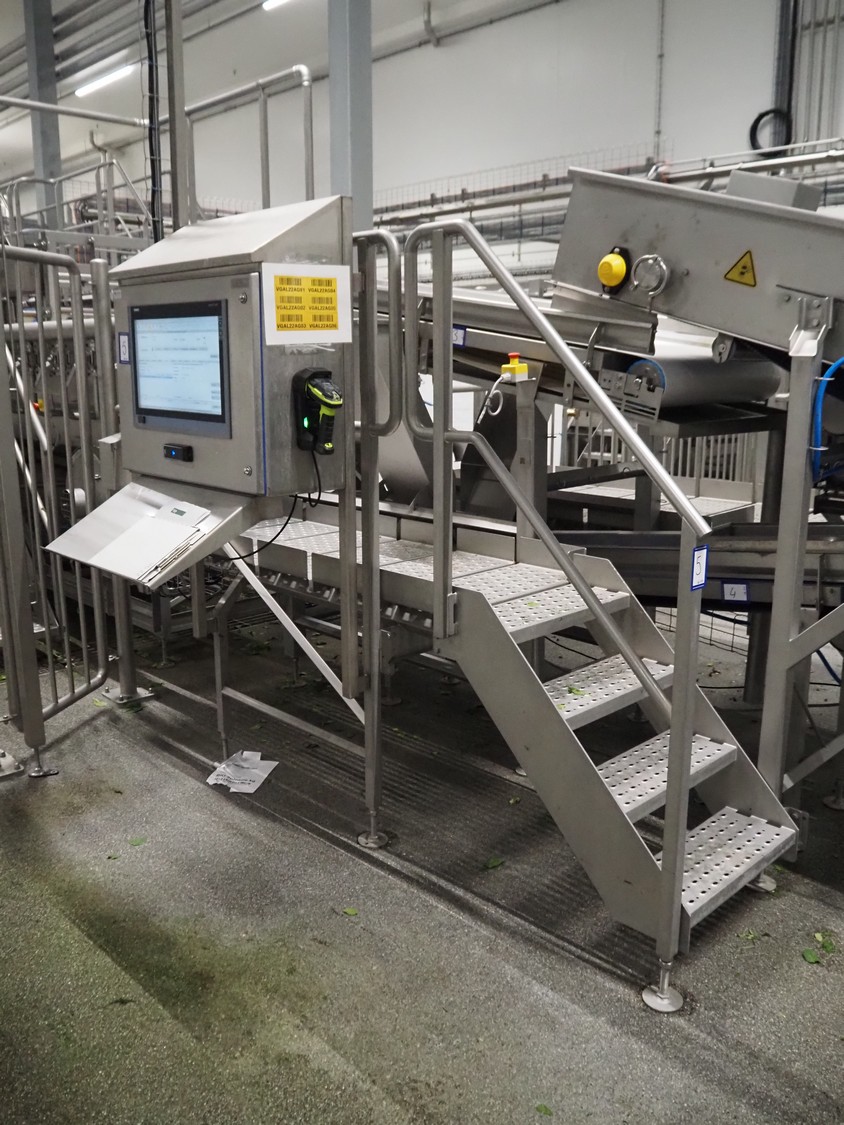 JBT FTNON B.V. Вибрирующий ремень для удаления мелких частиц грязи, номер станка: 16H0952000, год постройки: 2018, пластиковый сетчатый ремень, ширина ленты: 800 мм, высота подъёма: 1800 мм, общие размеры: 6500 мм x 1200 мм x 2150 мм.