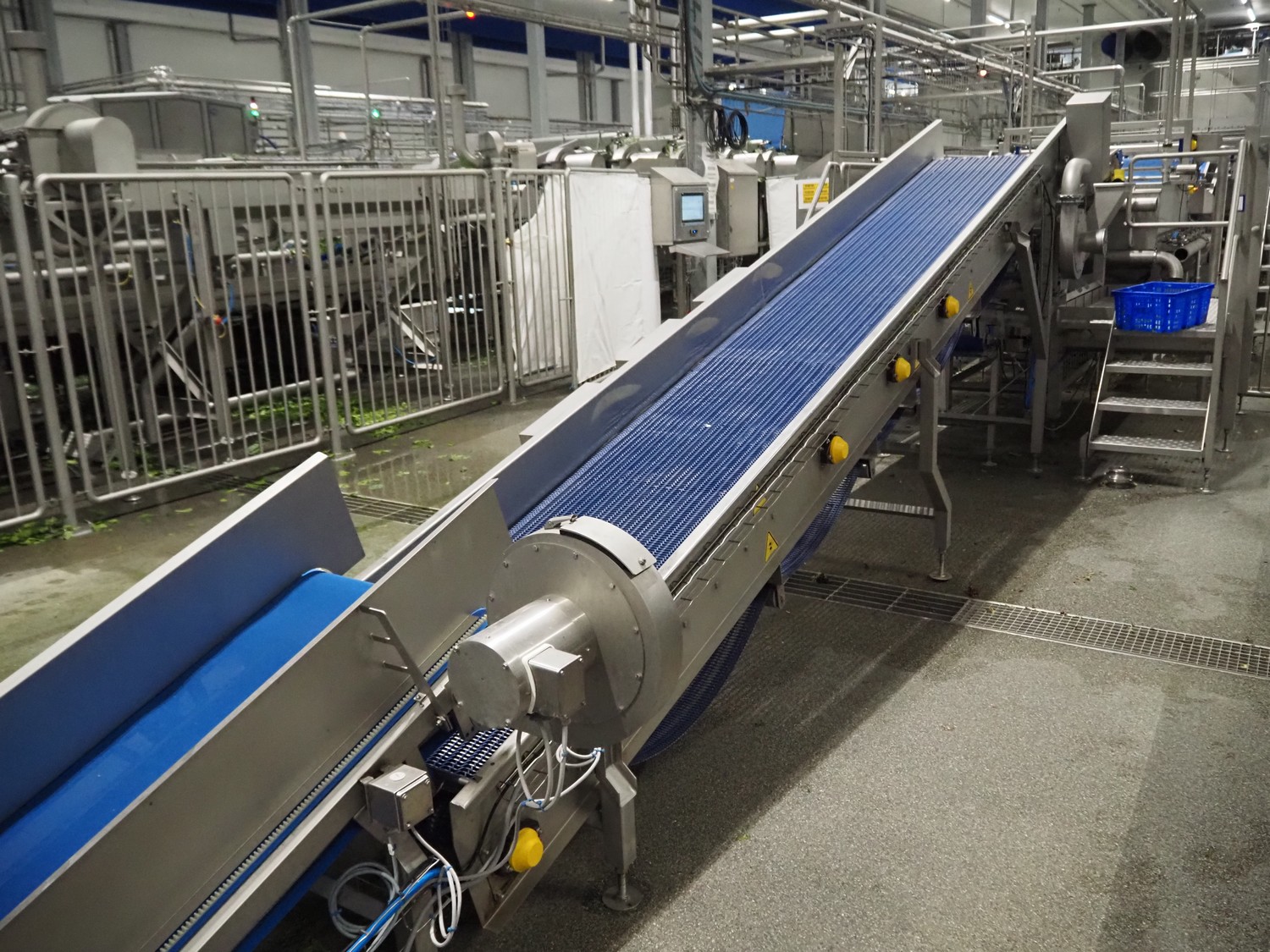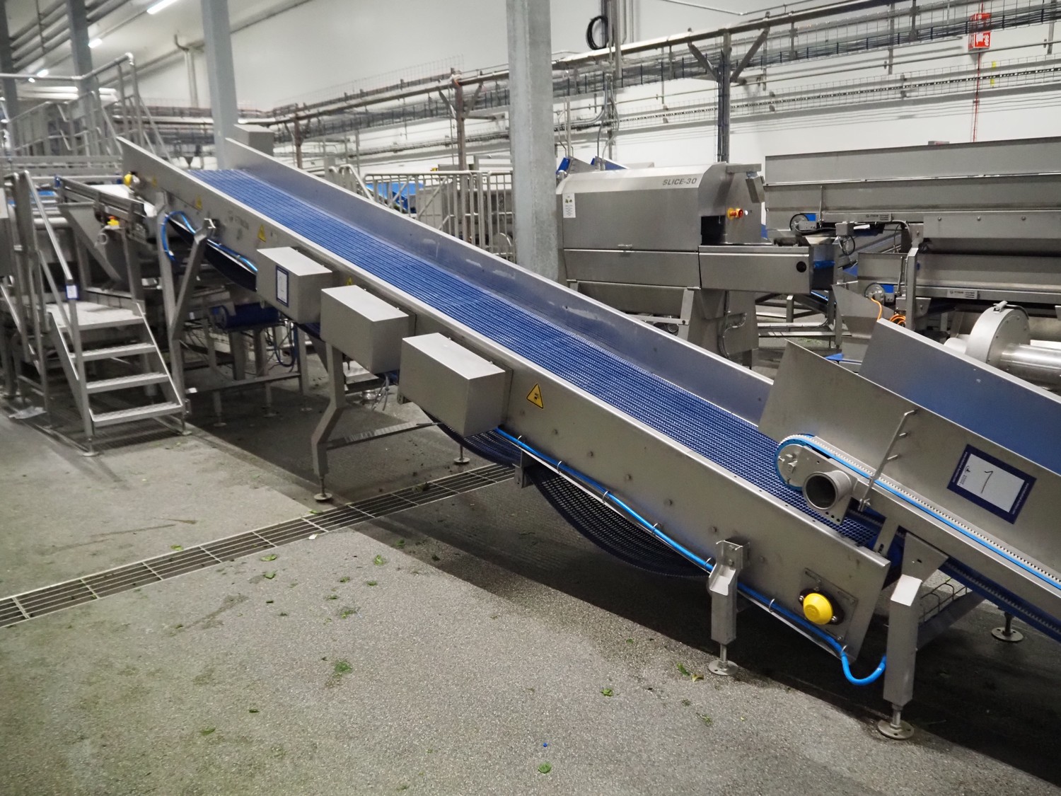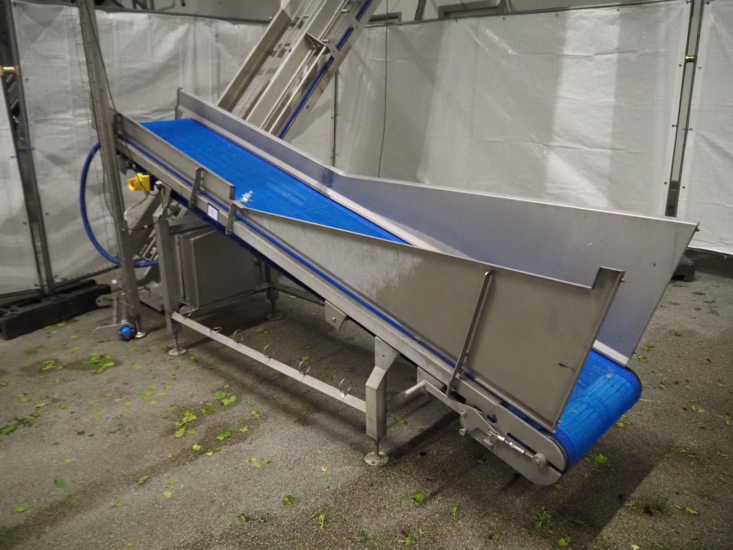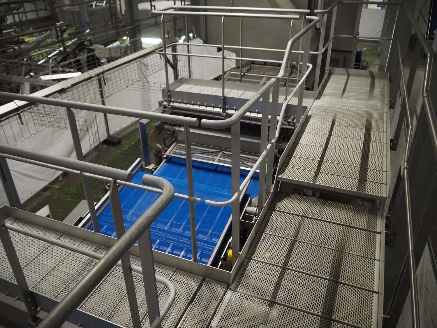 JBT FTNON B.V. Вибрирующий ремень для удаления мелких частиц грязи, номер станка: 16H0952000, год постройки: 2018, пластиковый сетчатый ремень, ширина ленты: 800 мм, высота подъёма: 1800 мм, общие размеры: 6500 мм x 1200 мм x 2150 мм.