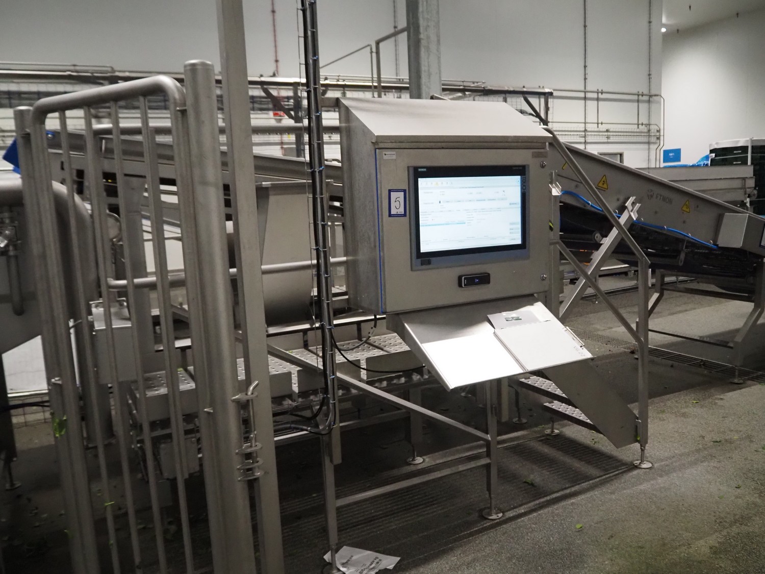 Шкаф управления JBT FTNON B.V. с рабочей платформой, размеры шкафа управления: 800 мм x 300 мм x 850 мм, рабочая высота: 850 мм, общие размеры рабочей платформы: 2750 мм x 800 мм x 1900 мм.