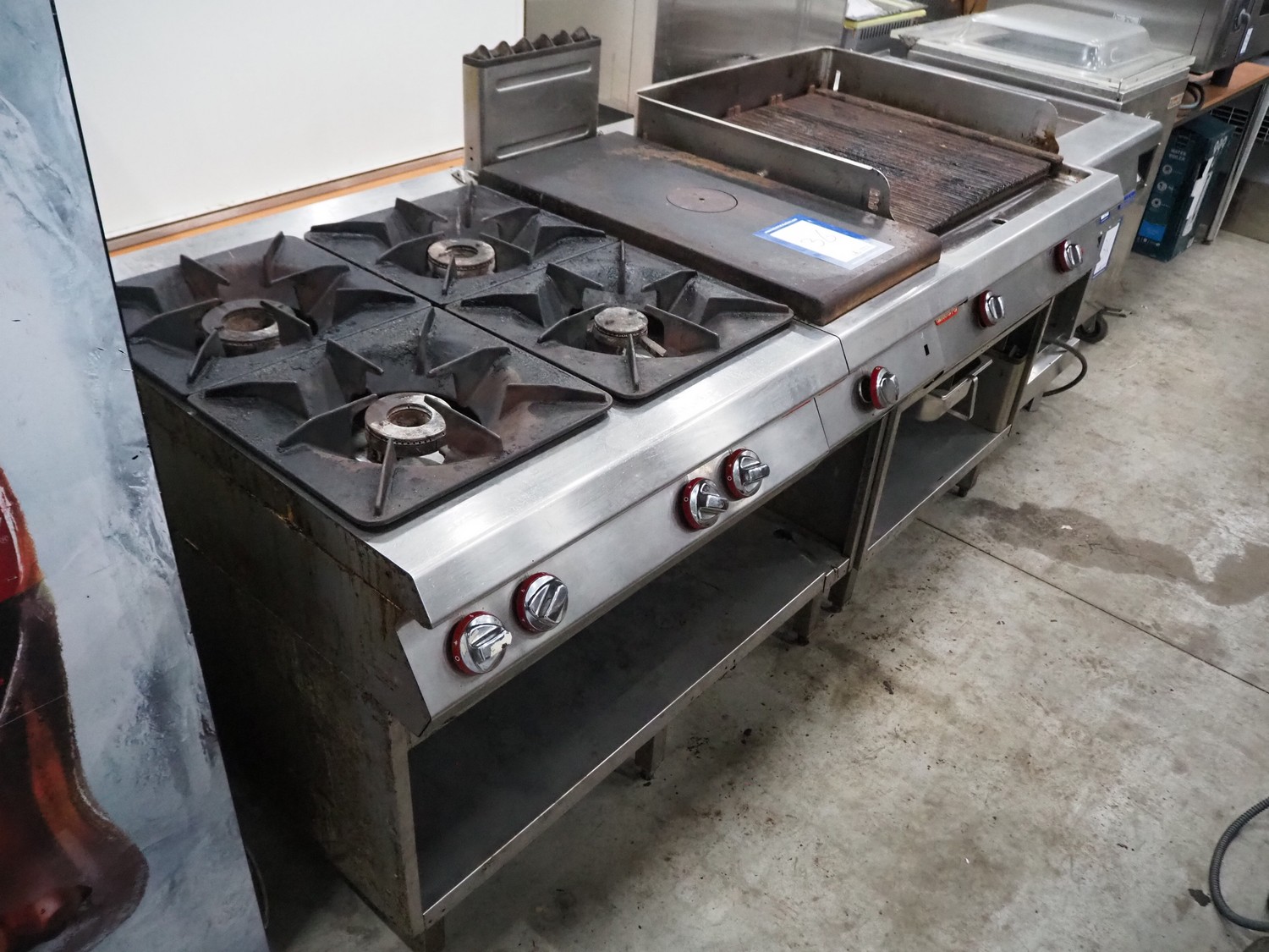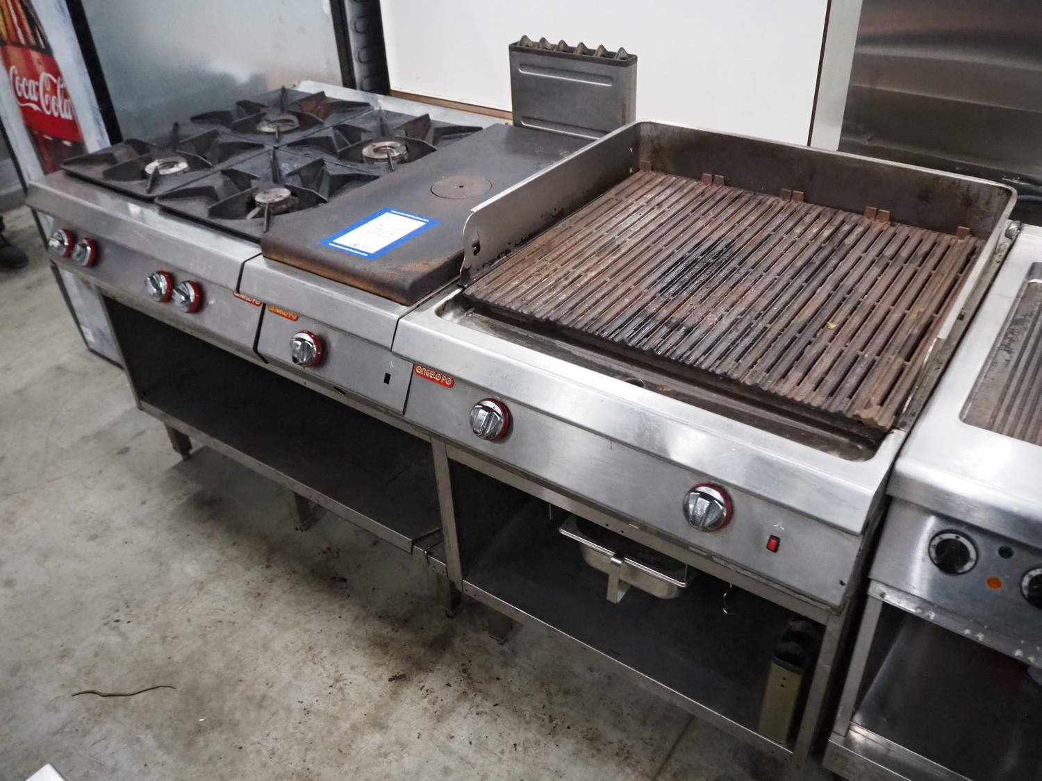 Кухонная стойка Angelo Po состоит из гриля и двух плит, газовых подогрев, размеры: 960 мм x 2010 мм x 1250 мм.