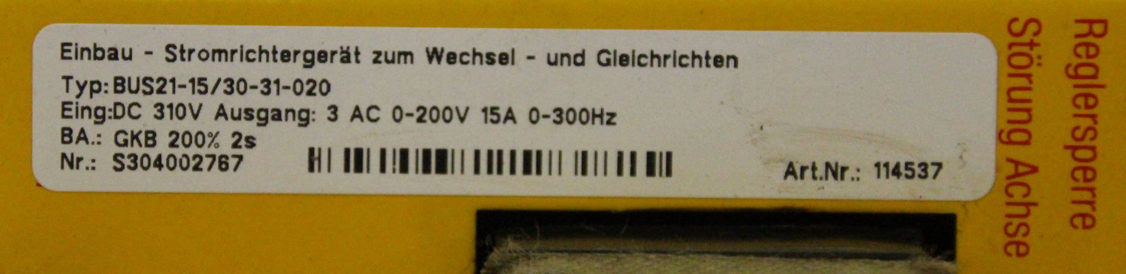 Power converter, power supply, power supply unit, servo power unit -Manufacturer: Baumüller -Type: BUS21-15/30-31-020 -Quantity: 2 available -Price: per piece -Dimensions: 400/55/H310 mm -Weight: 4.9 kg/piece