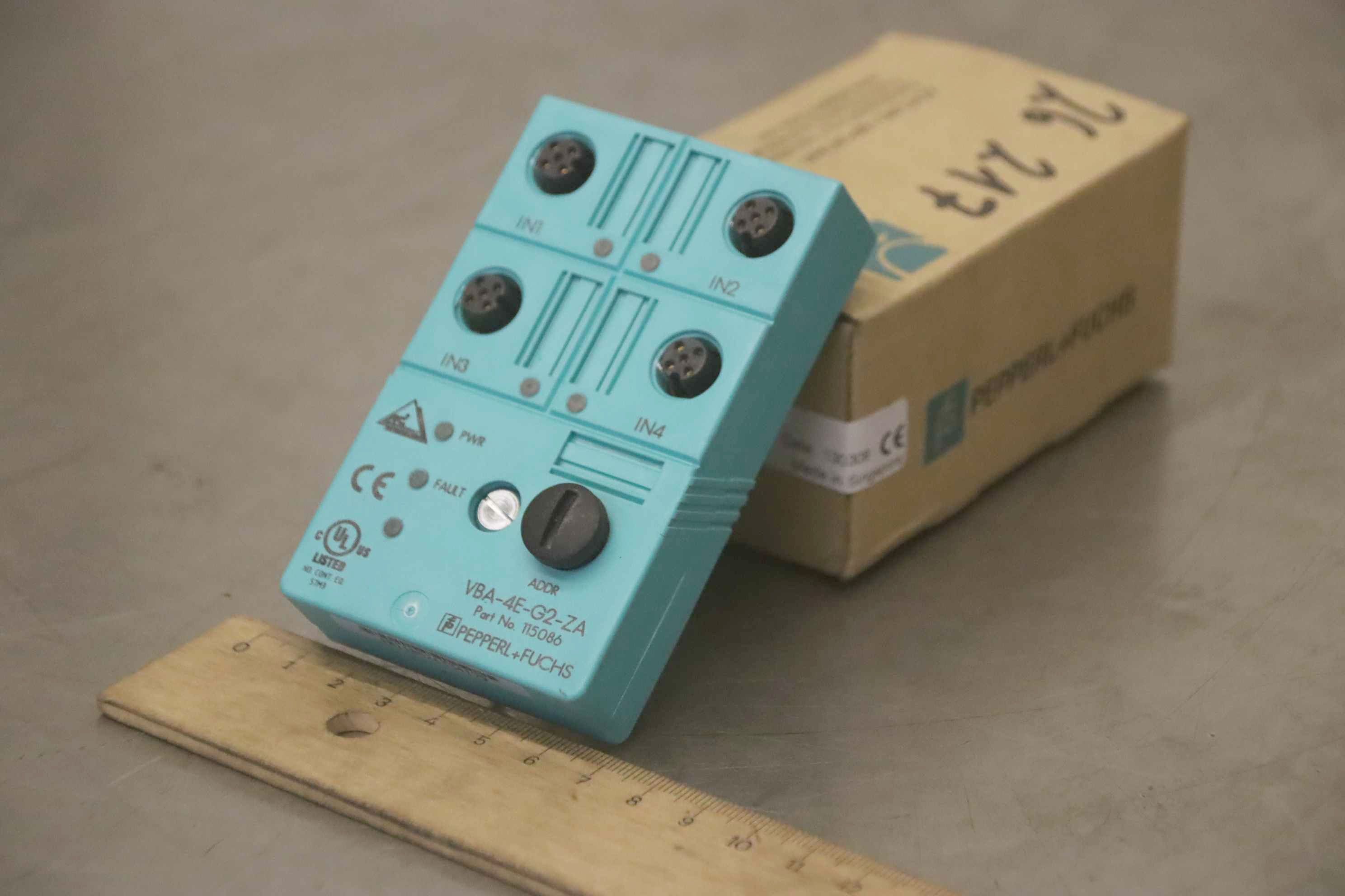 Control card, output card, controller, memory module, PLC controller, expansion module, interface module, analog assembly, analog module, analog output, interface module, AS-Interface actuator module-Manufacturer: Pepperl Fuchs AS-Interface-Sensormodul Ovp-Type: VBA-4E-G2-ZA-Number: 7x module available-Price per piece-Cardboard dimensions: 105/65/H50 mm-Weight: 0.1 kg/pcs