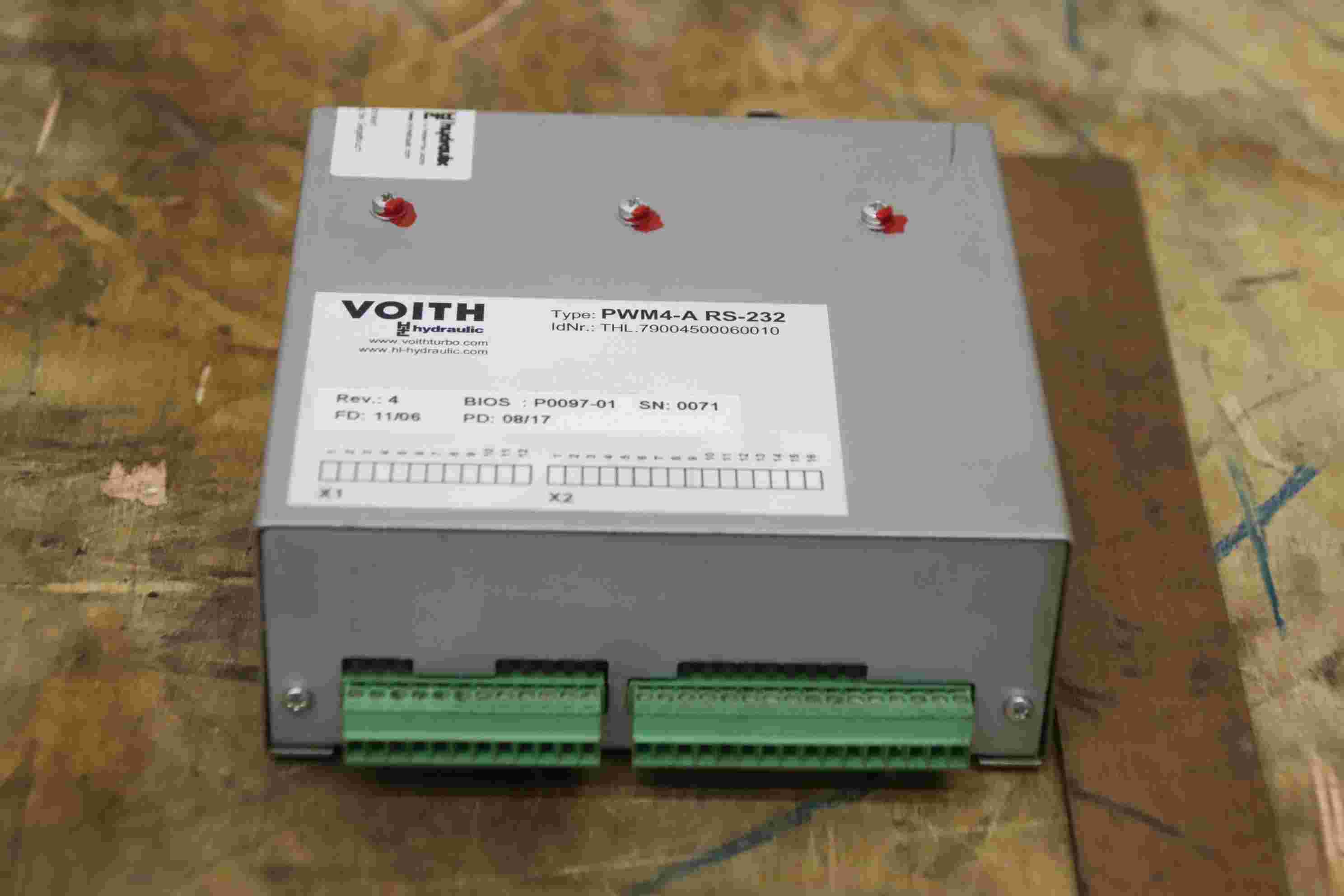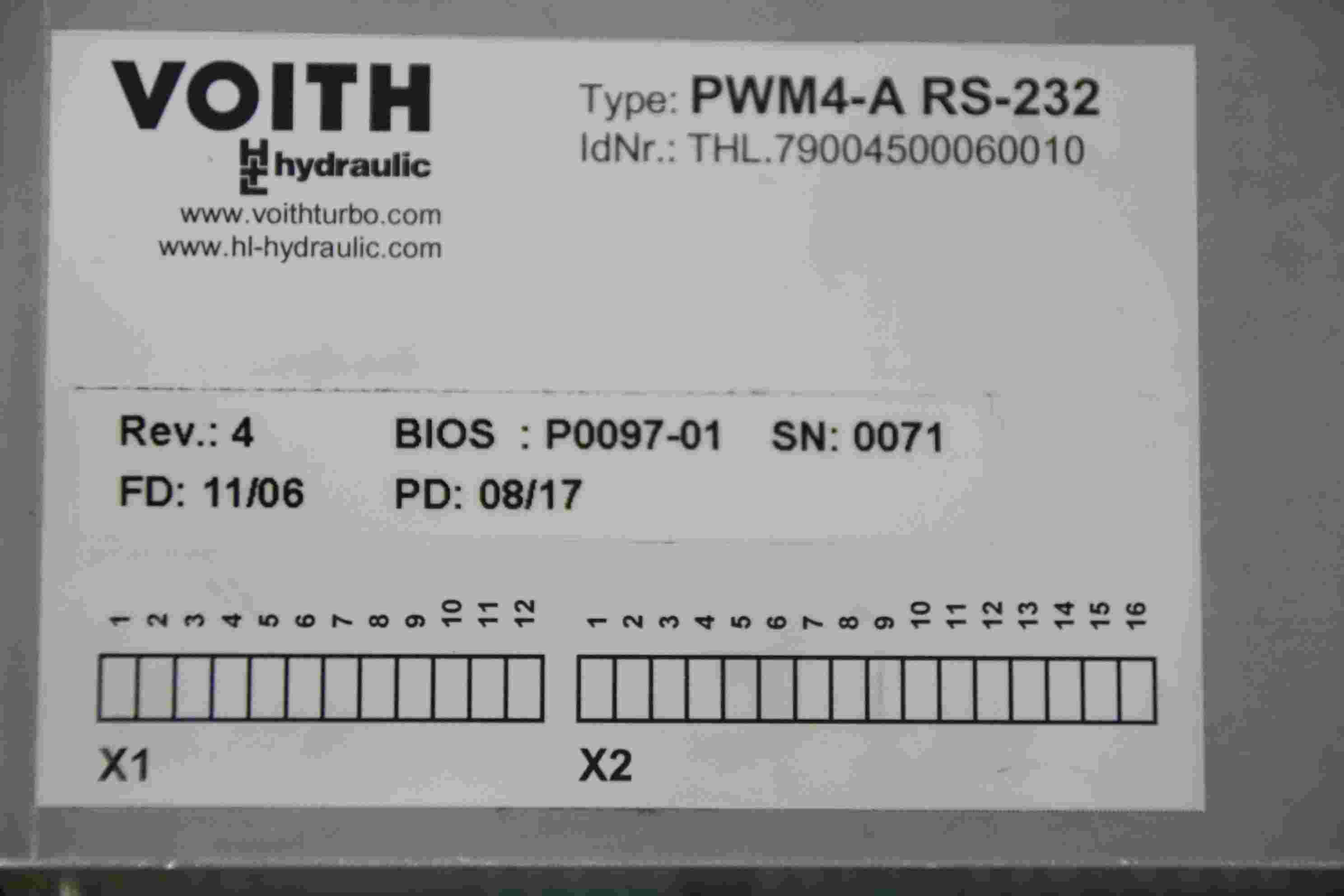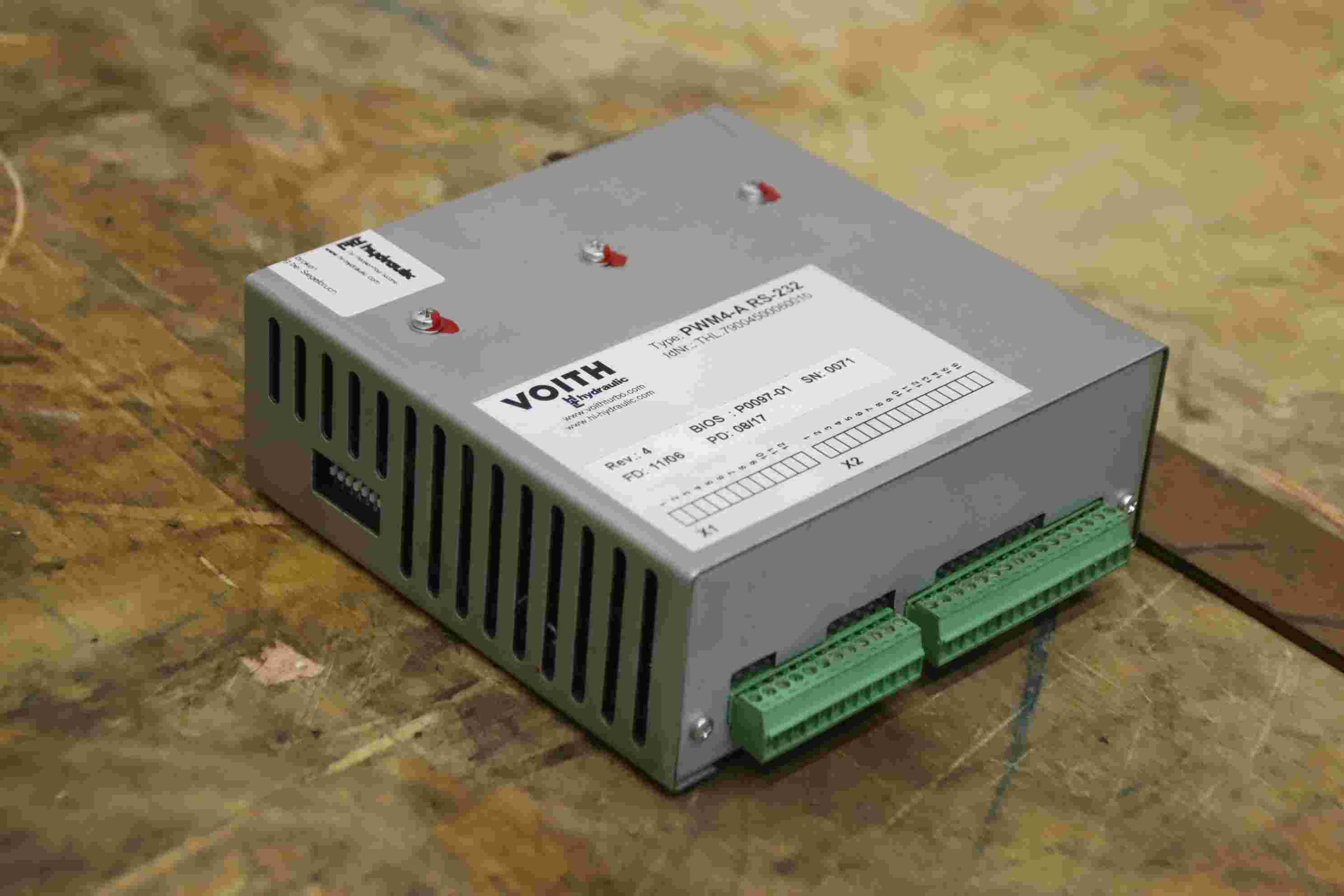 Valve block, control block, hydraulic control block, control unit, hydraulic control-Manufacturer: Voith, control unit from Uldrian TSM 22-8 rotary transfer machine-Type: PWM4-A RS-332 REV.: 4 BIOS : P0097-01-Number: 9x control unit available-Price per piece-Dimension: 150/135/H50 mm-Weight: 0.7 kg/pc.