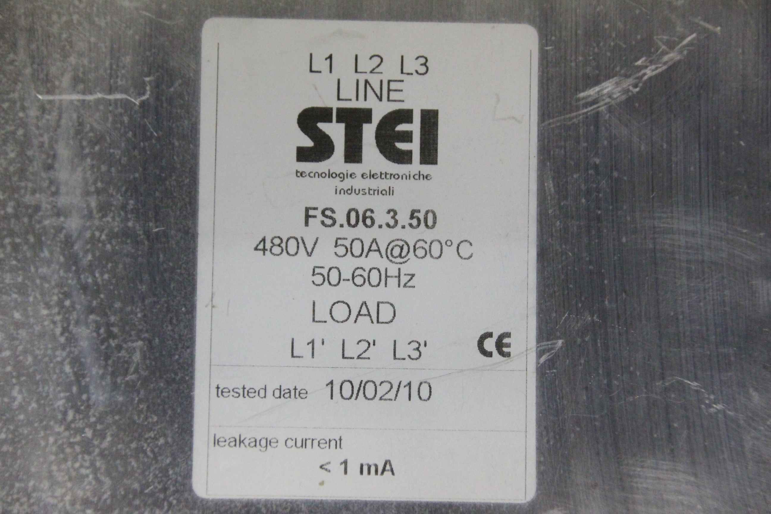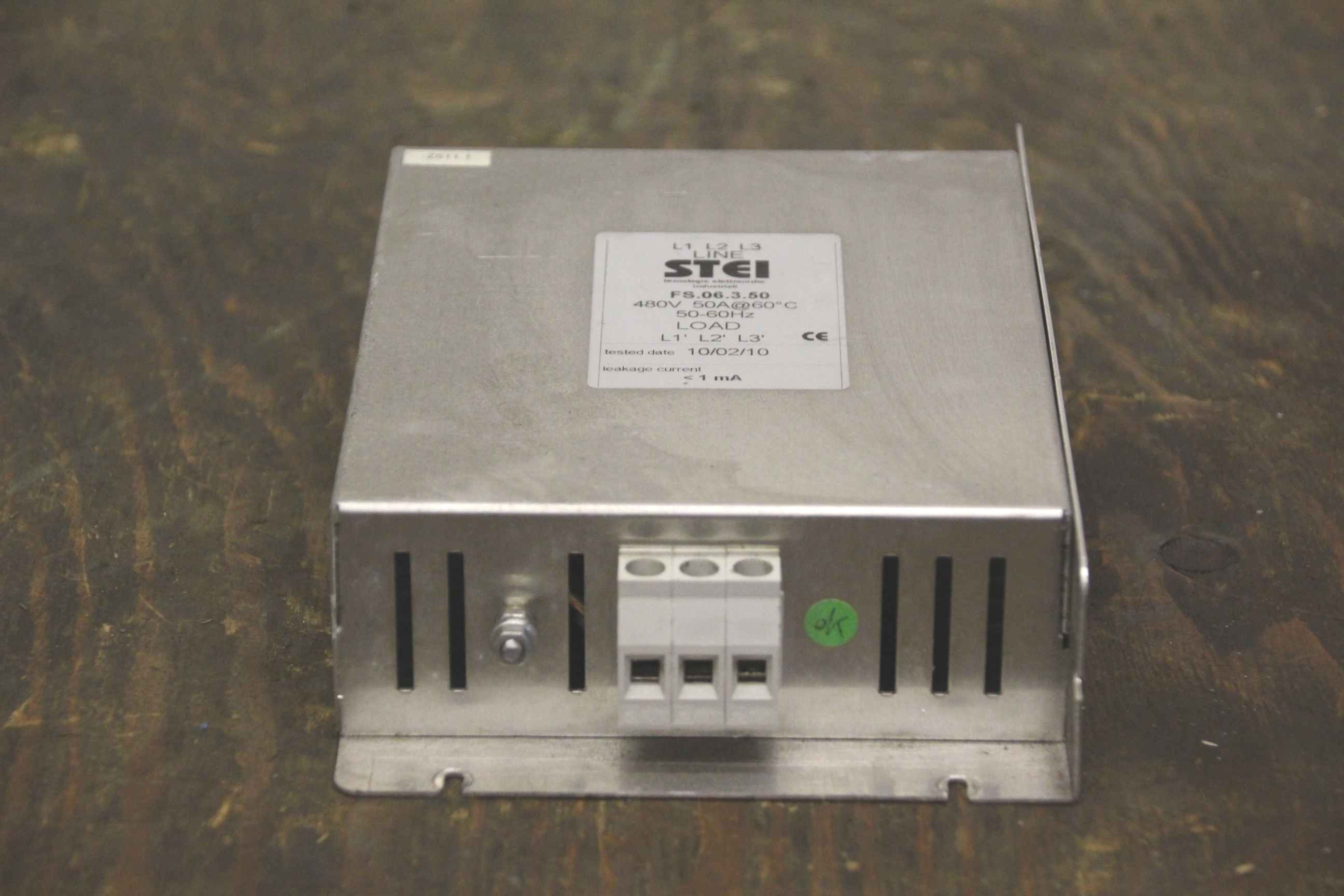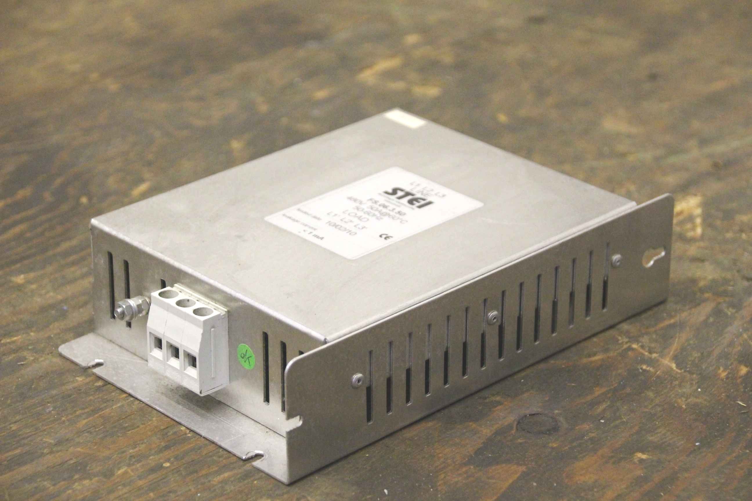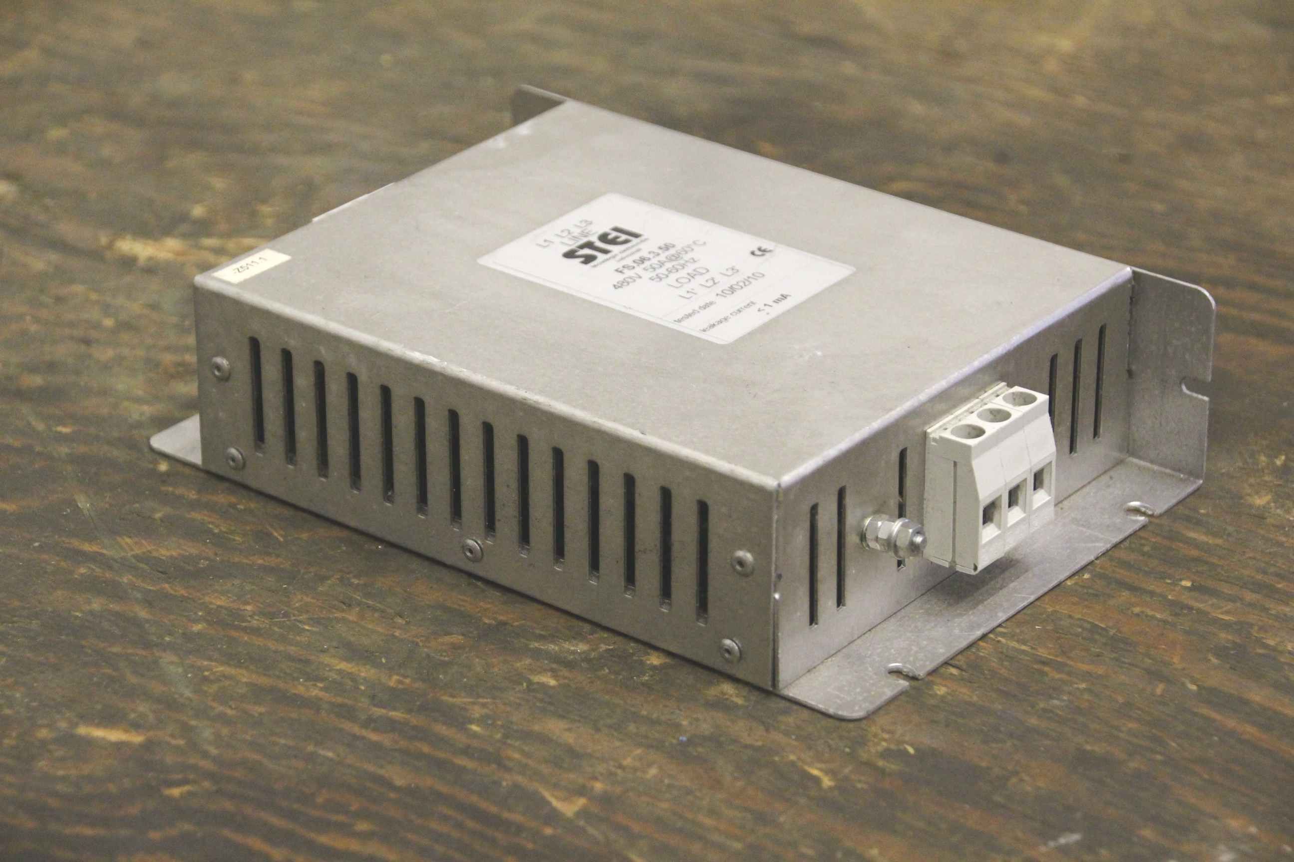 Line filters, power line filters, three-phase filters, three-phase line filters-Manufacturer: Stei-Type: FS.06.3.50-Voltage: 450 V/50 A/50-60 Hz-Dimensions: 210/140/H50 mm-Weight: 0.9 kg