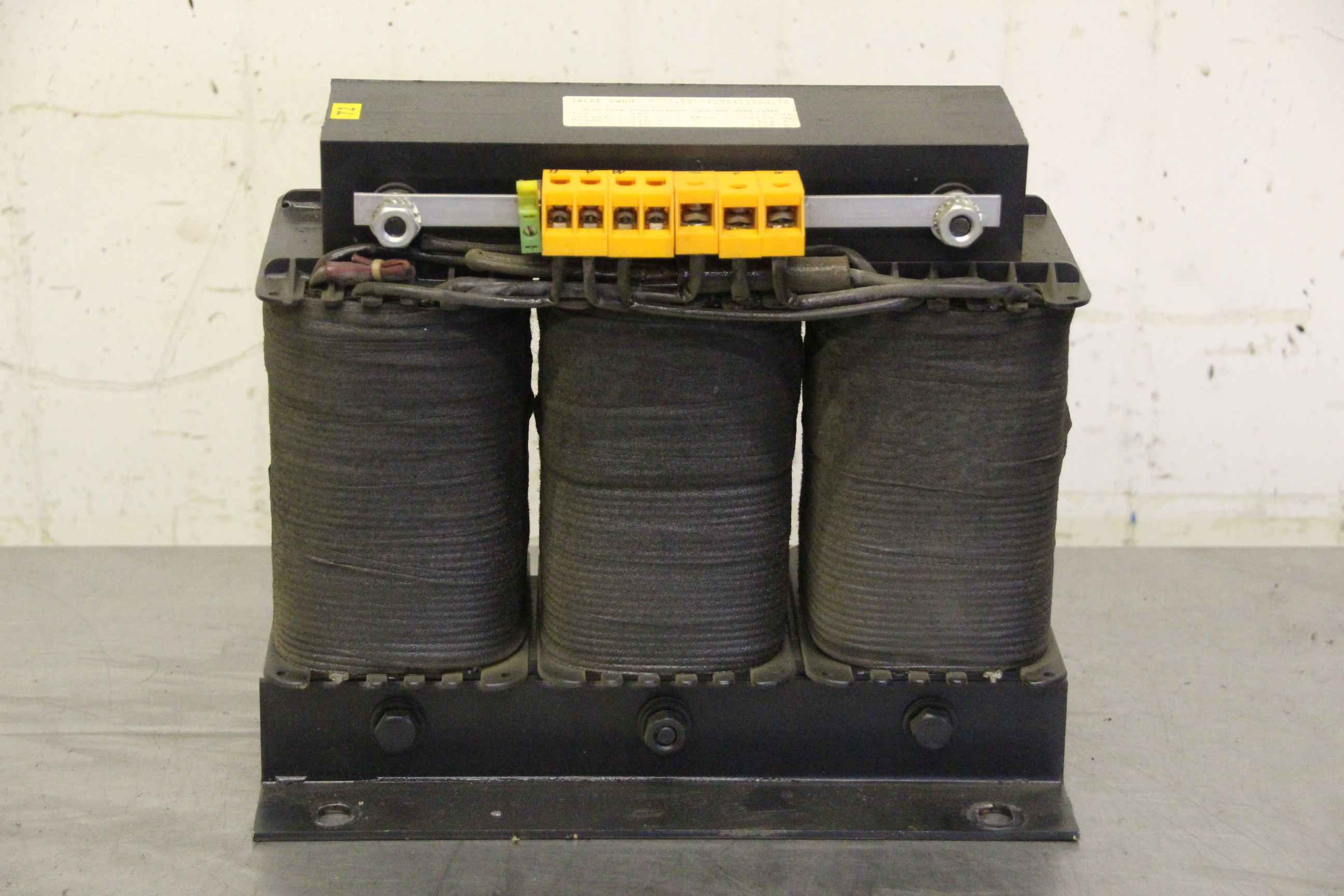 Transformer, transformer, converter, three-phase autotransformer, three-phase transformer, three-phase transformer-Manufacturer: jacket, three-phase transformer-Type: DAT 2.2 kVA-Primary: 380 V 3.6 A-Secondary: 115 V 11.0 A.-Dimensions: 265/145/H225 mm-Weight: 31 kg