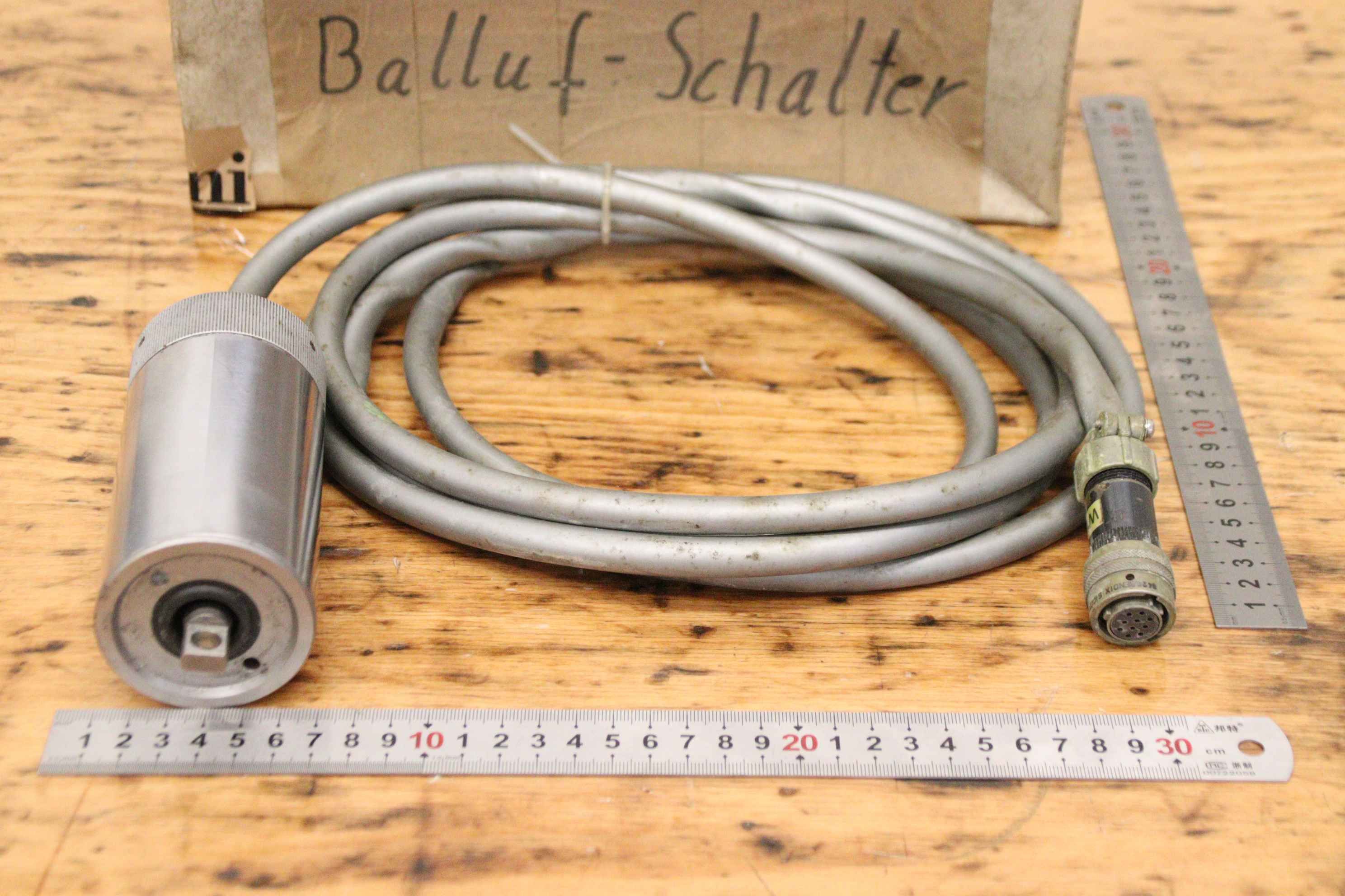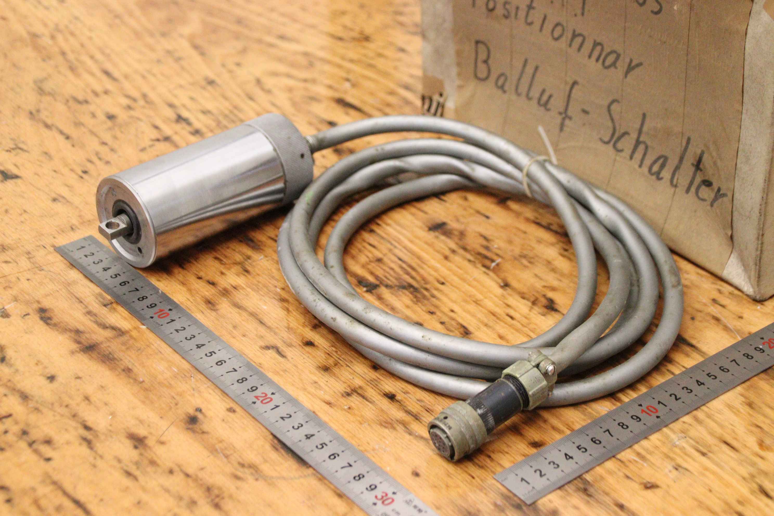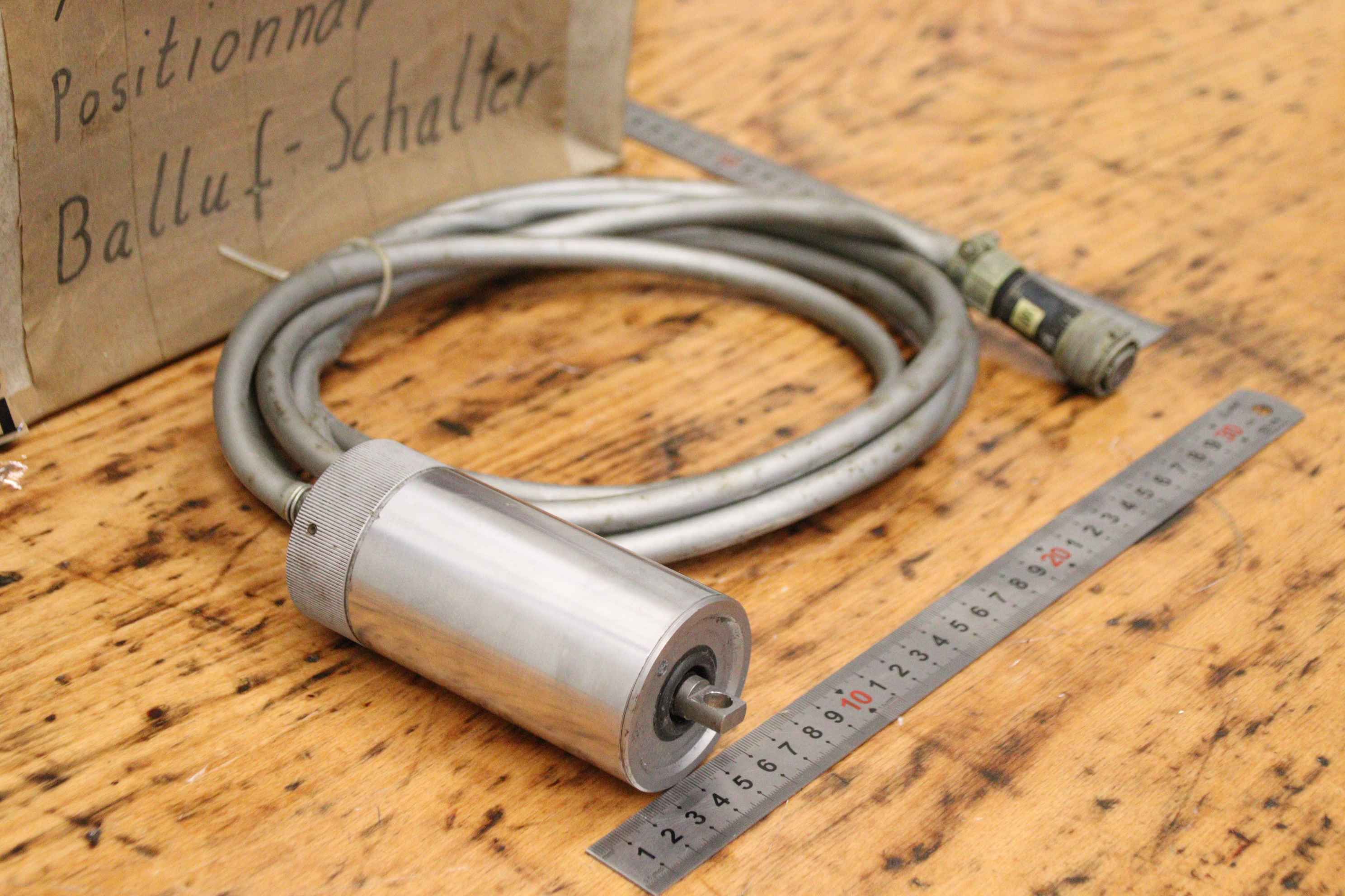 Digital display, length measuring system, length measuring device, linear scale, positioning display, digital scales, linear encoder, linear encoder, positioner, Balluf switch, position switch-Manufacturer: Marposs, Balluf-Switch Positionnar-Type: 34 05080 903-Measuring length: 80 mm-Dimensions box: 300/200/H100 mm-Weight: 1.9 kg