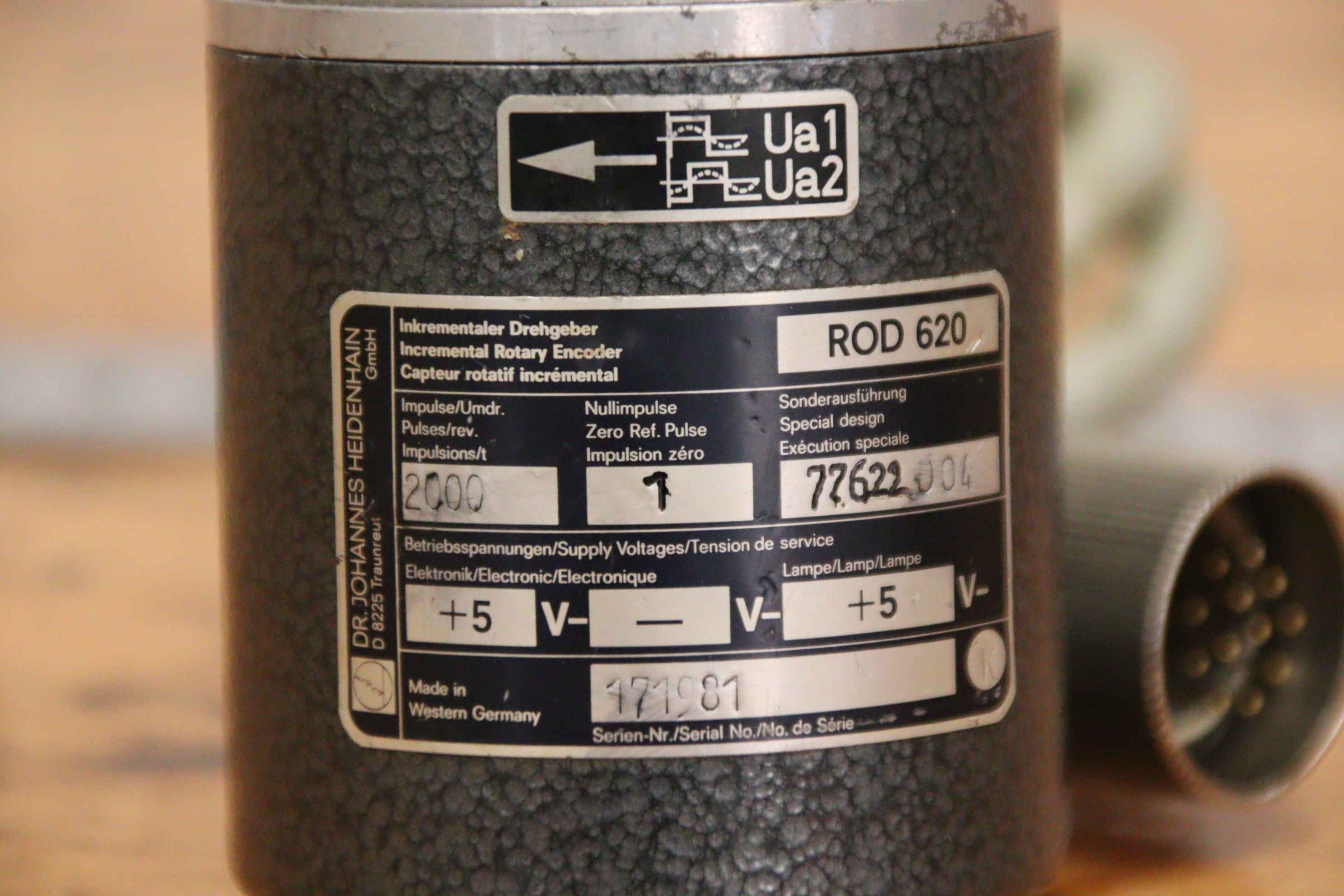 Absolute encoder, encoder, encoders, absolute encoders, absolute encoders, function encoders, resolvers, incremental encoders-Manufacturer: Heidenhain, Incremental Encoder-Type: ROD 620-Version: 77622 004-Shaft: Ø 6 x 10 mm-Dimensions: 90/80/H70 mm-Weight: 0.4 kg