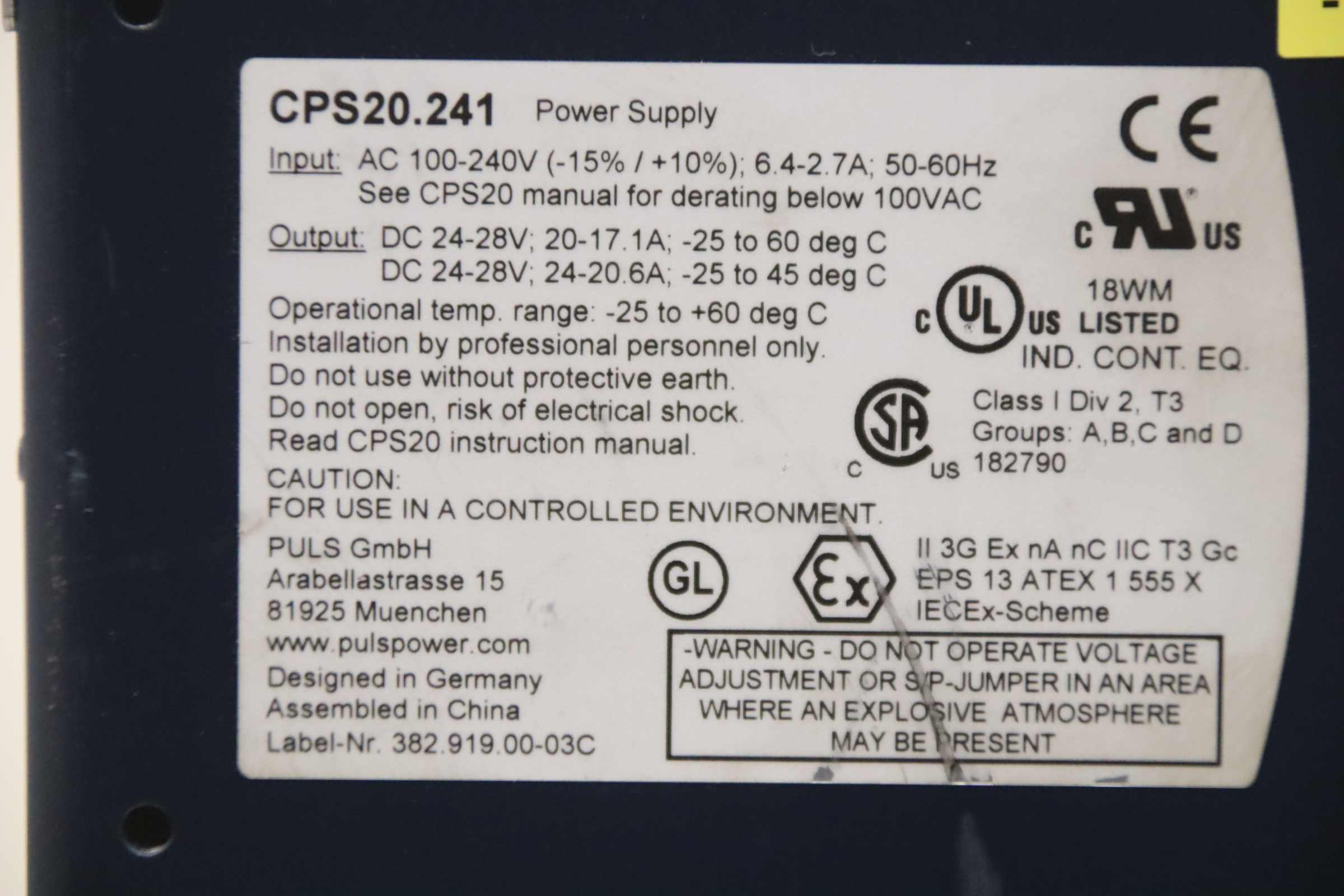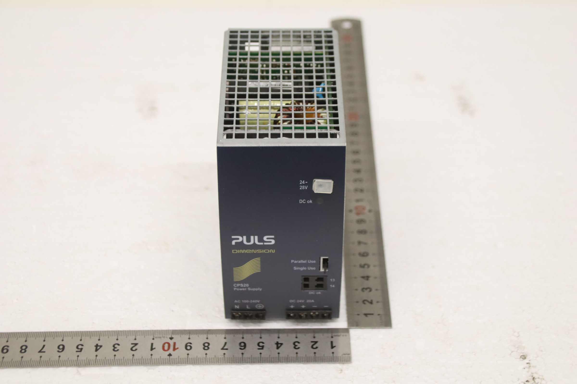 Converter, power supply, switching power supply, DIN rail power supply, servo module, AC/DC power supply, DC power supply, power supply module -Manufacturer: Puls, Power Supply -Type: CPS20.241 -Input: 100-240V single-phase input -Output: 24V 20A -Number: 37 modules available -Price: per piece -Dimensions: 125/65/H130 mm -Weight: 0.9 kg/pcs