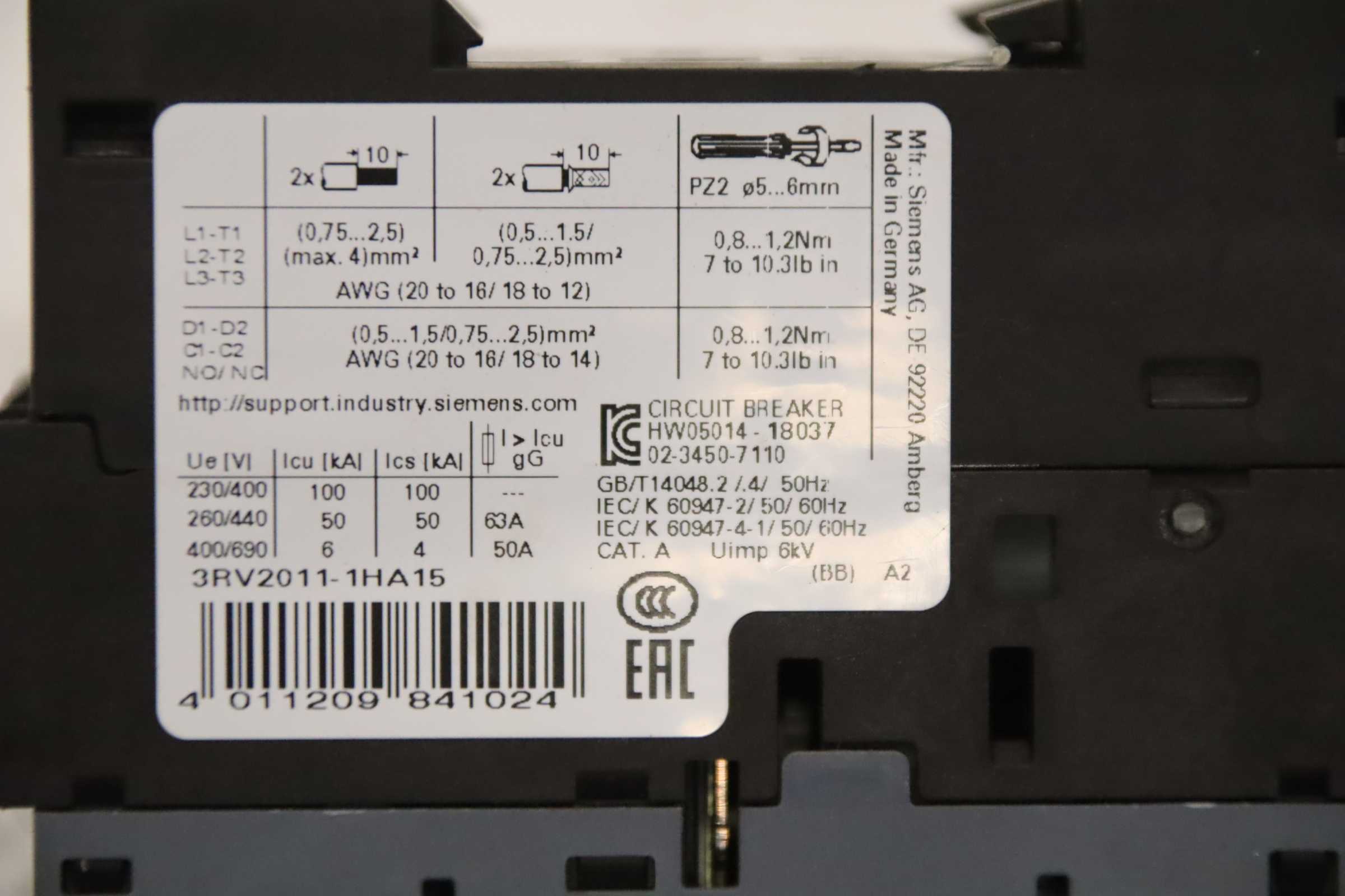 Circuit breakers, motor protection circuit breakers, power disconnectors, low-voltage networks, circuit breakers for transformer, generator and plant protection, voltage releases -Manufacturer: Siemens, Sirius motor protection switch -Type: 3RV2011-1HA15 -Number: 1x switch available -Dimensions: 100/45/H100 mm -Weight: 0.5 kg