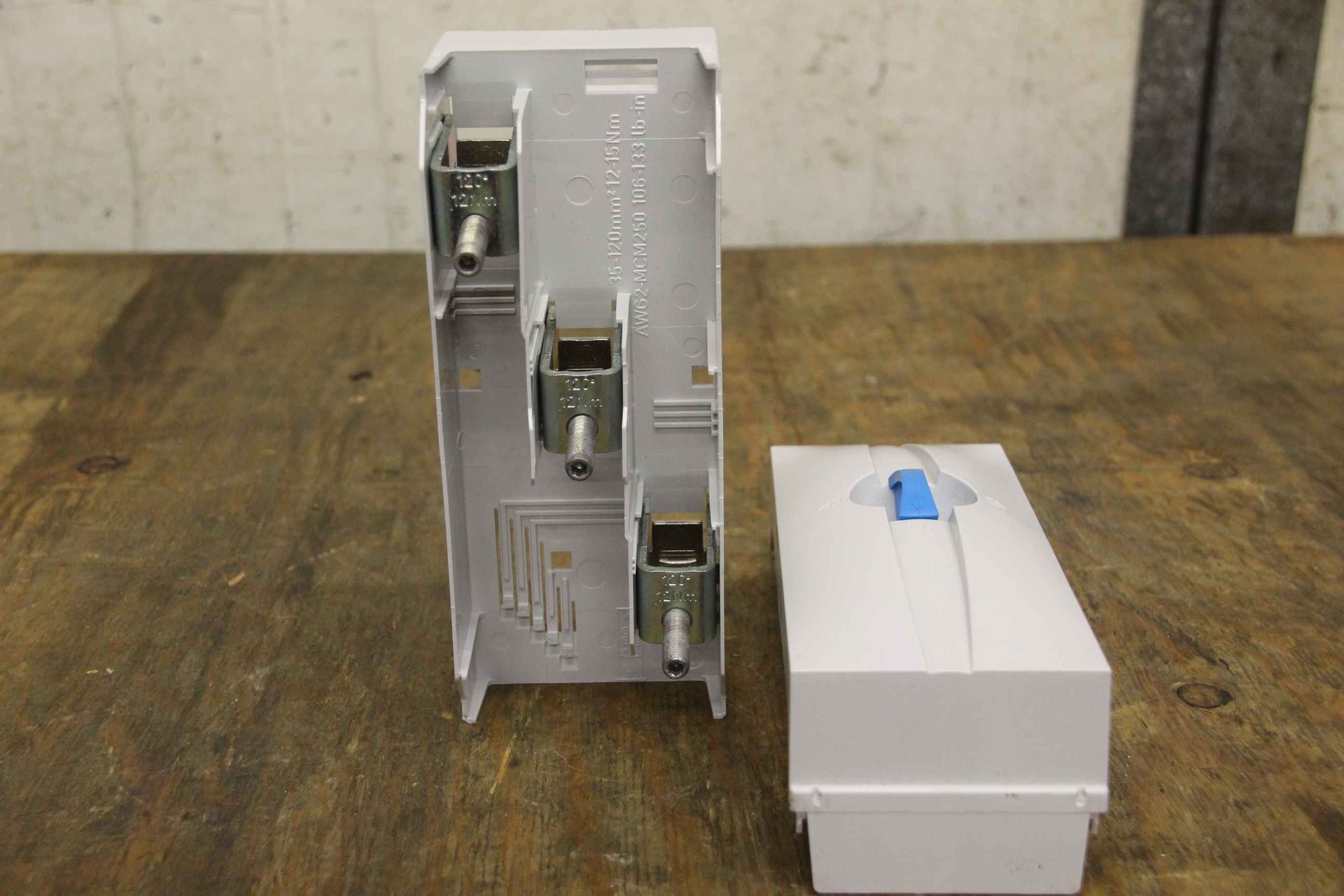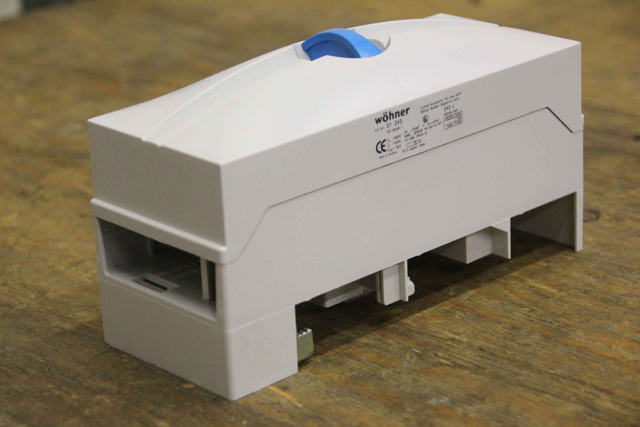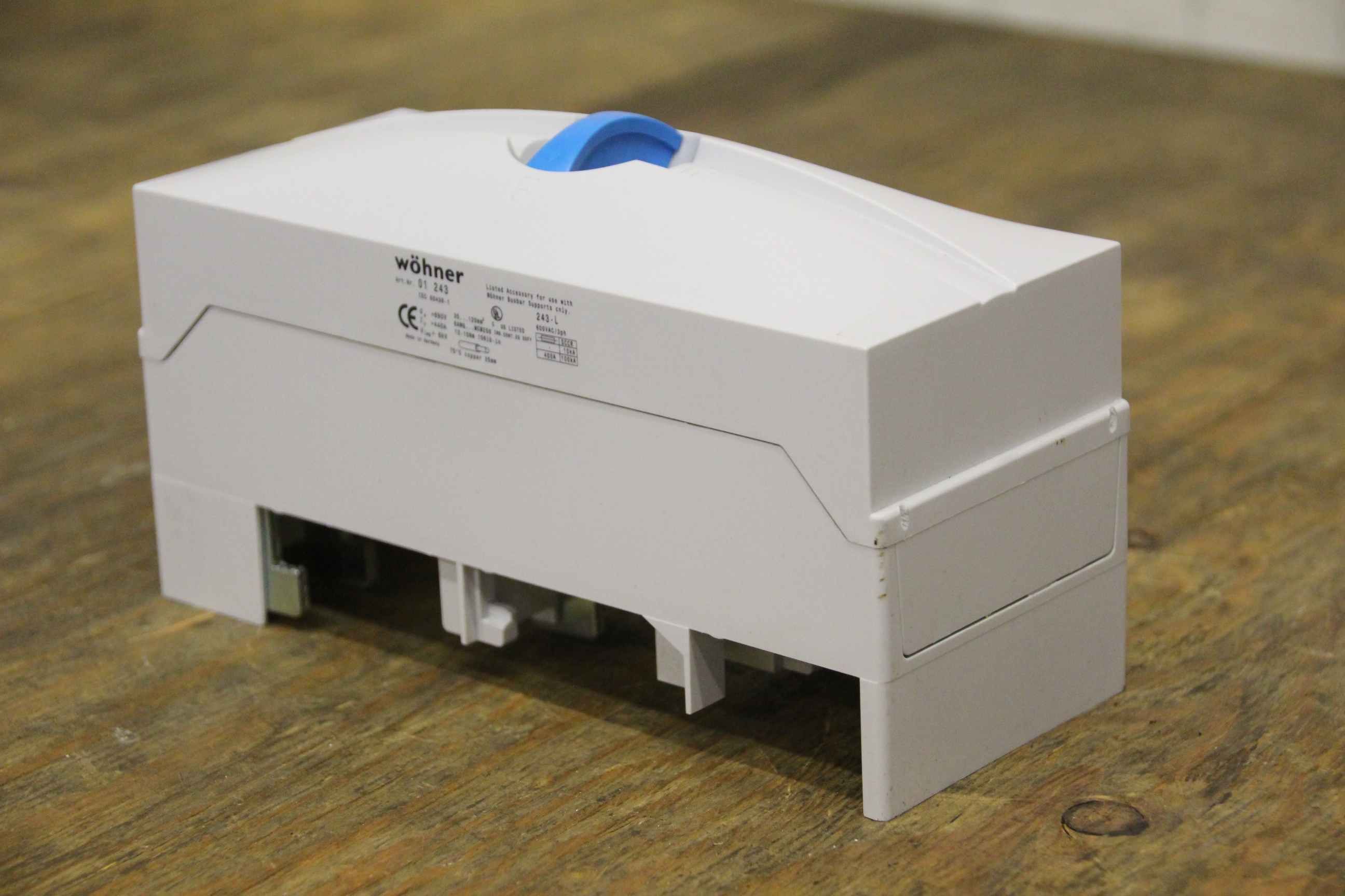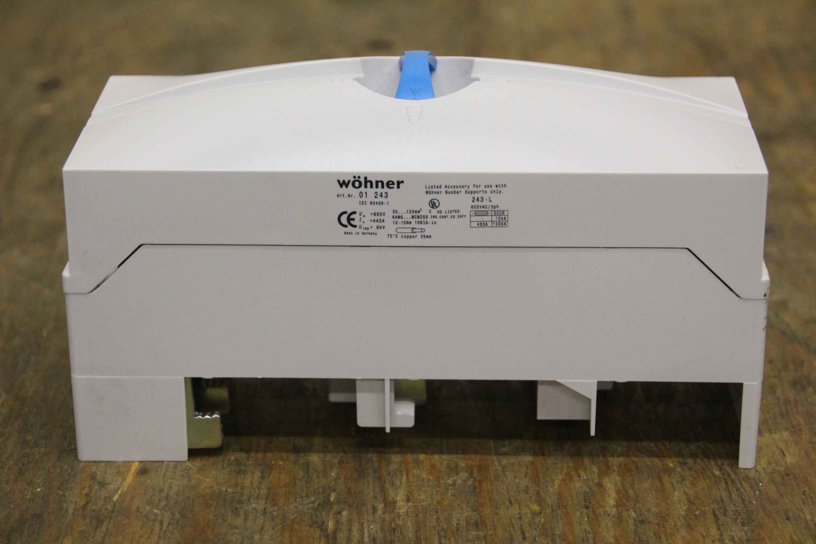 Control cabinet and distribution board, busbars, busbar supports, busbar adapters, terminal plates-Wöhner item no.: 01 243-Quantity: 2 pieces available-Price: per piece-Minimum purchase: complete-Dimensions: 200/80/H110 mm-Weight: 0.5 kg/piece