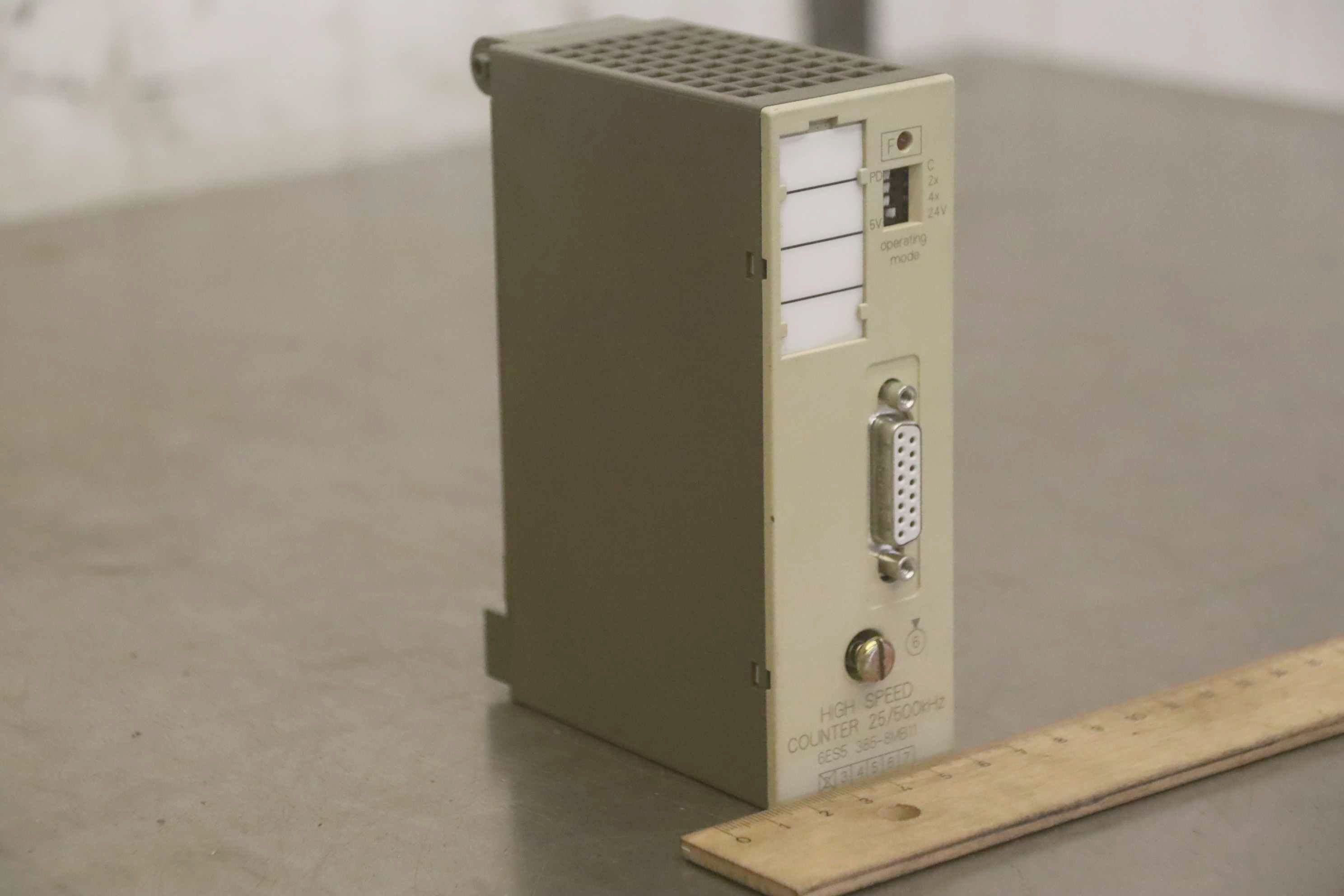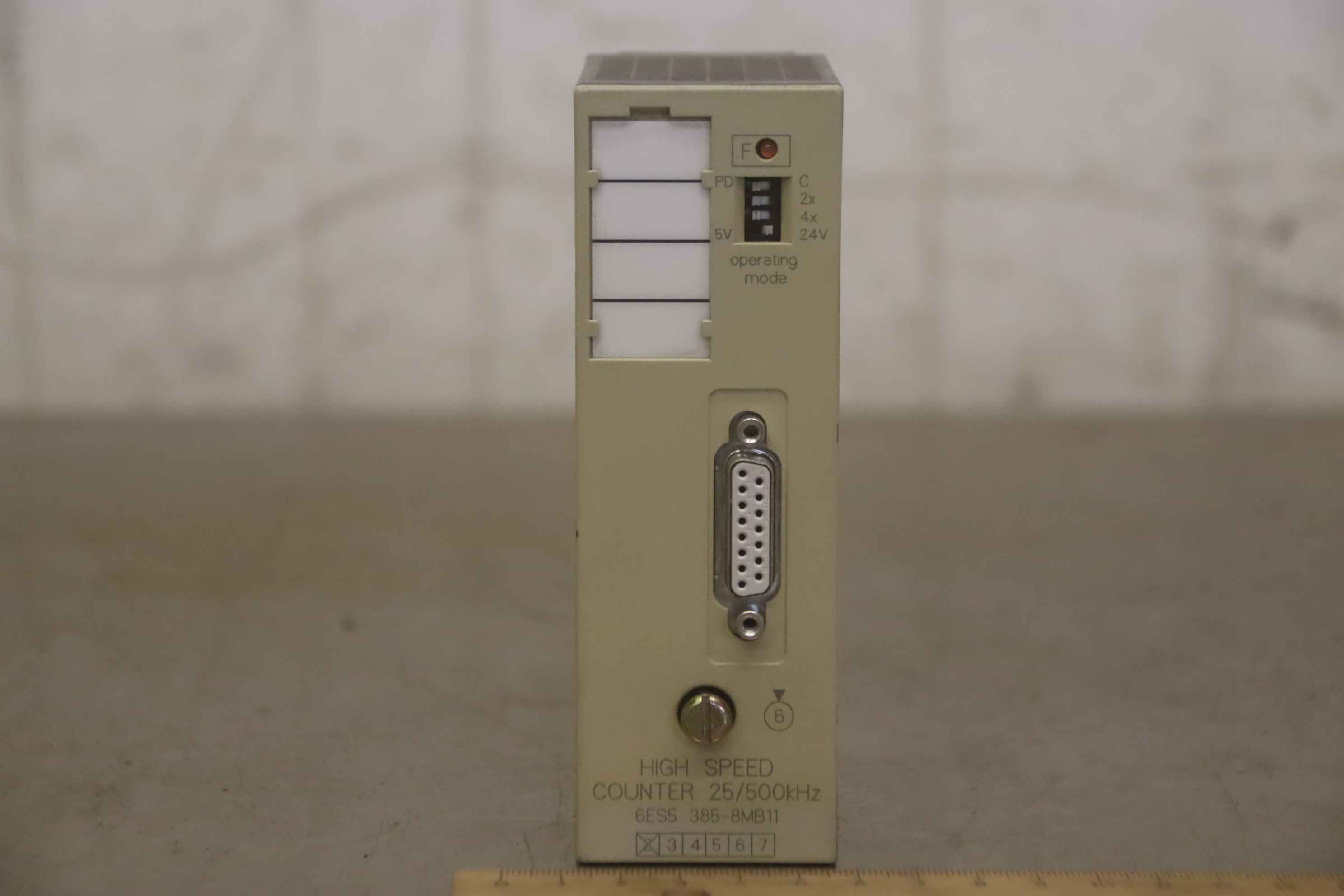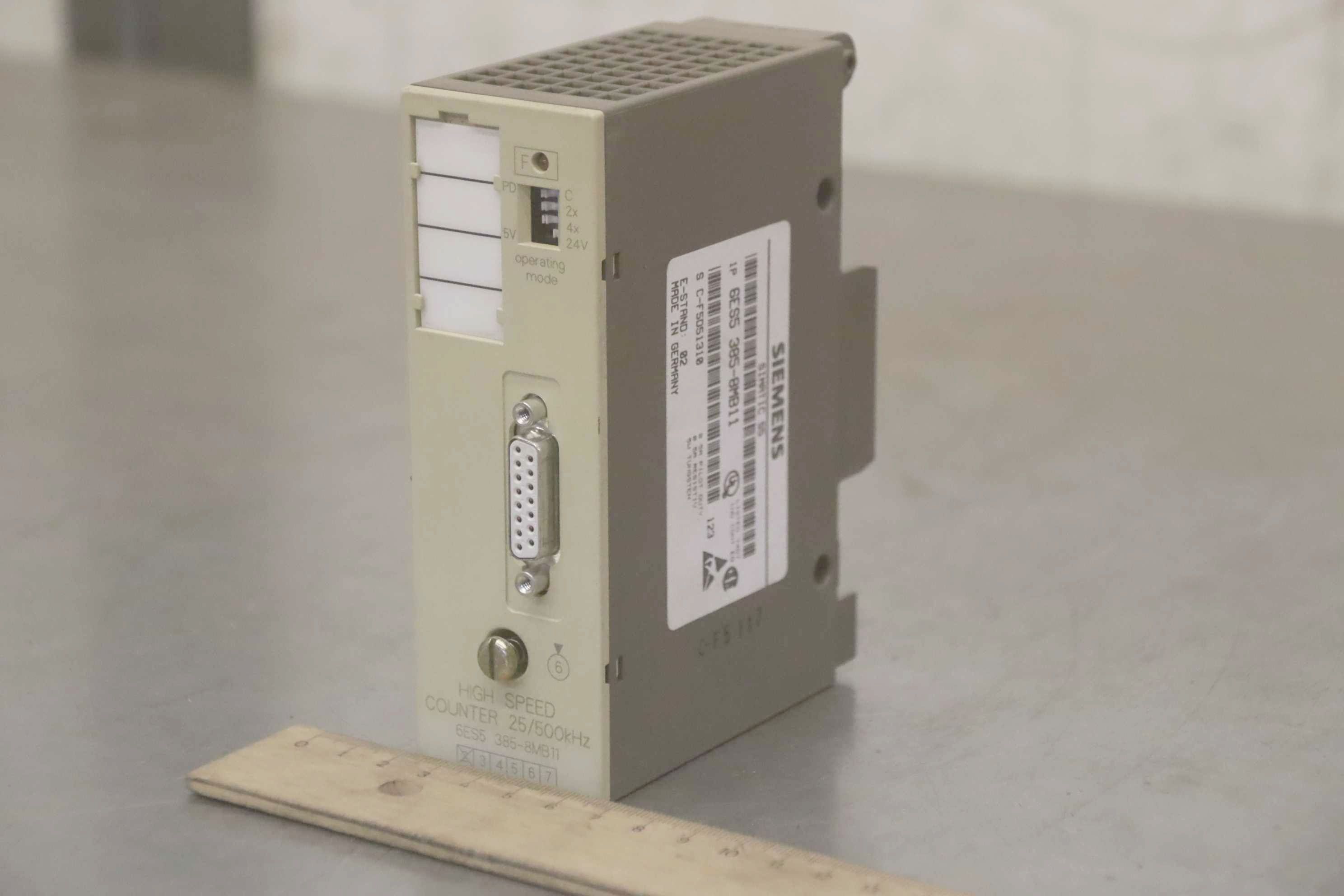 High Speed Counter 25/500 kHz, PLC control, counter module, counter assembly-Manufacturer: Siemens, Simatic S5 High Speed Counter 25/500 kHz -Type: 6ES5 385-8MB11-Number: 2x Modul available-Price: per package-Dimensions: 100/45/H135 mm-Weight: 0.2 kg/pc.