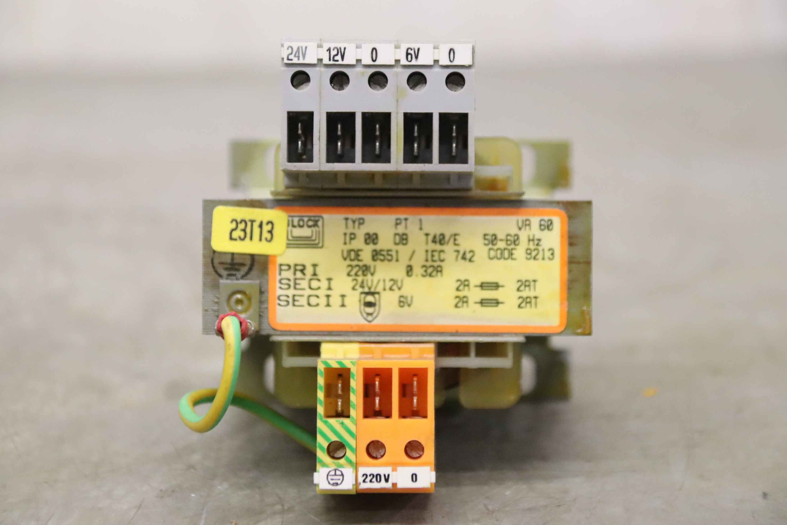 Transformer, transformer, converter, three-phase current autotransformer, three-phase transformer, three-phase current transformer, single-phase transformer, control transformer, safety transformer-Manufacturer: Block, transformer control transformer type PT 1-Power: 60 VA-Technical data: see photo nameplate-Dimensions: 90/80/H90 mm-Weight: 1.1 kg
