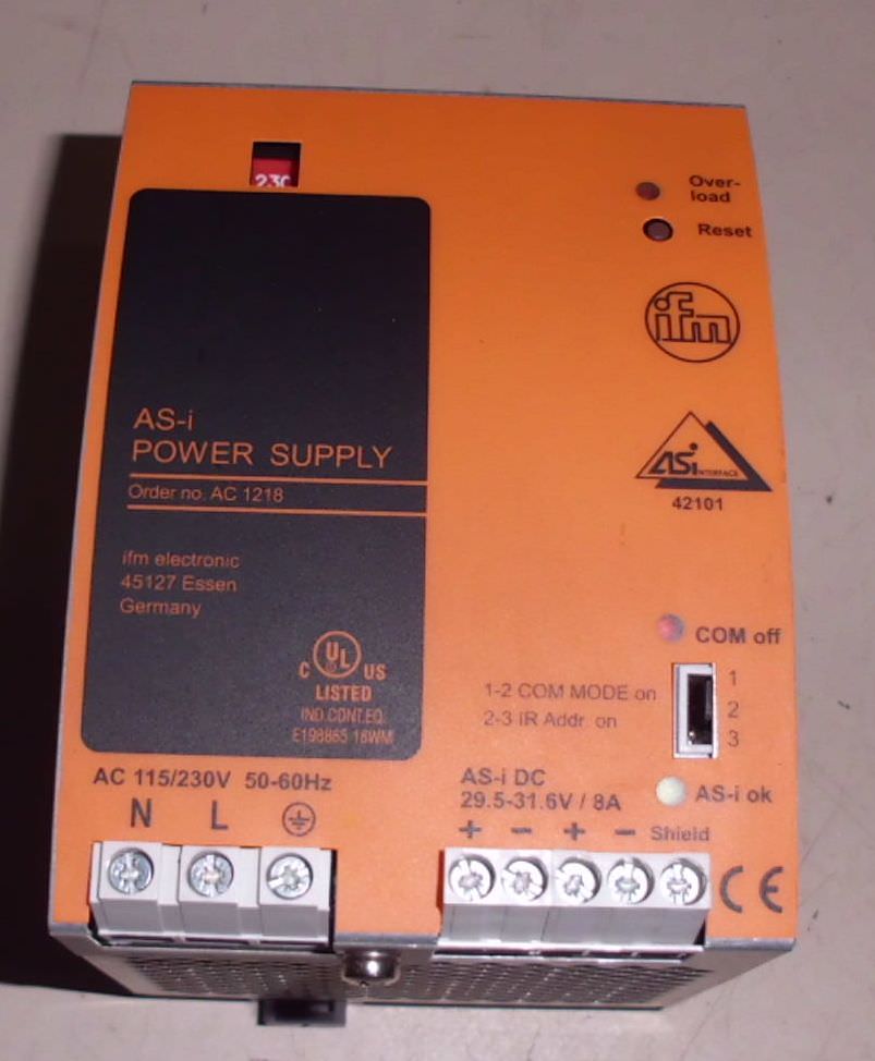 Power supply, converter, power inverter, power supply unit -Type: AS-i Power Supply AC1218 -Output: DC30.5V/8A -Number: 11x power supplies available -Price: per piece -Dimensions: 125/90/H110 mm -Weight: 0.9 kg