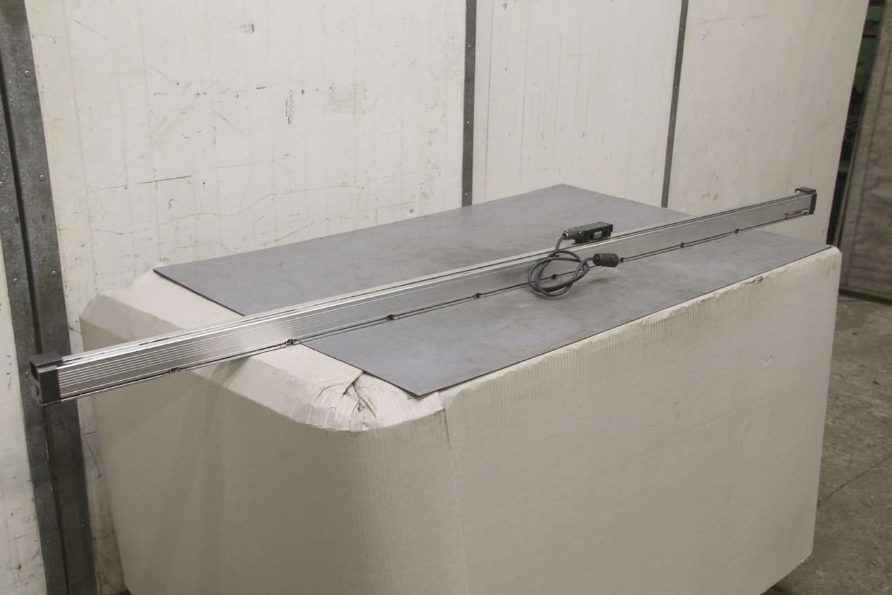 Glass scale, glass measuring stick, scale, digital display, measuring stick, length measuring system, length measuring device, linear scale, position indicator, digital scales, digital scale for digital display-for: turning and milling machines-Manufacturer: Heidenhain-Type: LB302-Dimensions: 1915/49/H63 mm-Weight: 7.2 kg