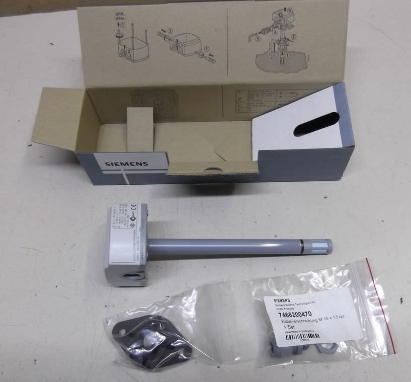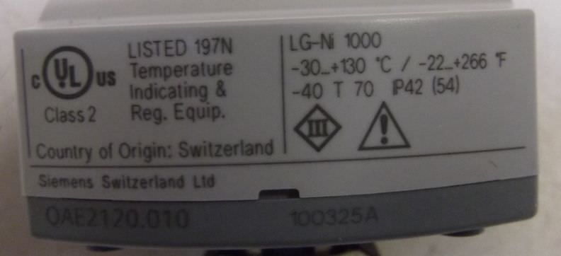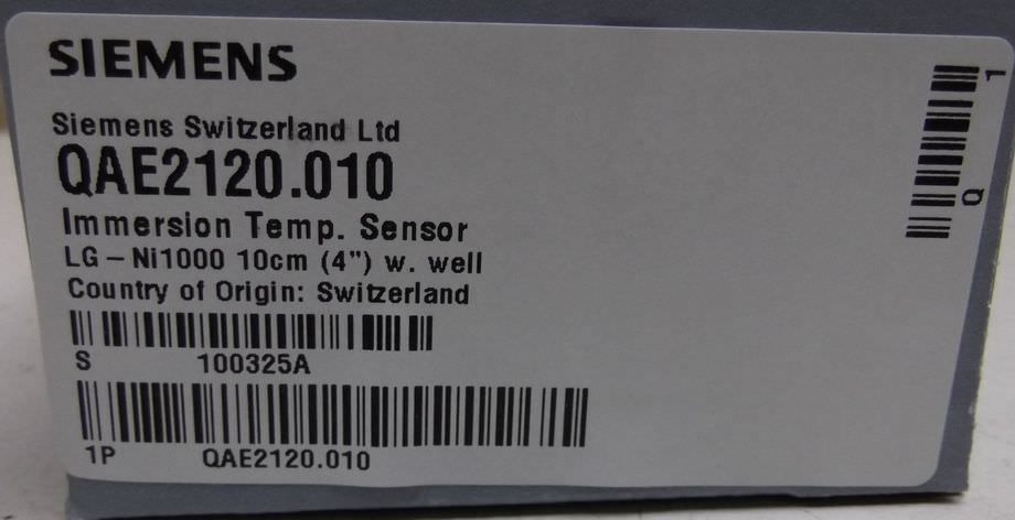 Temperature controller, temperature sensor, setting for temperature -Type: QAE2120.010 -Passive sensors for recording the water temperature in pipes and containers. The sensors are used in ventilation and air conditioning systems for: -Regulation and limitation of the flow temperature -Limitation of the return temperature -Control of the hot water temperature -Immersion temperature sensor with protective tube Technical specifications: -Immersion length 100 mm -Protection class: IP42 -Threaded nipple: PN 10, G 1/2A -Measuring element: Ni 1000 Ohm -Application range: -30...+130 °C -Connection: 2-wire -Weight: 0.3 kg
