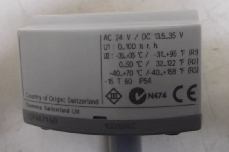 Duct sensor for rel. Humidity/temp. 2 x 0...10 V -Type: QFM2160 for duct installation with mounting flange. -Technical specifications: -Measuring element temperature: active -Measuring element humidity: capacitive humidity sensor -Operating voltage: 24 VAC 13.5...35 VDC -Power consumption: