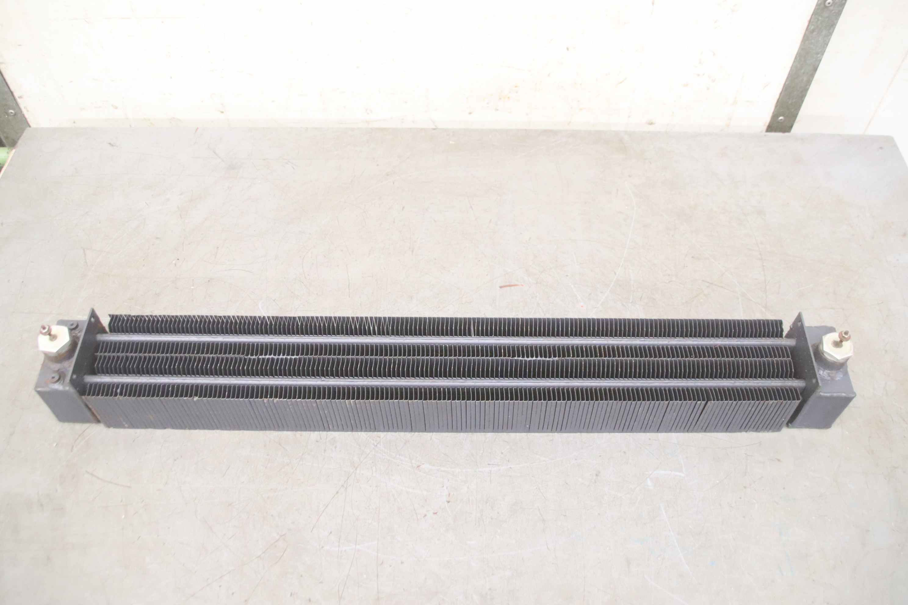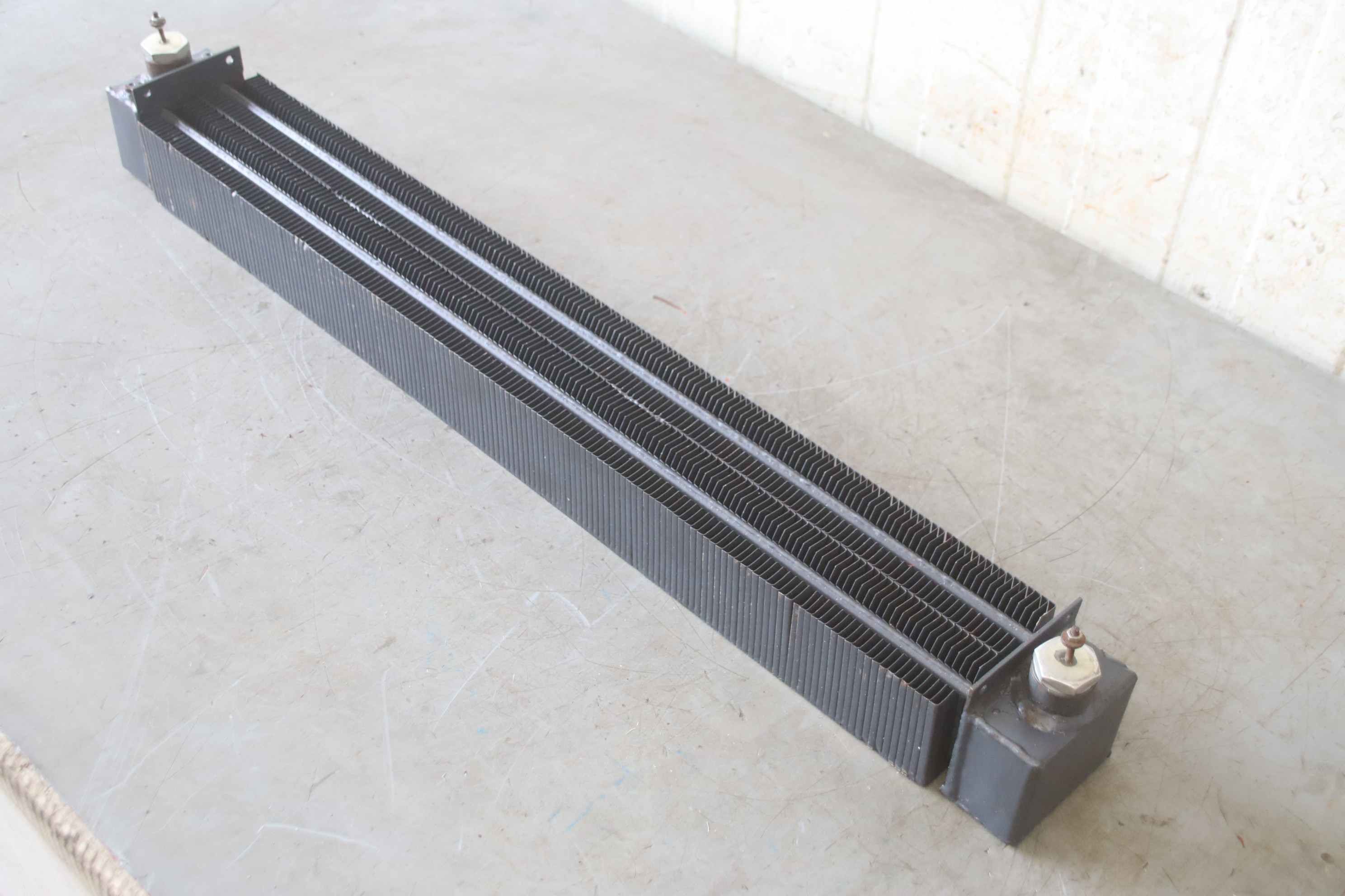 Screw-in heater, electric heater, electric heater, heating coil, electric tubular heater, heating element, air heater, rod heater, heating rod, heating cartridge, high-performance heating cartridge, heating element, heating register, finned tubular heater-Heating element: finned radiator-Type: unfortunately no type designation-Voltage: V-Power: W-Total dimensions: 825/100/H130 mm-Weight: 8.4 kg