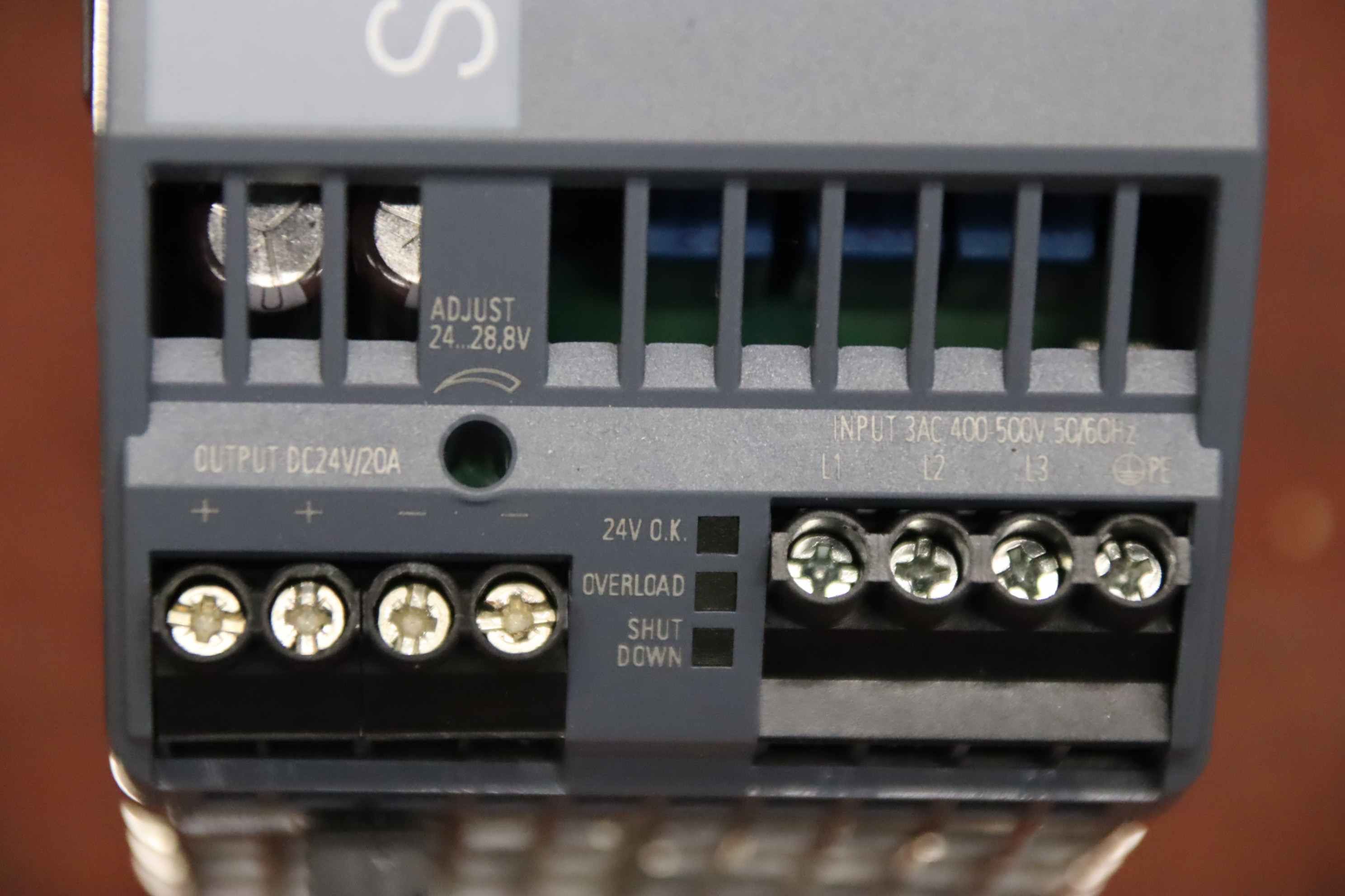 power converter, power supply, power pack, switching power supply, power supply, DIN rail power supply-Manufacturer: Siemens, SITOP PSU8200 Power supply DIN rail power supply-Type: 6EP3436-8SB00-OAYO-Input: 3 AC 400-500V/1.2-1.0.6A 50/60 Hz-Output: DC/24V/20A-Dimensions: 130/70/H125 mm-Weight: 1.1 kg
