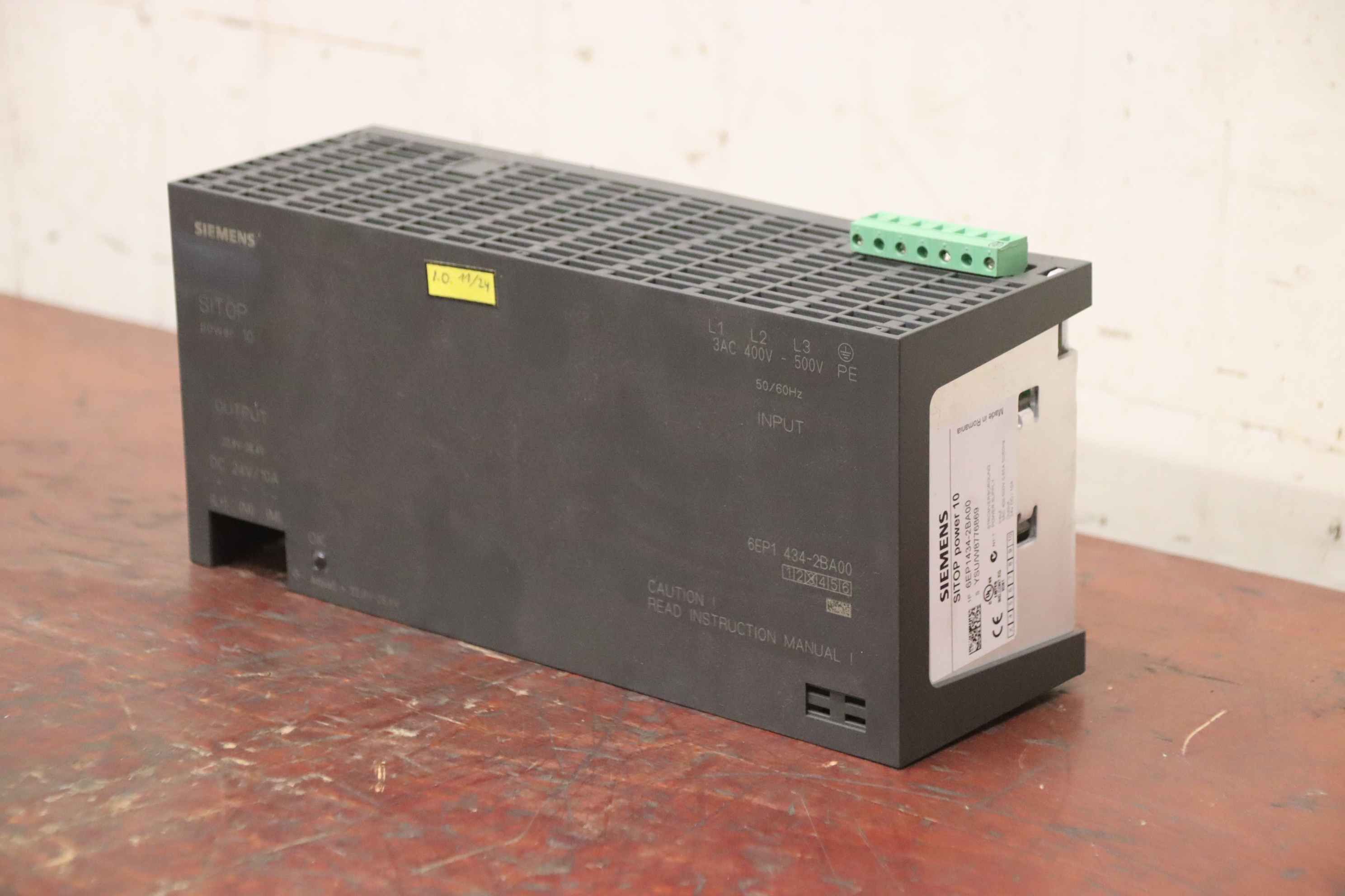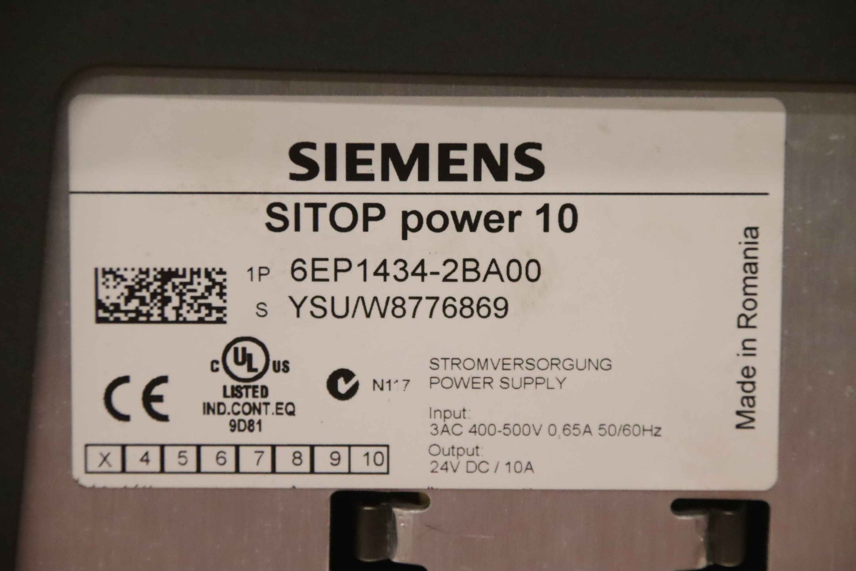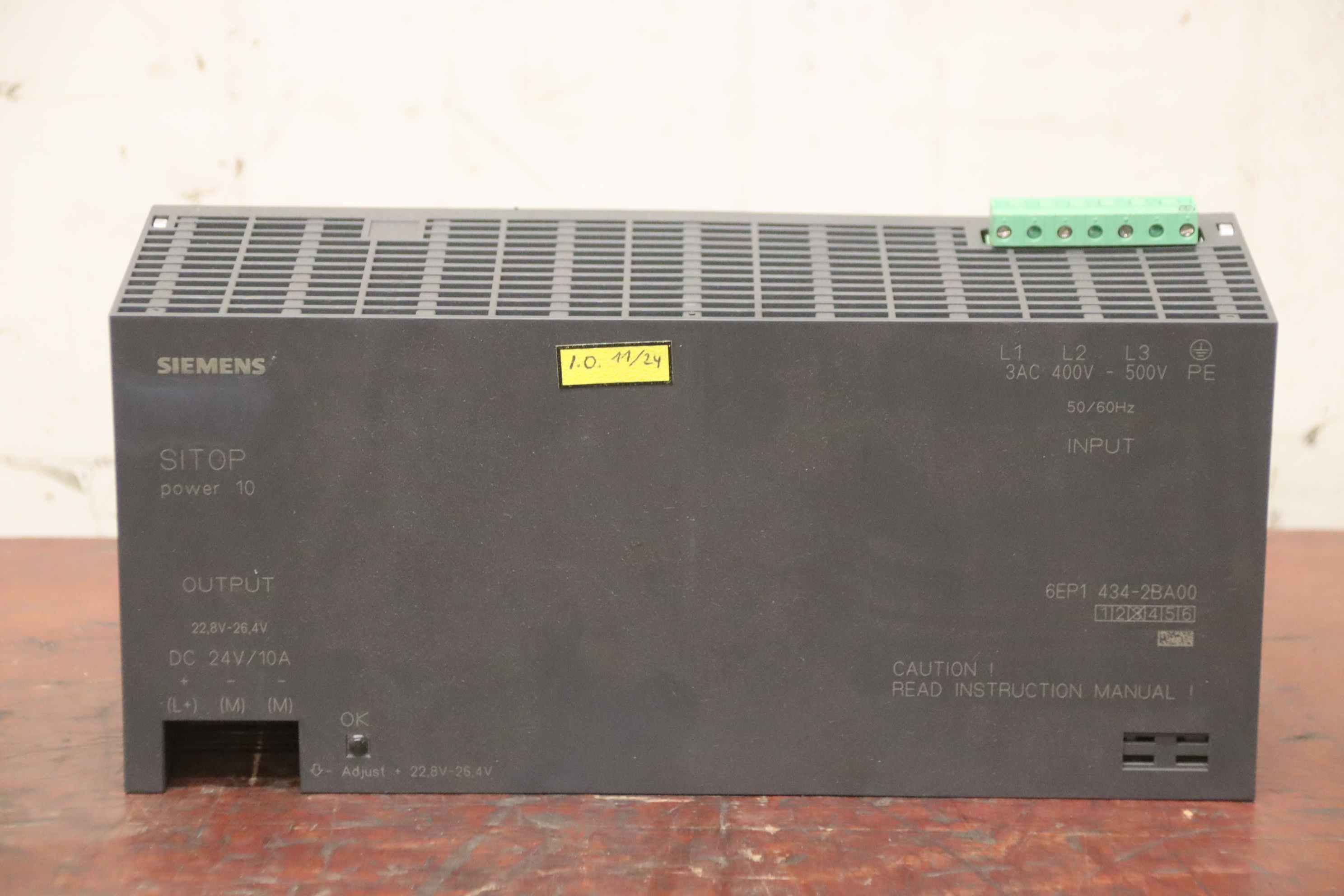 power converter, power supply, power pack, switching power supply -Manufacturer:Siemens, SITOP Power 10 -Type: 6EP1434-2BA00 -Input: 3AC 400- 500V 50/60 Hz -Output: 24 V DC / 10 A -Quantity: 1 piece available -Dimensions: 280/100/H140 mm -Weight: 2.0 kg