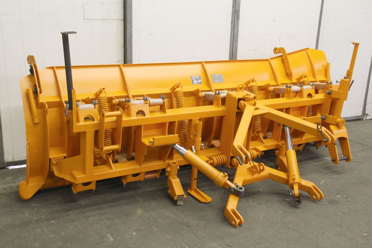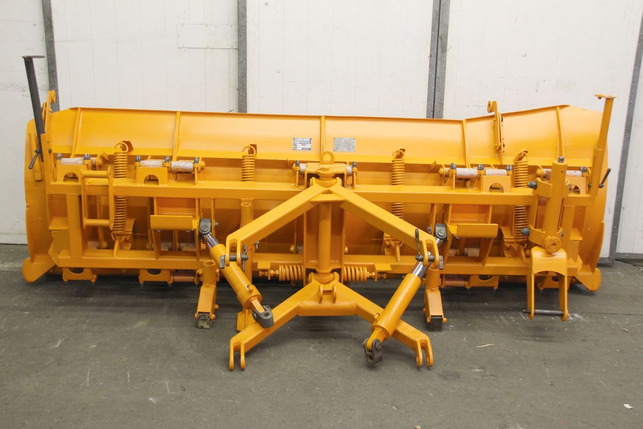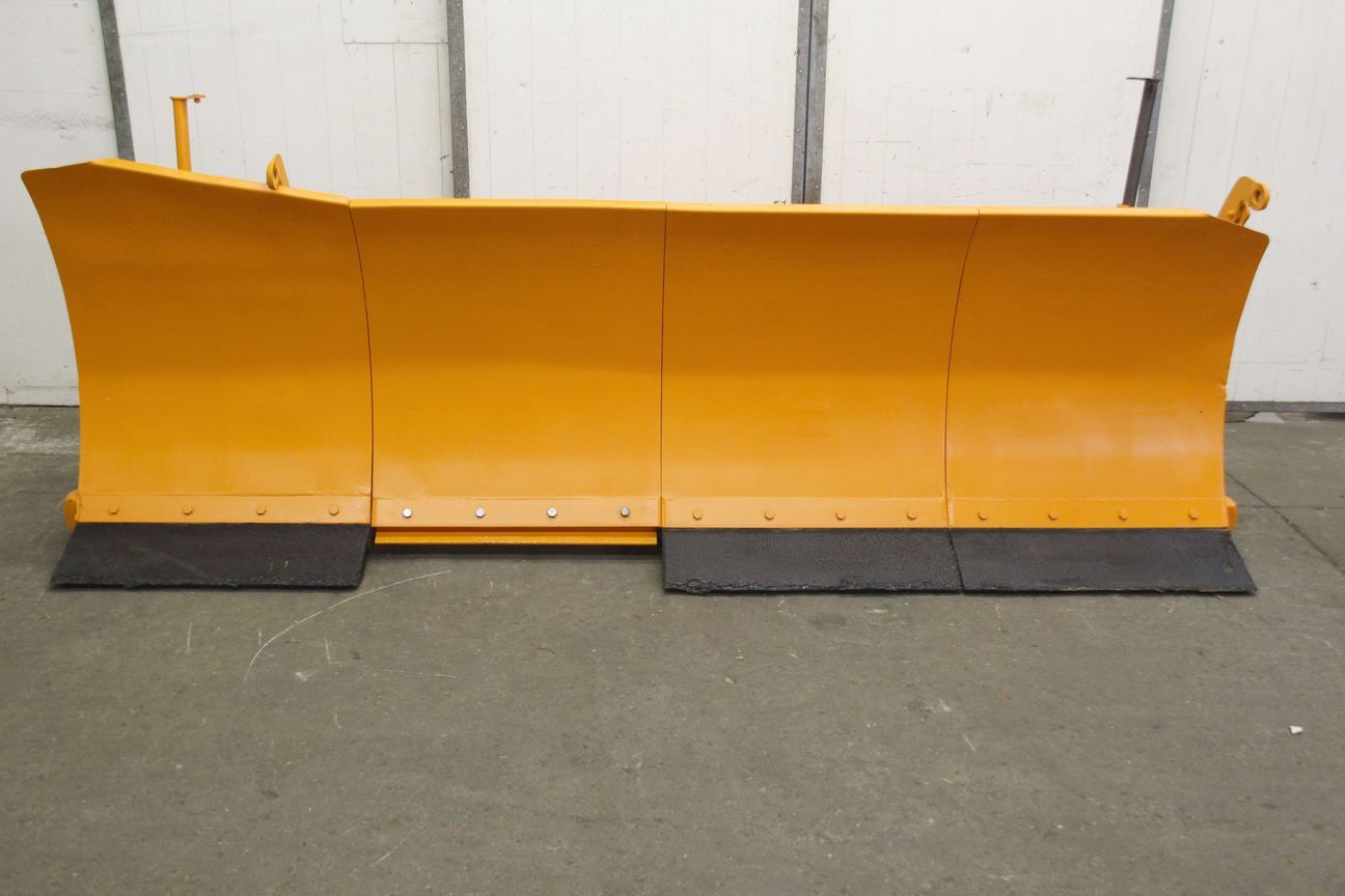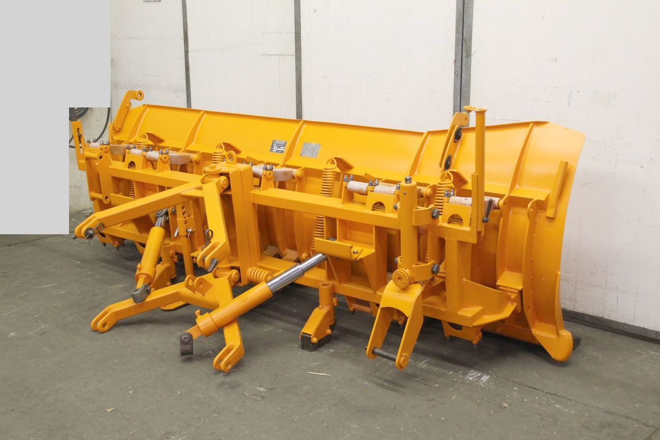 Wedge snowplow, snow plug, dozer blade, clearing blade, snowplow -Plow: hydraulically adjustable -Working width: max. 3200 mm -with: plastic scraper blade, condition as shown in photos (one is missing) -Sign height: approx. 1100 mm -Conversion to three-point linkage for tractors or forklift pockets for forklifts and wheel loaders is possible for an additional charge. -Transport dimensions: 3200/1200/H1200 mm -Weight: 870 kg