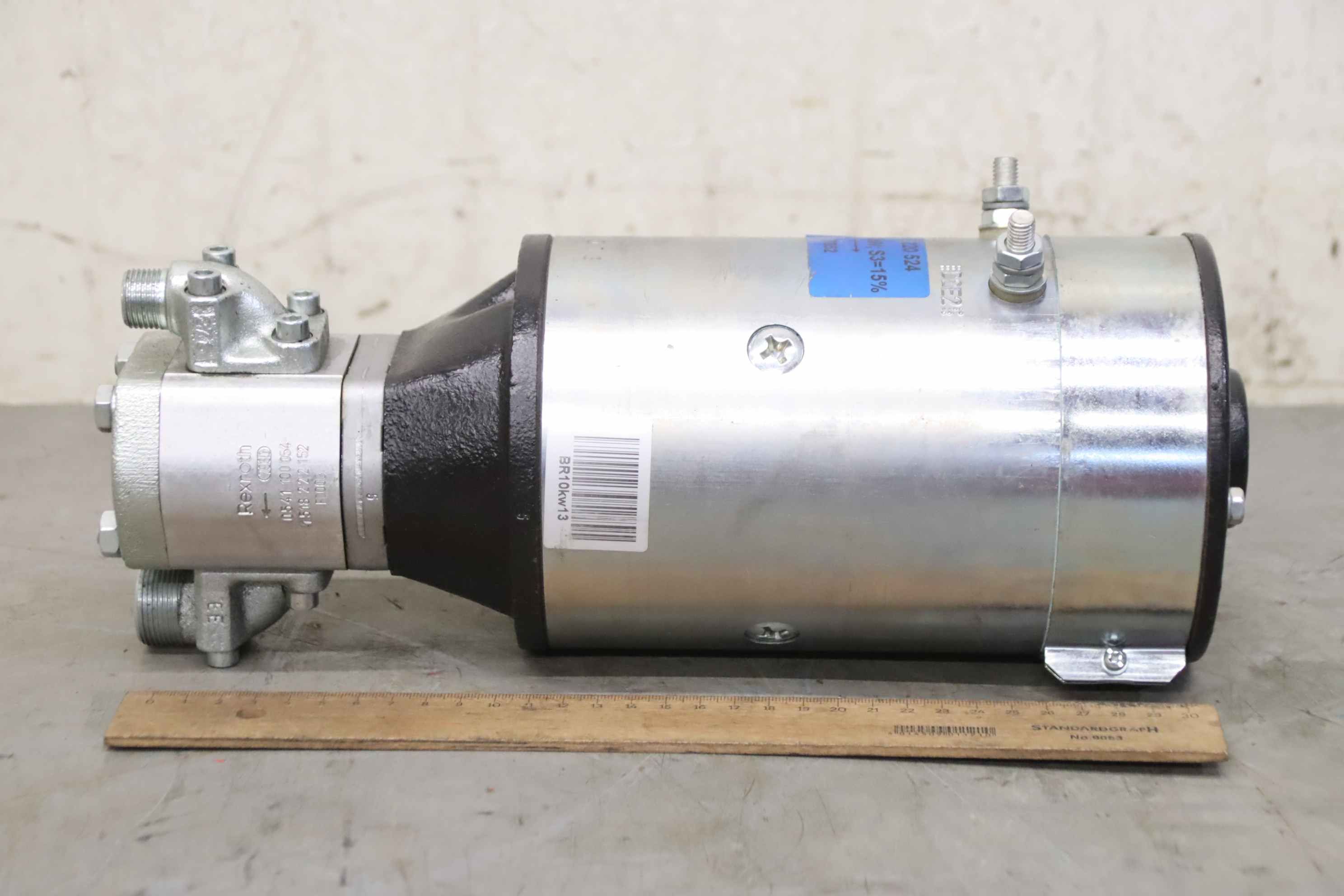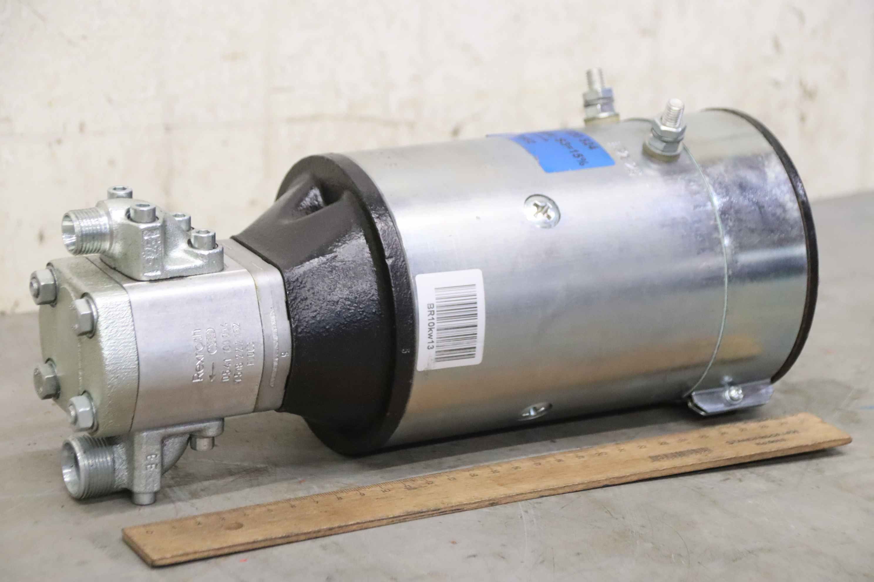Hydraulic pump, oil pump, hydraulic unit, hydraulic pump, hydraulic pump, electric motor, DC motor, traction motor, drive motor, hydraulic gear pump-Manufacturer: Rexroth, hydraulic pump from pedestrian stacker JungheinrichTyp ERC 205-Gear pump: Type 0541 100 054-Drive: 24V 3kW-Number: 2x unit available-Price per piece-Dimensions: 140/130/H330mm / 150/130/H330mm-Weight: 14.3 kg / 13.9 kg