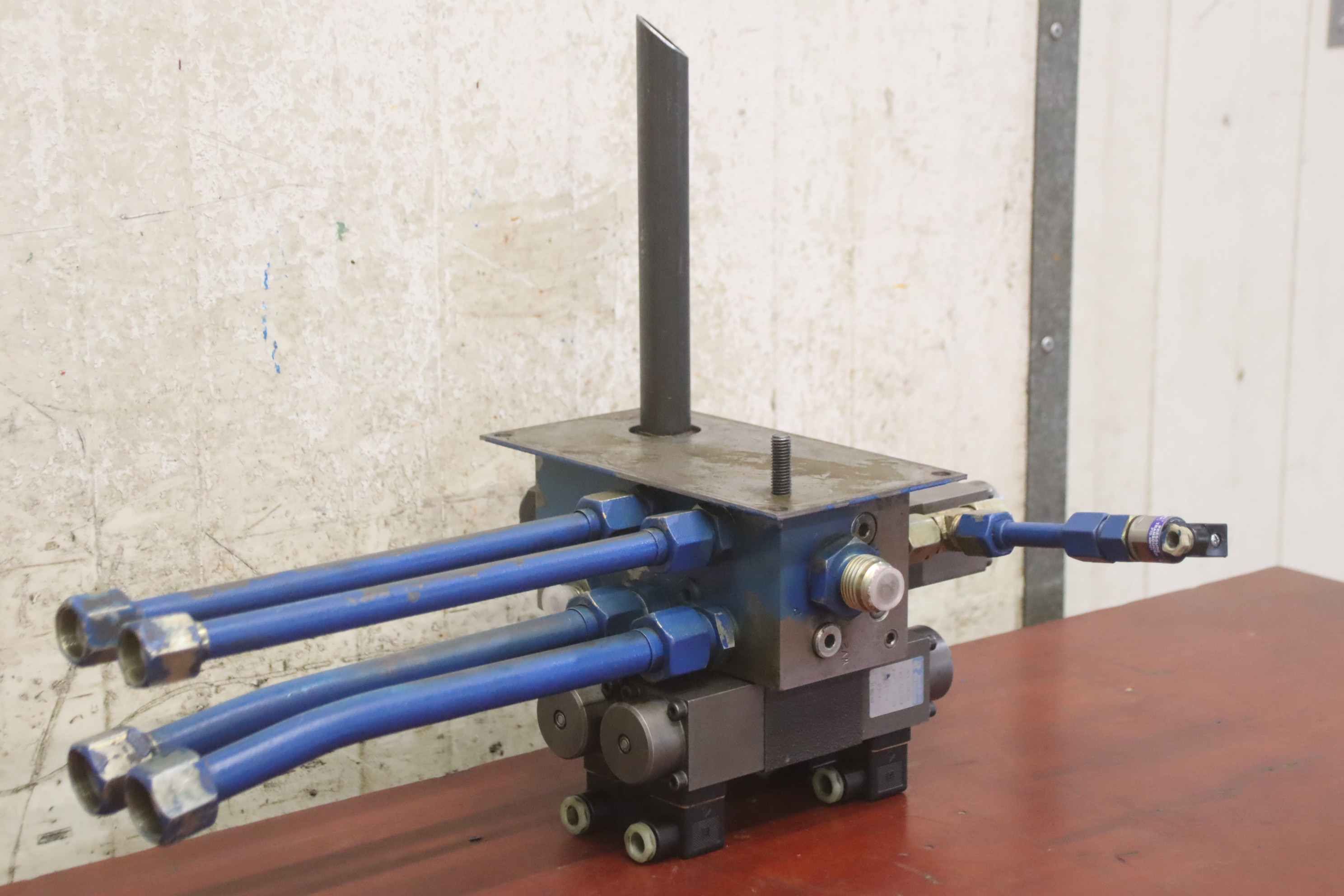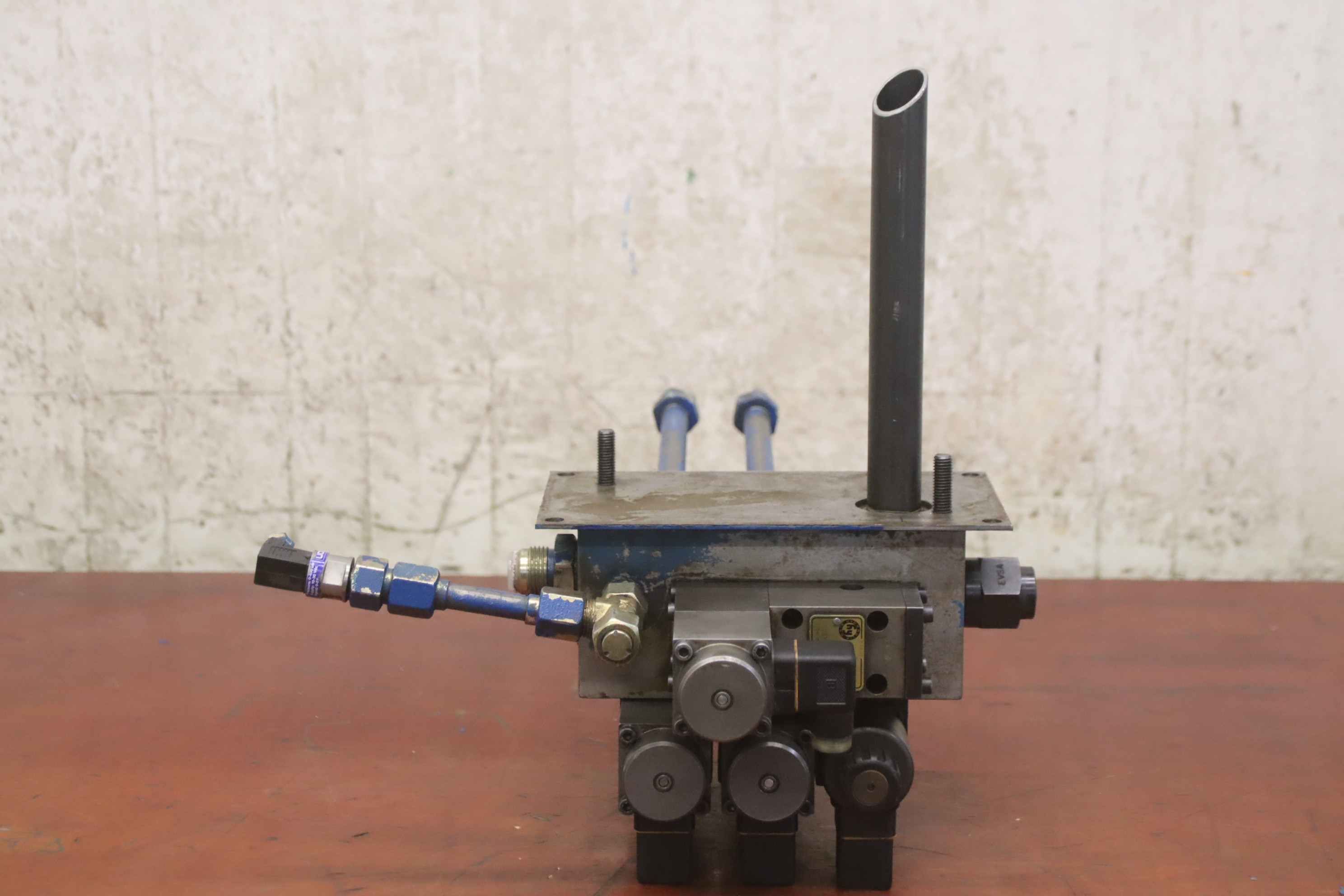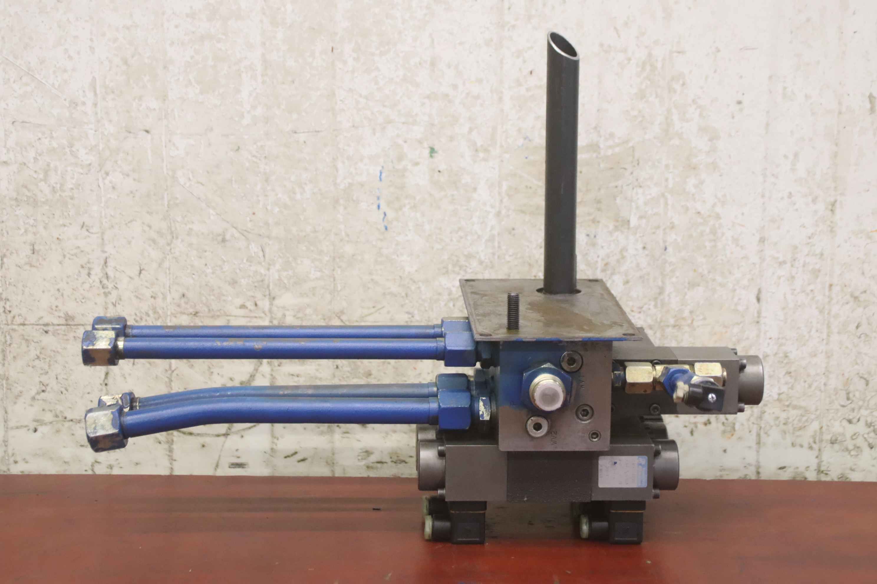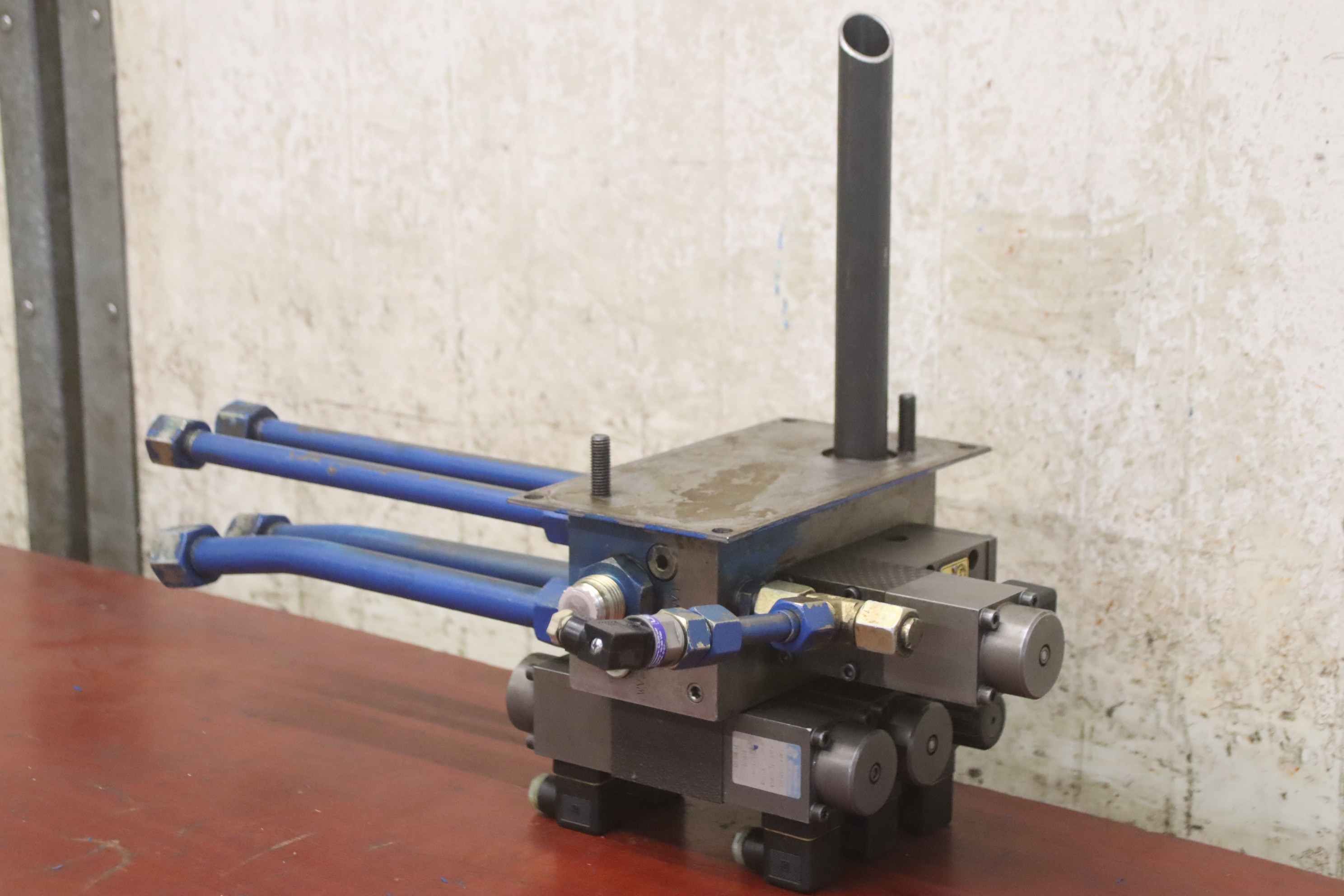 Hydraulic control block for hydraulic pump, hydraulic unit, control block, hydraulic control block, control unit, control valve, servo valve-Manufacturer: HACO, hydraulic control block from press brake type PPES 30135-Control valve: hy hydraulic ring WLL43G06P012KB4 / WEF42A06C1-Lifting magnet: Magnet-Schulz G RF Y 045 F20 E11-Individual components: Type/number see photos-Dimensions: 540/380/H400 mm-Total weight: 23 kg