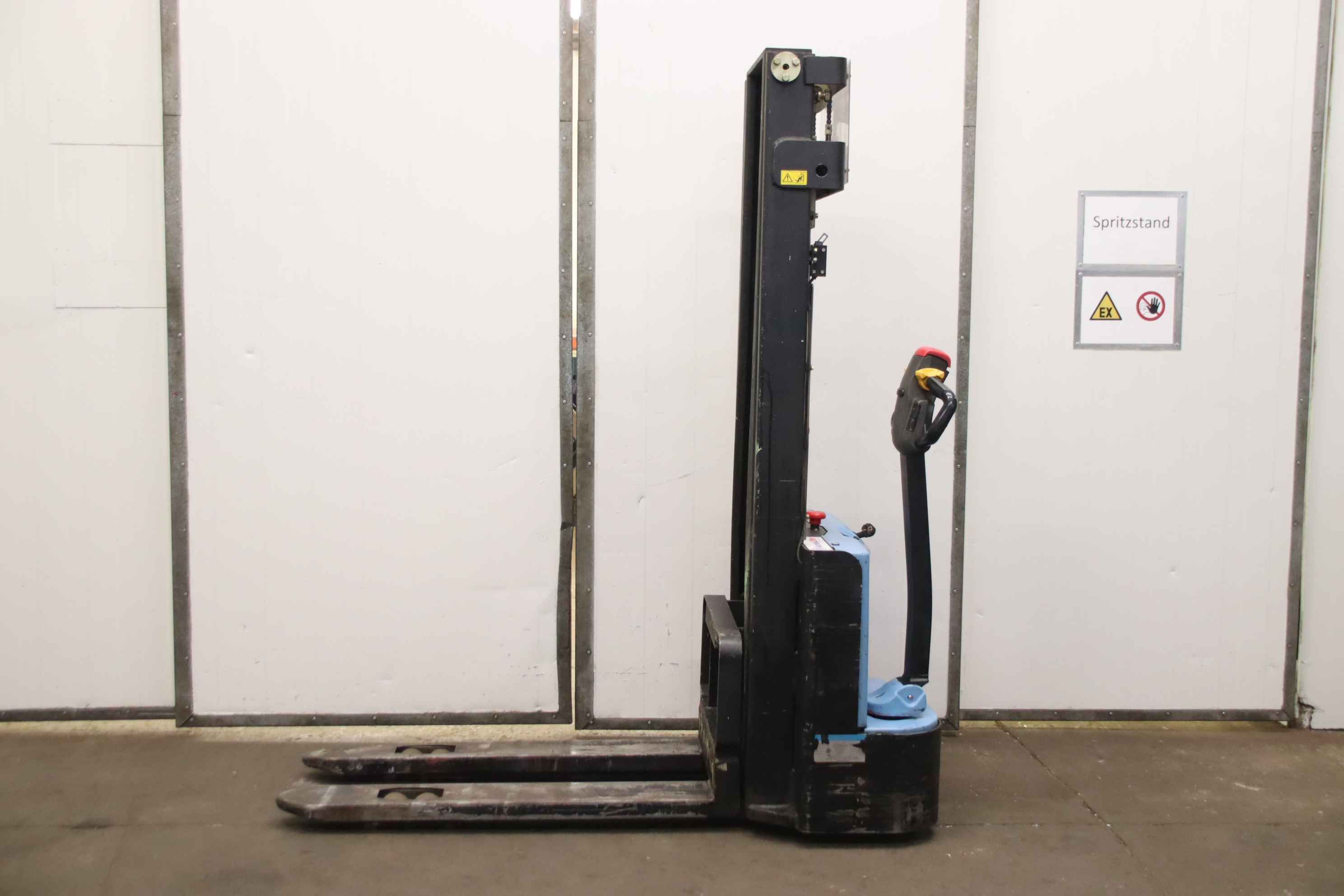 Height-adjustable pallet truck, pallet truck, stacker, pedestrian pallet truck, forklift truck, high-lift truck, pedestrian stacker-Manufacturer: Hanselifter, high lift truck type EDH1030MG-E 06-Bemerjung: without battery-Load capacity: max. 1000 kg-Lifting height: 3000 mm-Height: 2010 mm-Width: 800 mm-Clearance height: 2050 mm-Tines: length 1145 mm / 160 x 55 mm-Dimensions: 1740/800/H2010 mm-Own weight: 544 kg