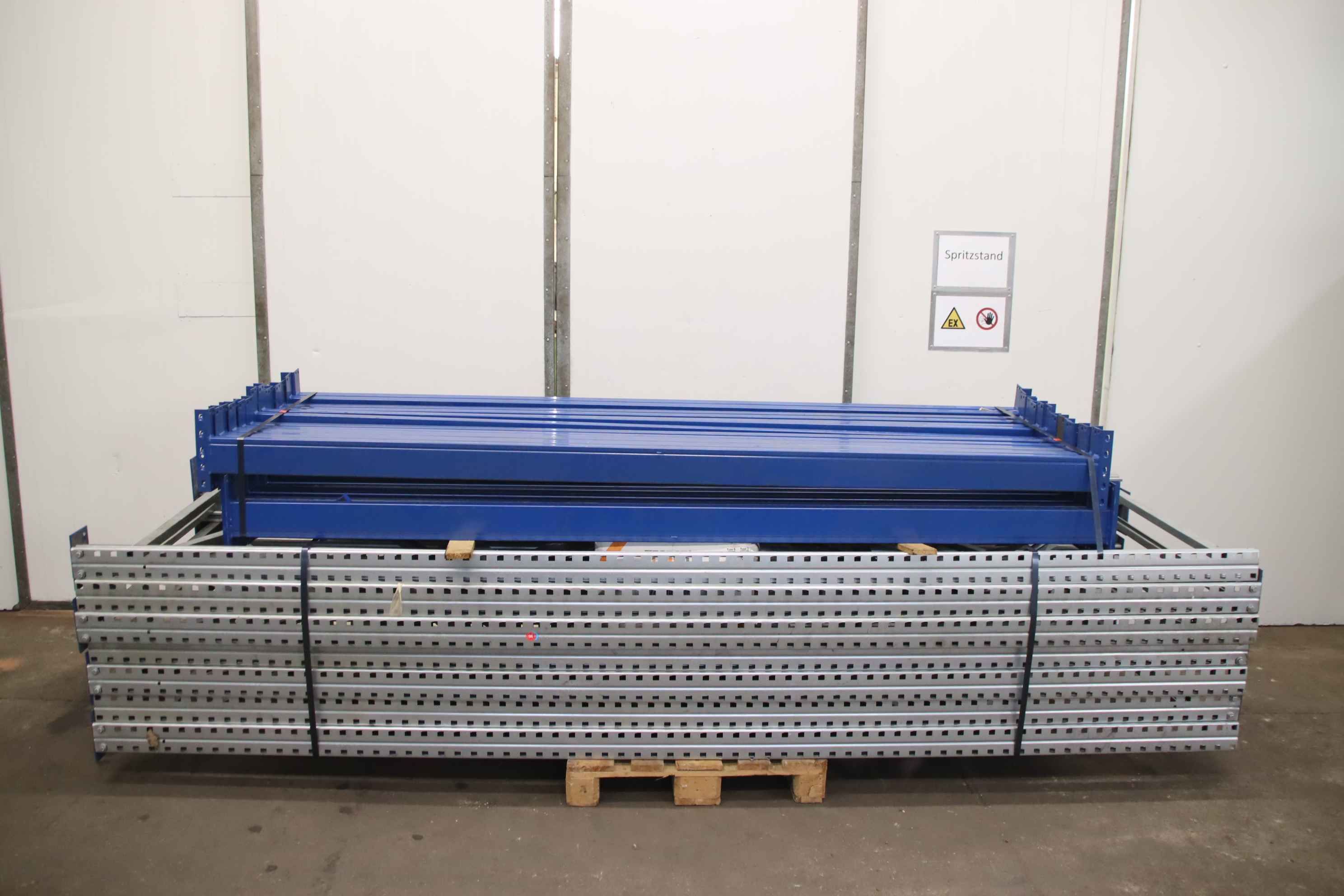 pallet rack, heavy-duty rack, high-bay rack, boltless rack, storage rack stand-Manufacturer: SSI Schäfer, pallet racking boltless racking 6 bays / rack length 17100 mm-Field width: 2700 mm-Shelf height: approx. 3500 mm-Stands: 7 pieces 3600/1105180 mm-Cross braces: 30 pieces 2770/65/250 mm-Shipping/Price: complete-Transport dimensions: 3620/1150/H1050 mm-Total weight: 726 kg