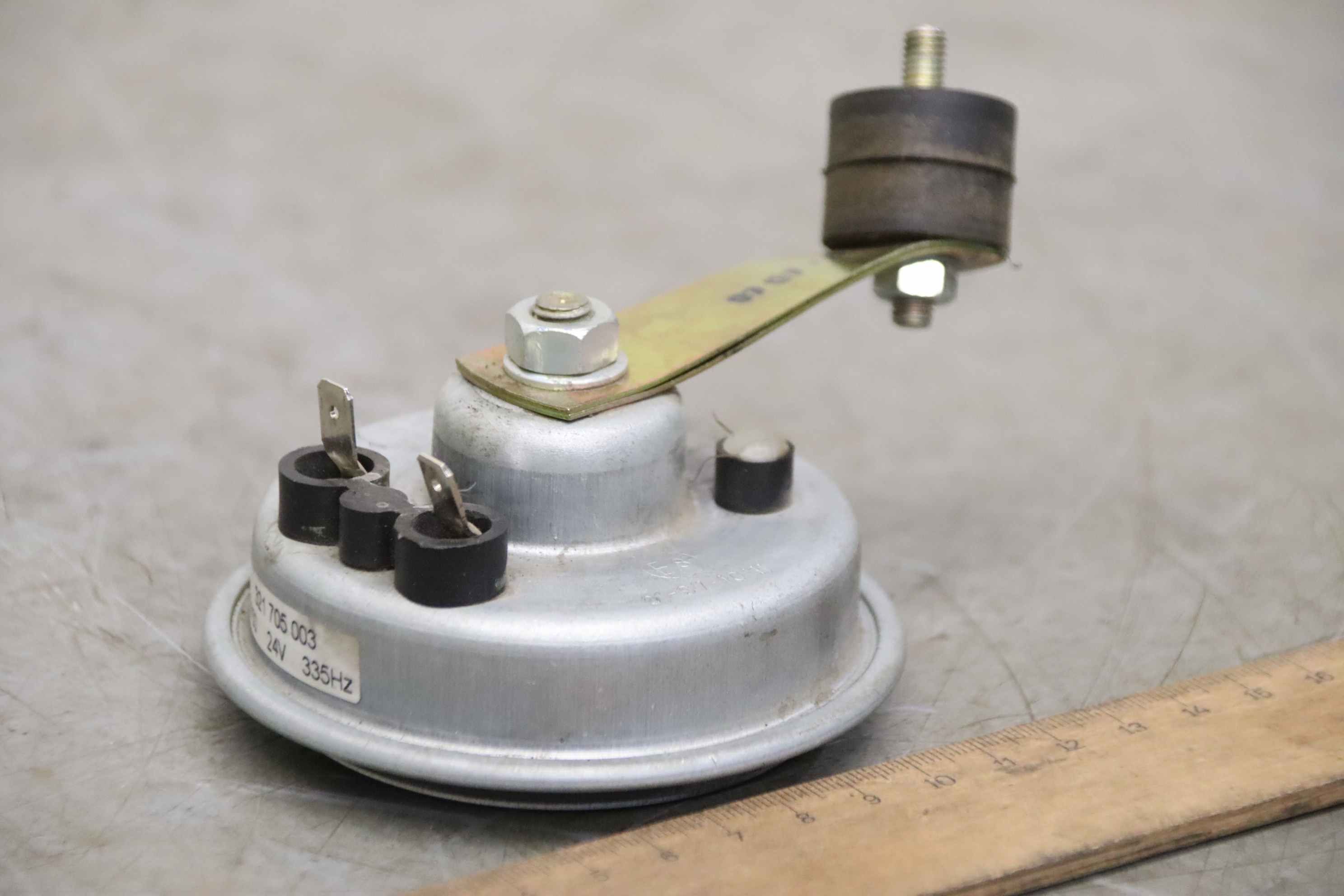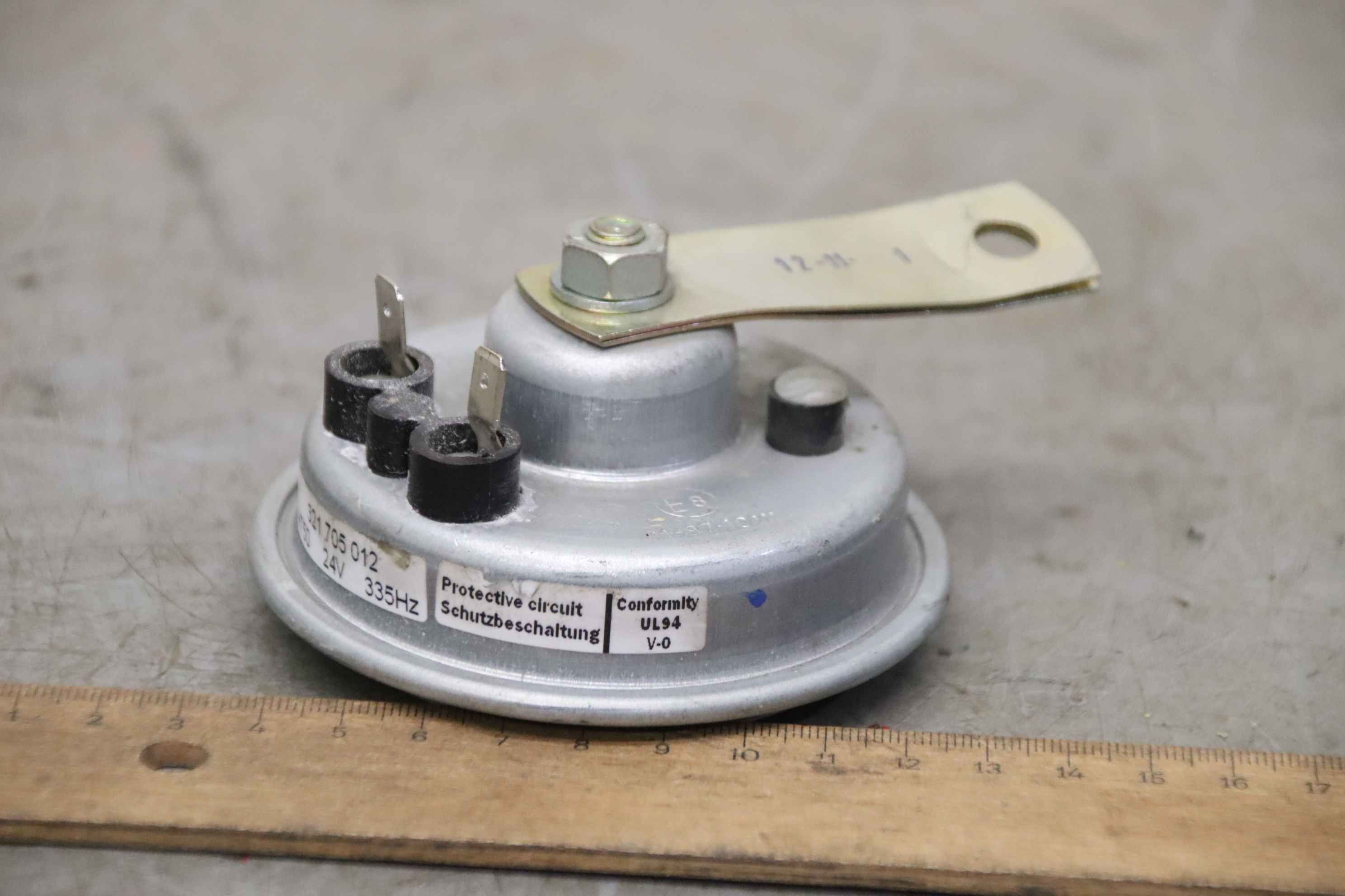 Horn, siren, bugle, bugle-Manufacturer: Brano, horn siren from pedestrian stacker JungheinrichTyp ERC 205-Type: 321 705 012 H750-Voltage: 24V/335Hz-Dimensions: 115/90/H60 mm-Weight: 0.3 kg