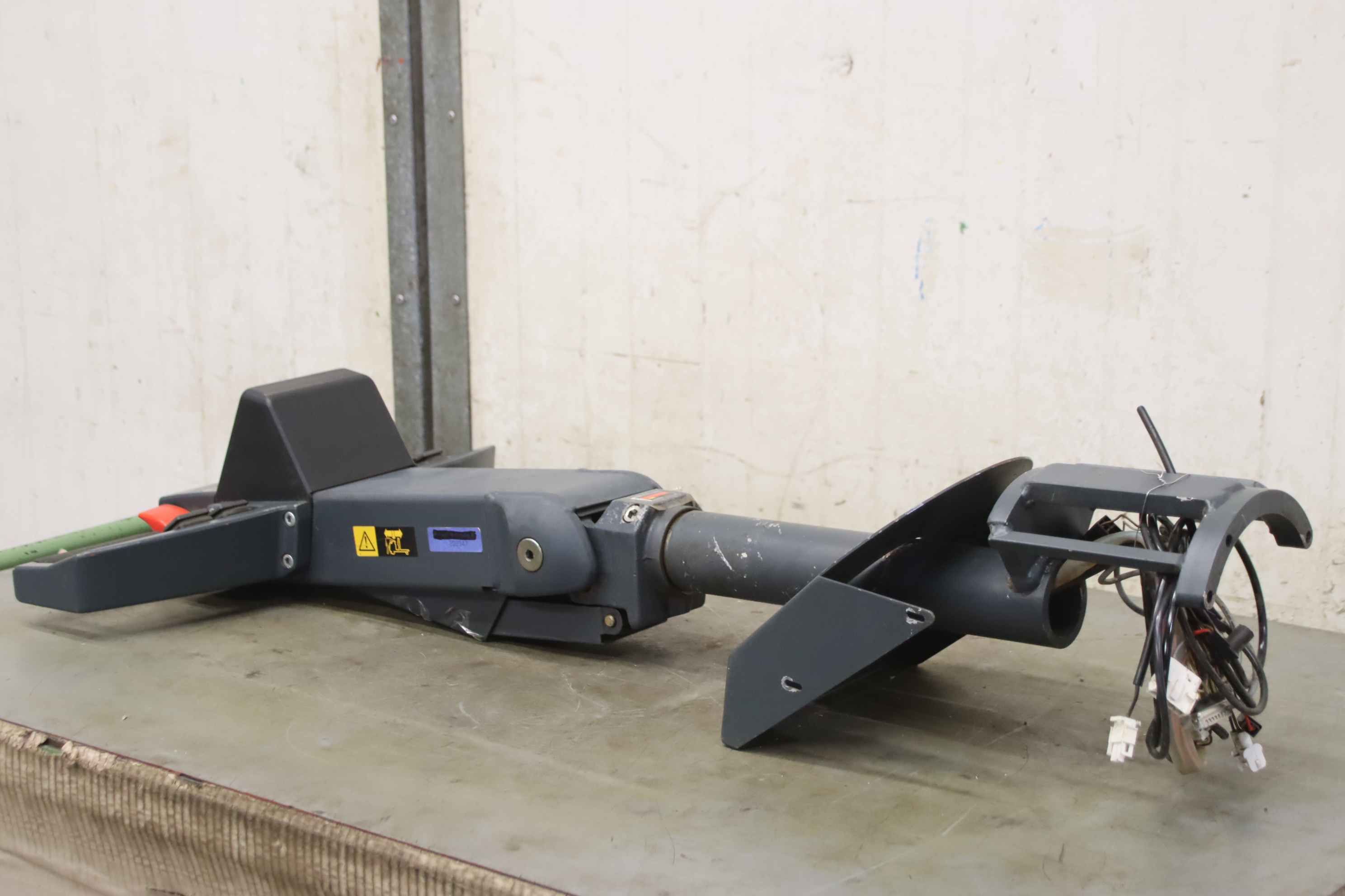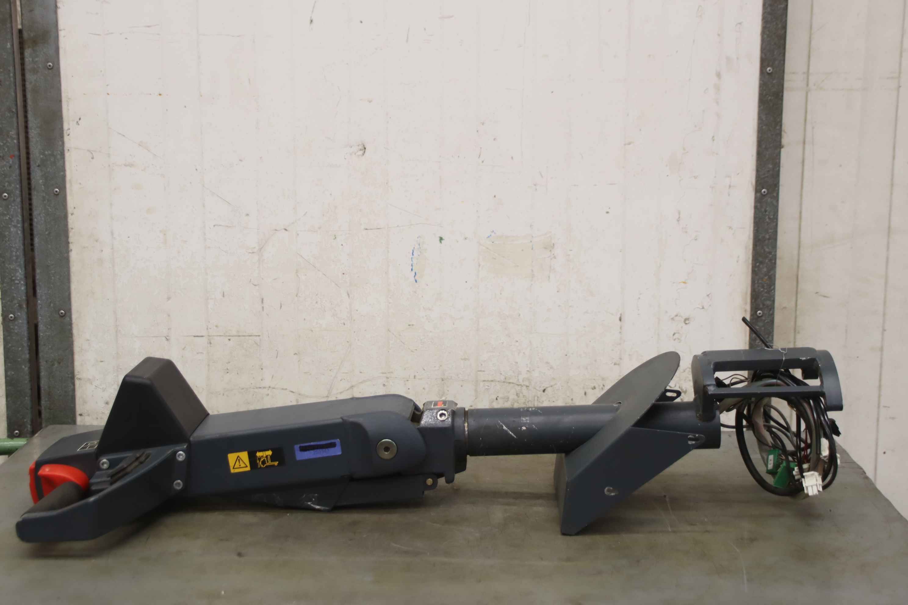 Tiller head, pedestrian stacker, pedestrian pallet truck, tiller, steering-Manufacturer: Logitrans, drawbar completely from pedestrian stacker SGL 2000V-Number: 1x drawbar available-Price per piece-Dimensions: 930/345/H110 mm-Weight: 12 kg/pc.
