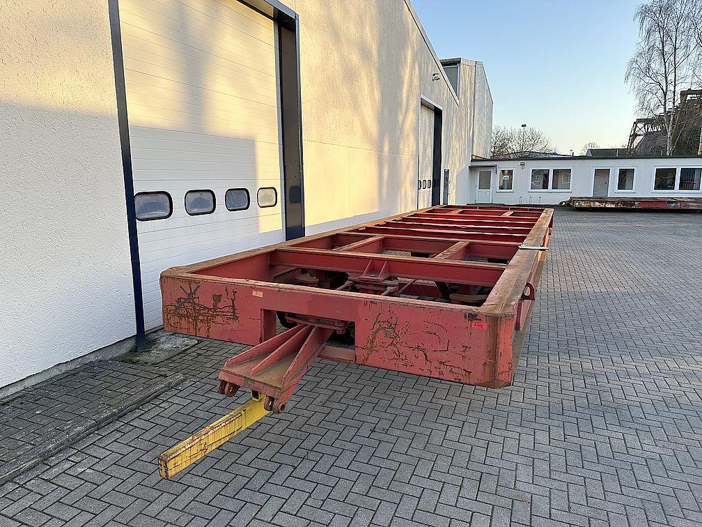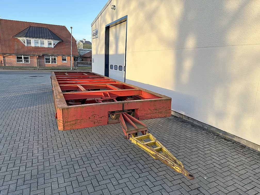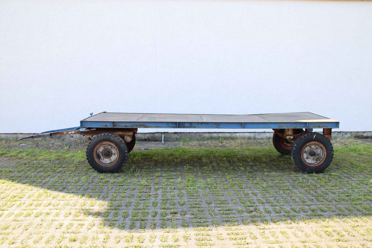 Platform trolley, transport trolley, heavy-duty trolley, industrial trailer, container dolly, heavy-duty trailer -Heavy-duty transport wagon: Industrial trailer with single-axle turntable steering -Platform: 10000/2500/H1030 mm -Load capacity: 16 t -Tires: 250-15 industrial pneumatic tires -Number: 2 heavy-duty transport trolleys available -Price: per piece -Transport dimensions: 11600/2500/H1030 mm -Weight: 3080 kg