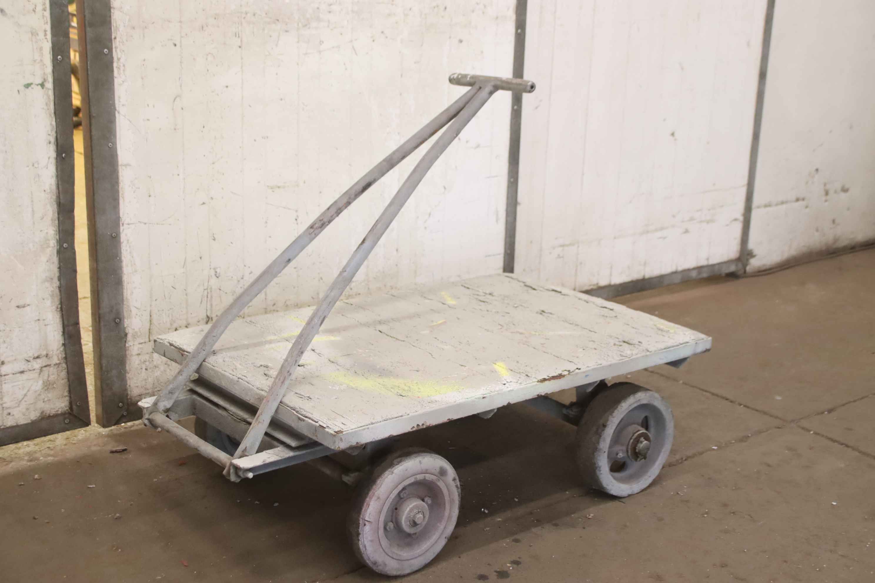 Platform trolleys, transport trolleys, heavy-duty trolleys, table trolleys, assembly trolleys, industrial trailers, container dollies, heavy-duty trailers, hand trucks -Handover: in current condition as viewed -Note: Note condition of wheels/platform -Heavy-duty transport vehicle: hand platform truck with 1-axle turntable steering, suspended -Platform: 1000/660/H340 mm -Load capacity: 1.5 t -Tires: front Ø 240 x 60 mm / rear Ø 240 x 75 mm solid rubber -Total dimensions: 2020/660/H340 mm -Weight: 87 kg